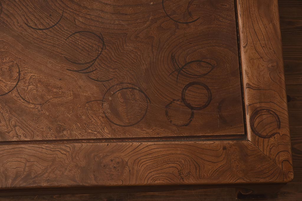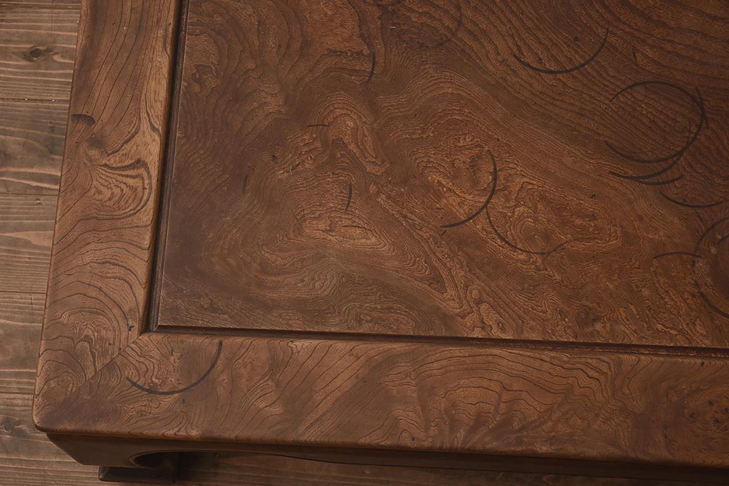 アンティーク家具 総ケヤキ材 天板一枚板 贅沢なつくりの座卓(ローテーブル)(R-042286)です。