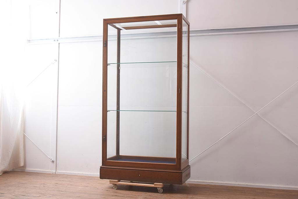 店舗什器 > ヴィンテージ家具 イギリスビンテージ マホガニー材 シンプルな縦型ガラスケース(ショーケース、陳列棚、飾り棚)(R-042158)