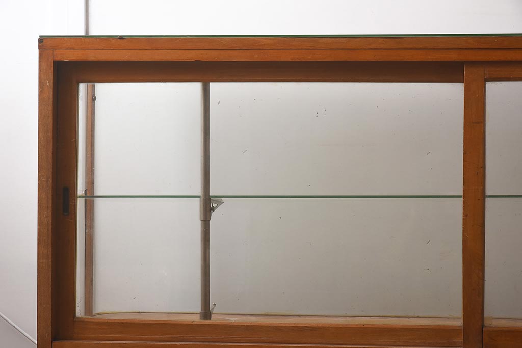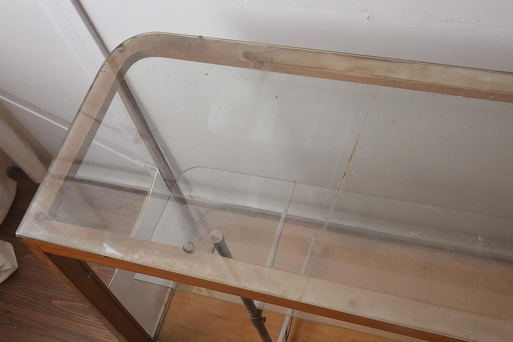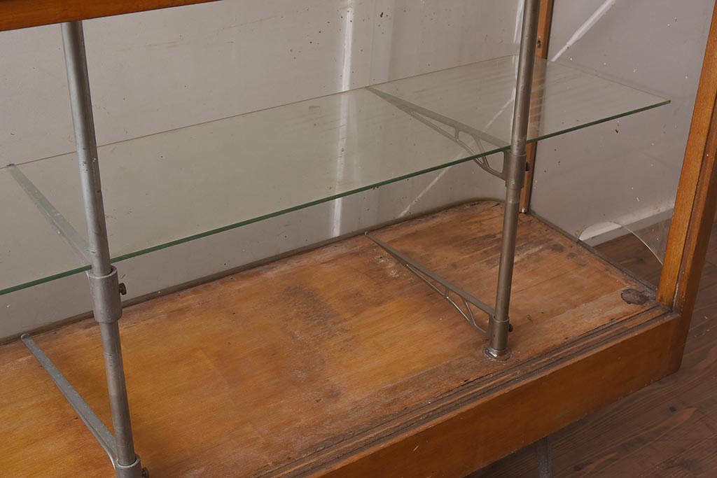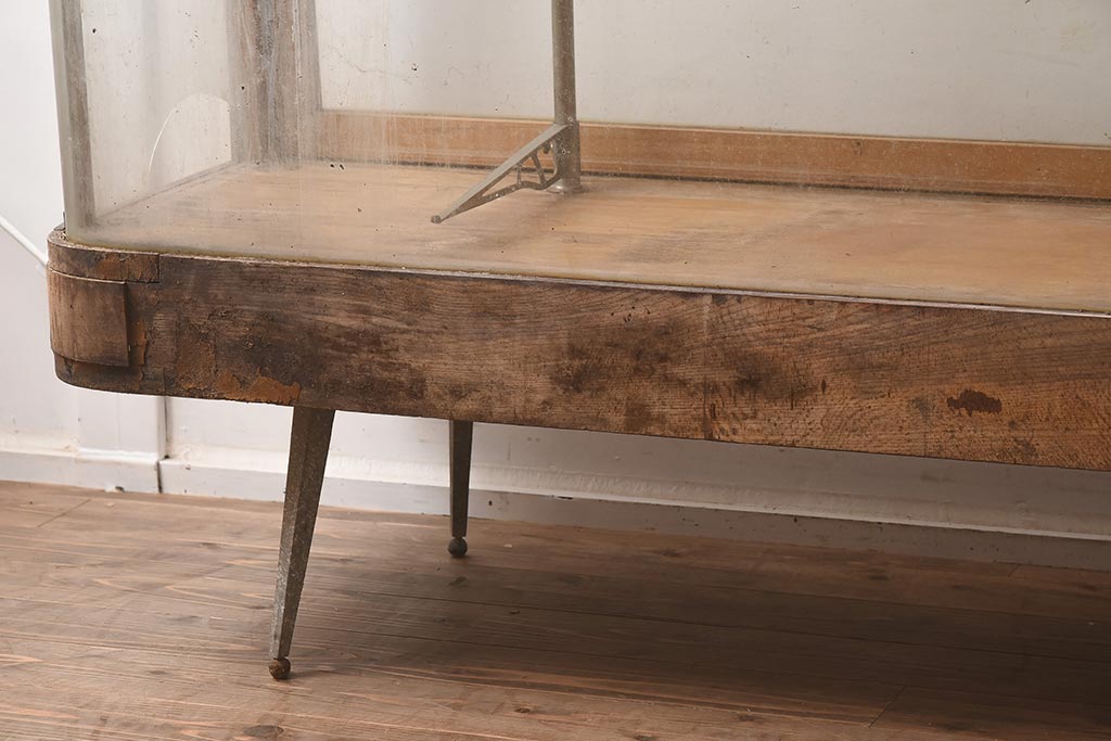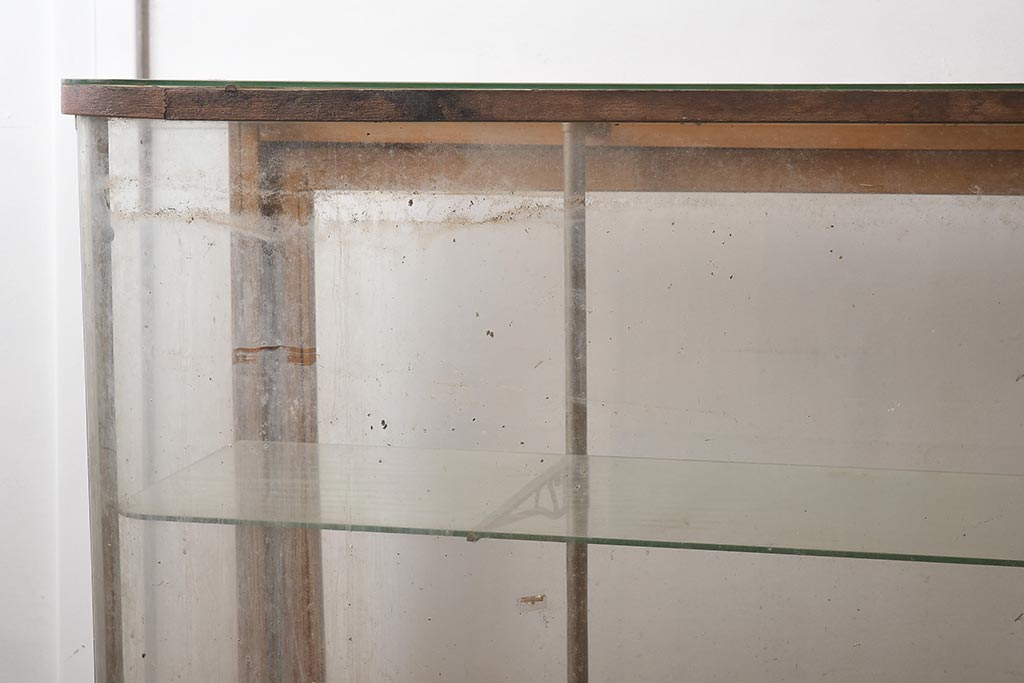 店舗什器 > レトロ家具 脚付き ディスプレイが見やすいRガラスの木製ガラスケース(ショーケース、陳列棚、飾り棚)(R-042267)