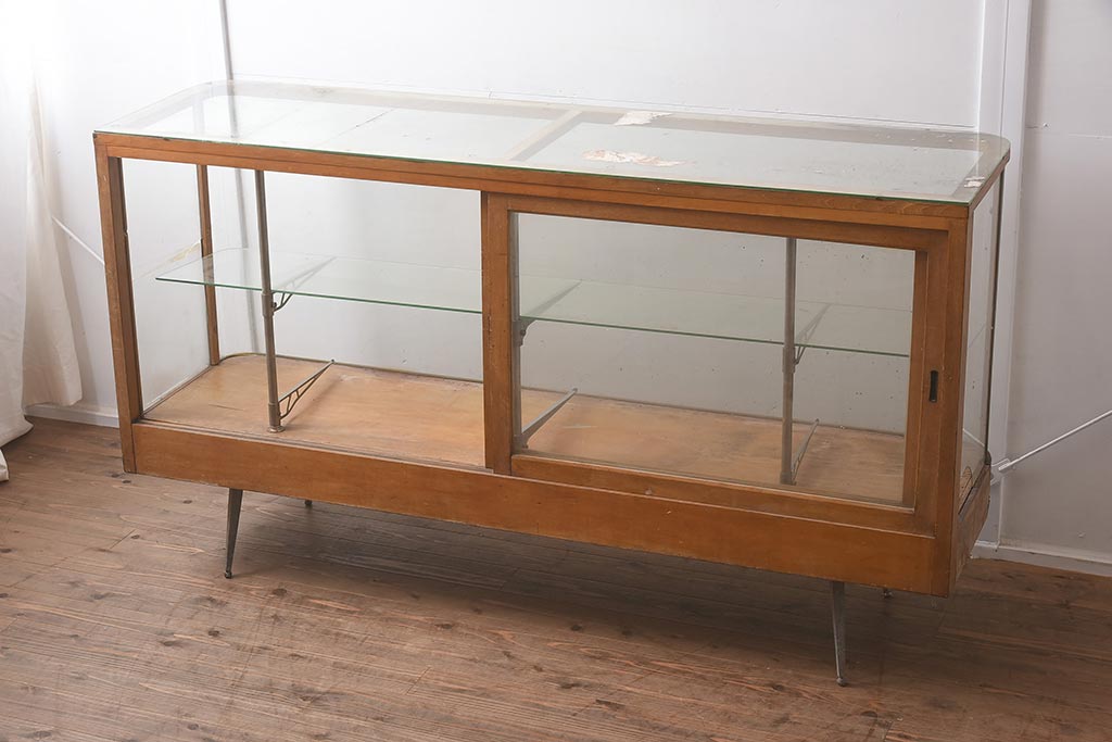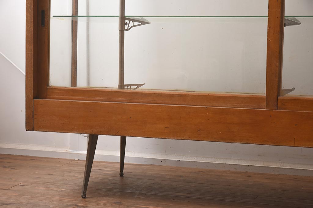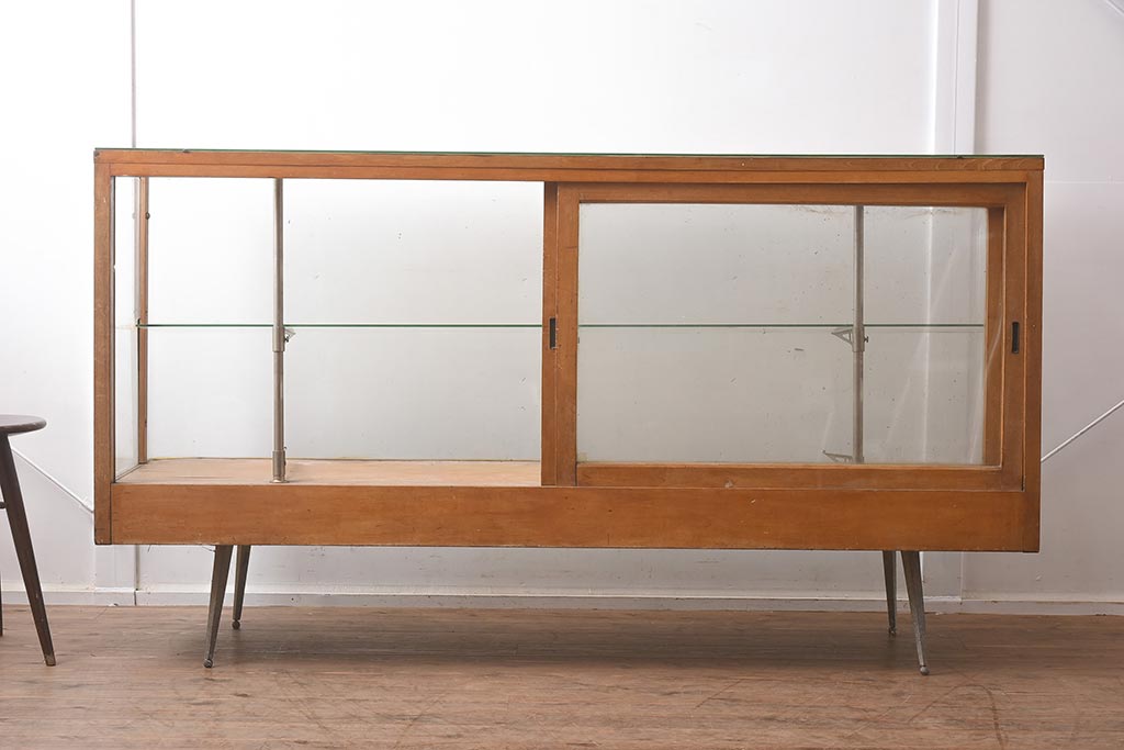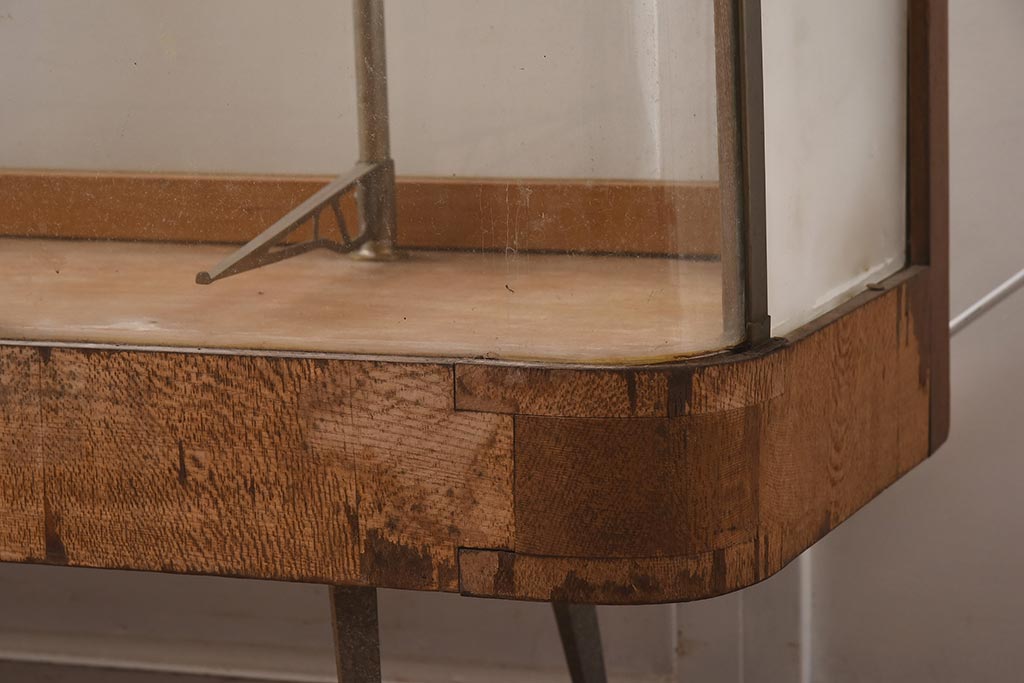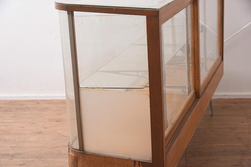 ガラスケース・ショーケース > レトロ家具 脚付き ディスプレイが見やすいRガラスの木製ガラスケース(ショーケース、陳列棚、飾り棚)(R-042267)