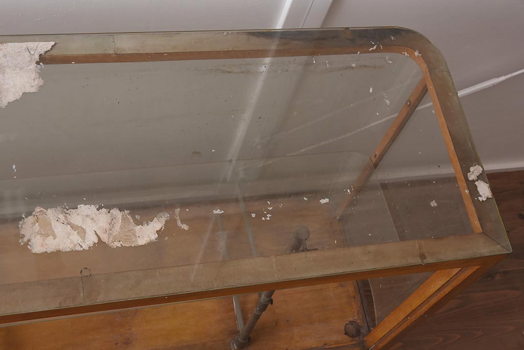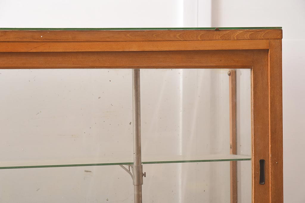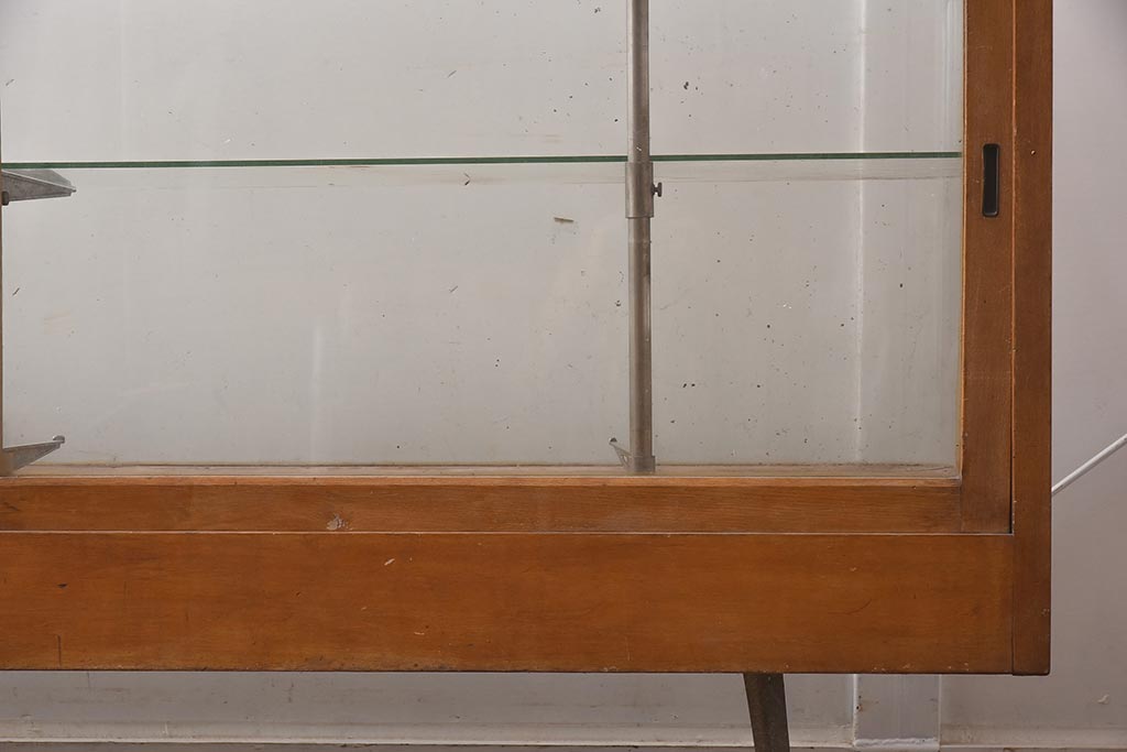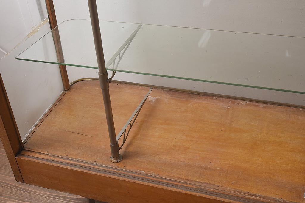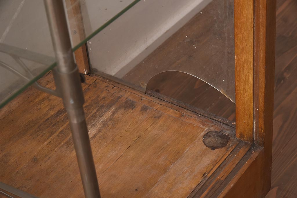 ガラスケース・ショーケース > レトロ家具 脚付き ディスプレイが見やすいRガラスの木製ガラスケース(ショーケース、陳列棚、飾り棚)(R-042267)