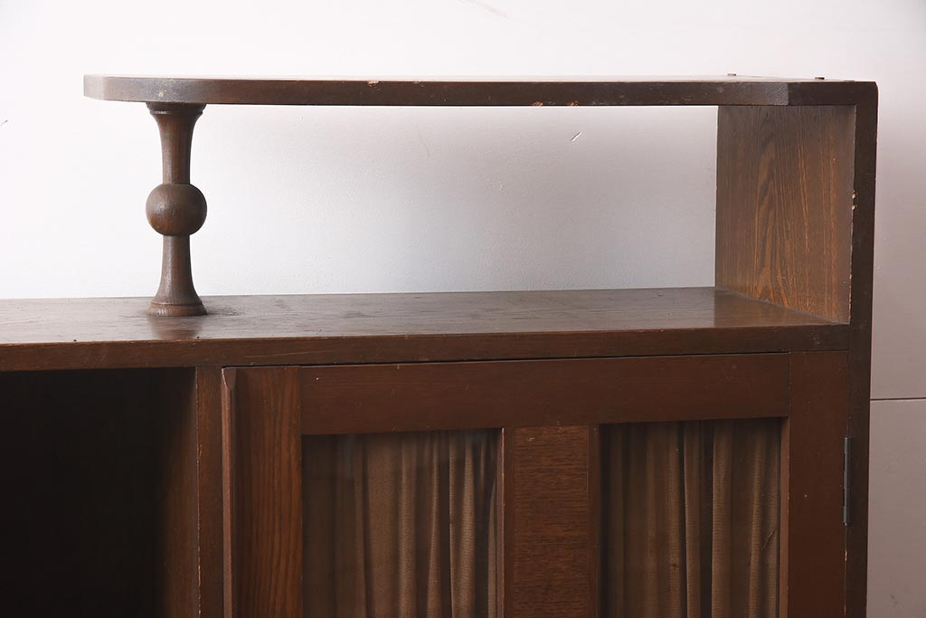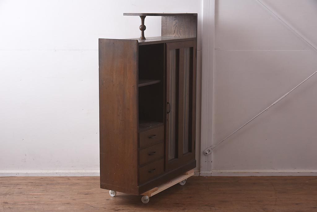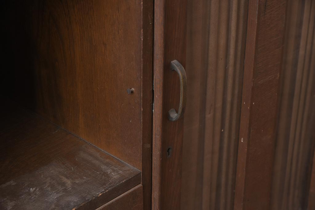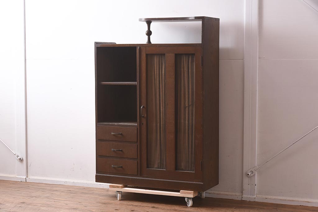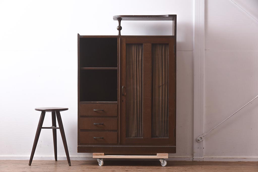 レトロ家具 変わり型 ディスプレイも楽しめる戸棚(収納棚、本箱、キャビネット)(R-042281)
