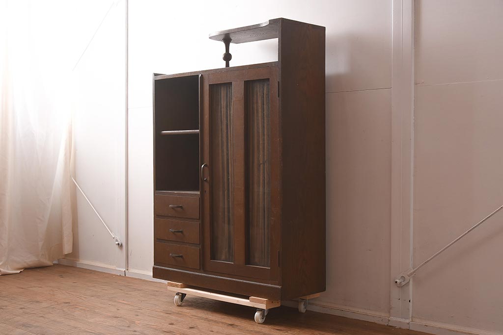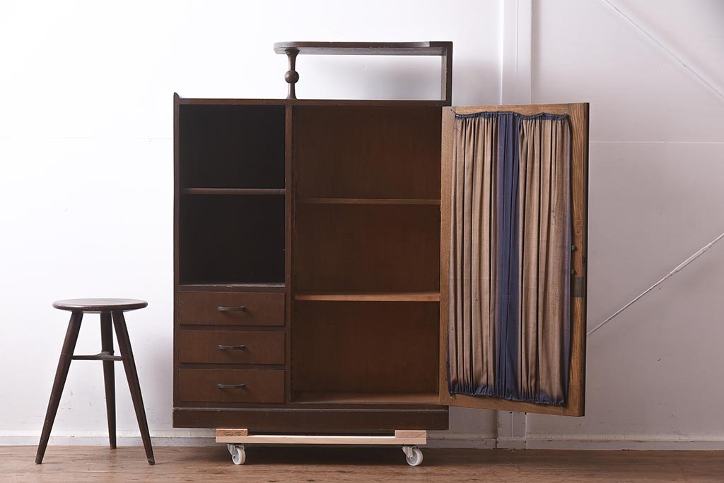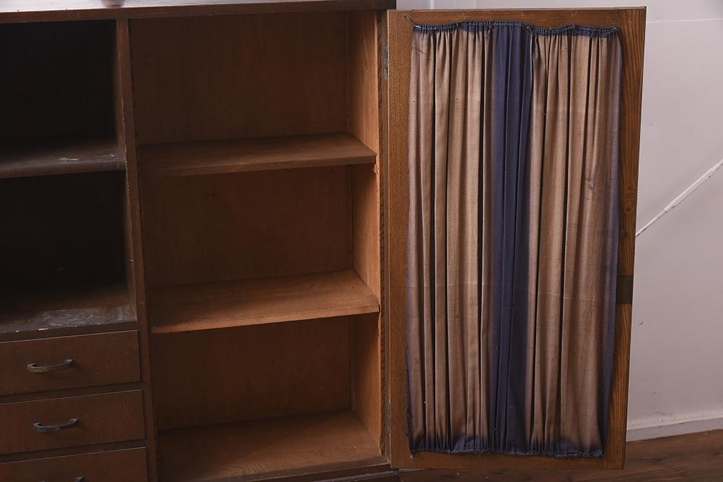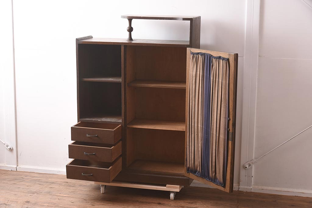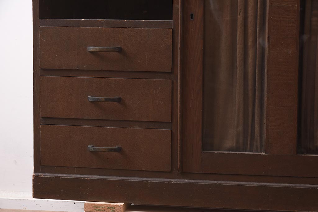 レトロ家具 変わり型 ディスプレイも楽しめる戸棚(収納棚、本箱、キャビネット)(R-042281)