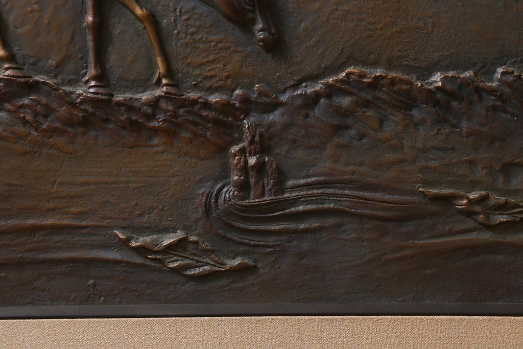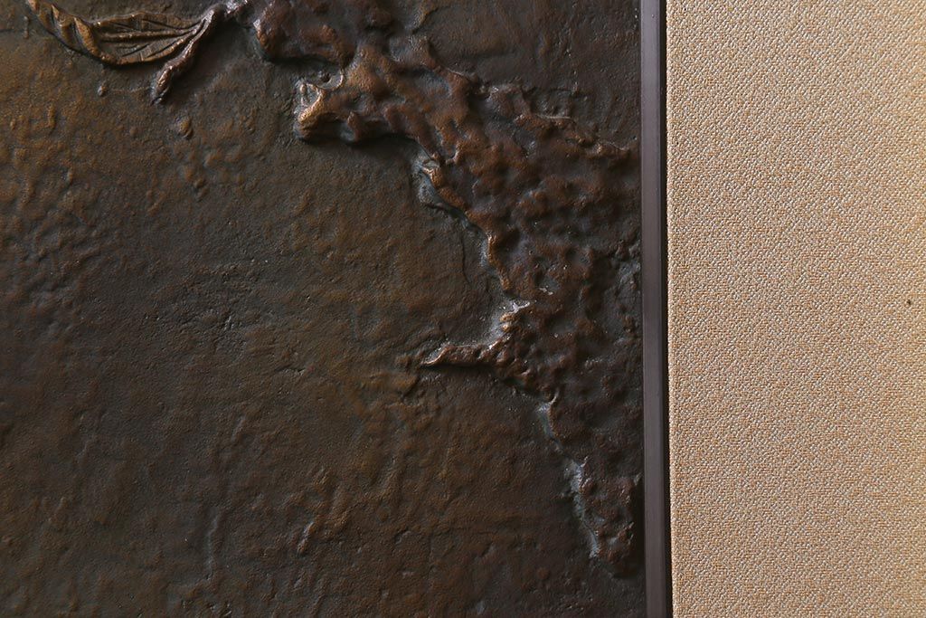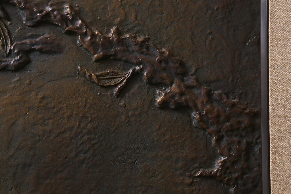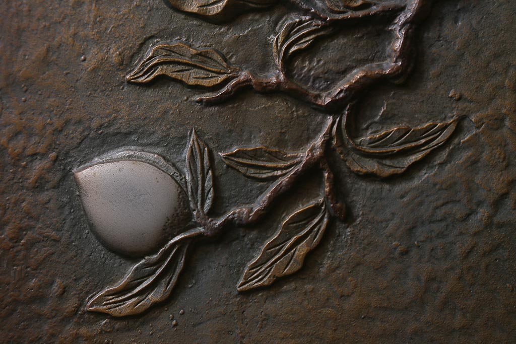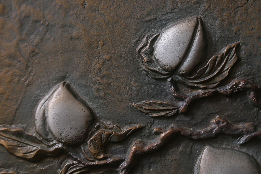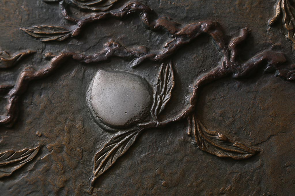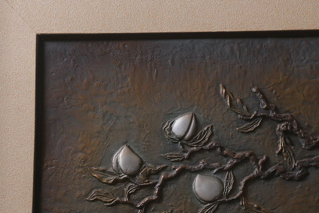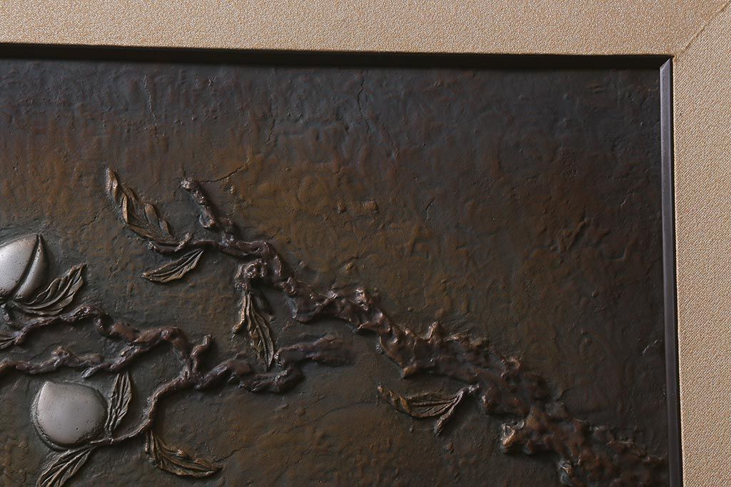 ビンテージ雑貨 正源作 ブロンズレリーフ 鹿と桃(銅板)(R-042068)