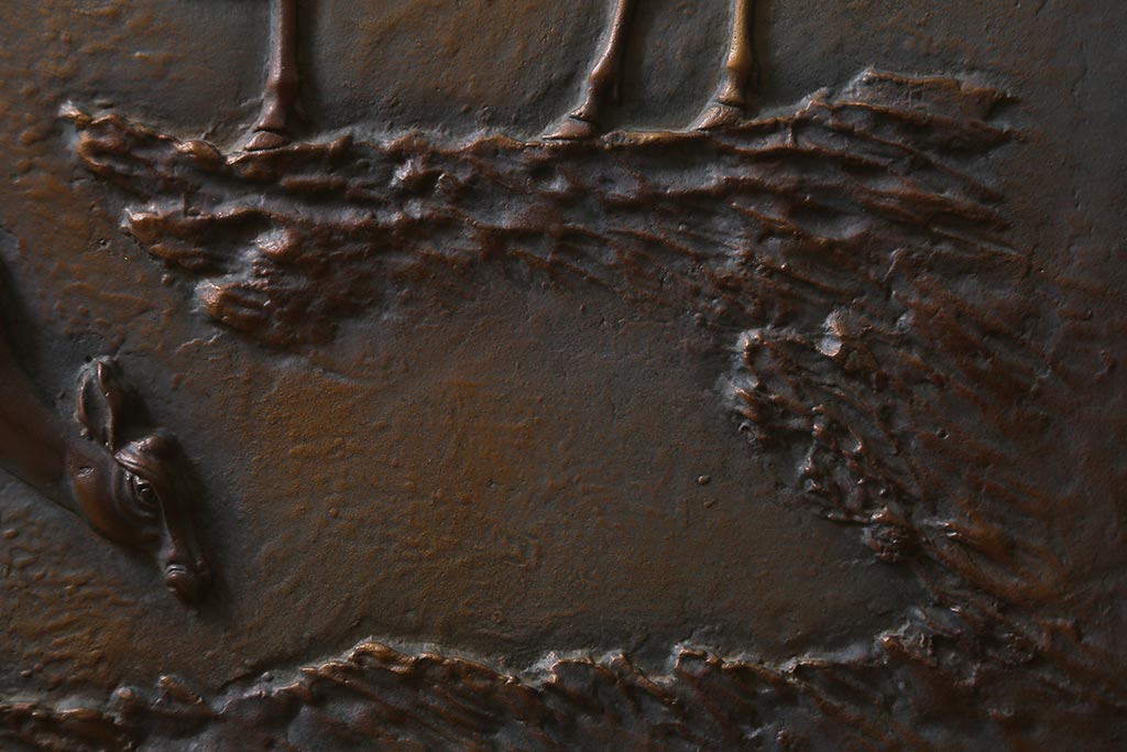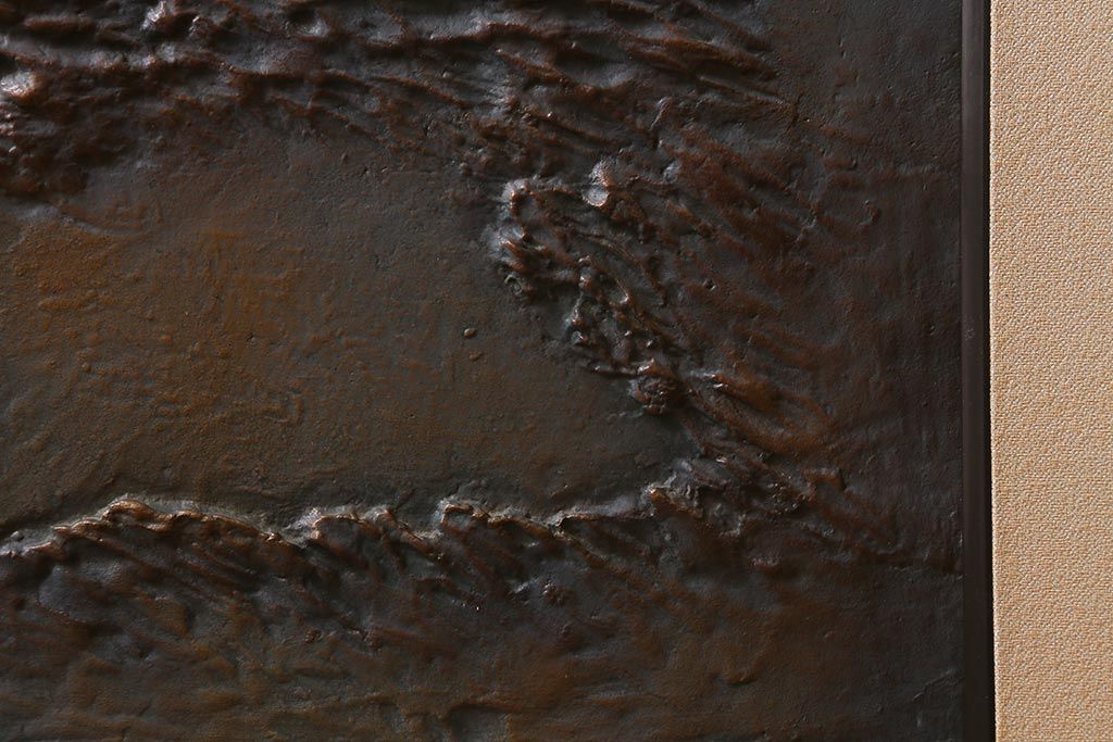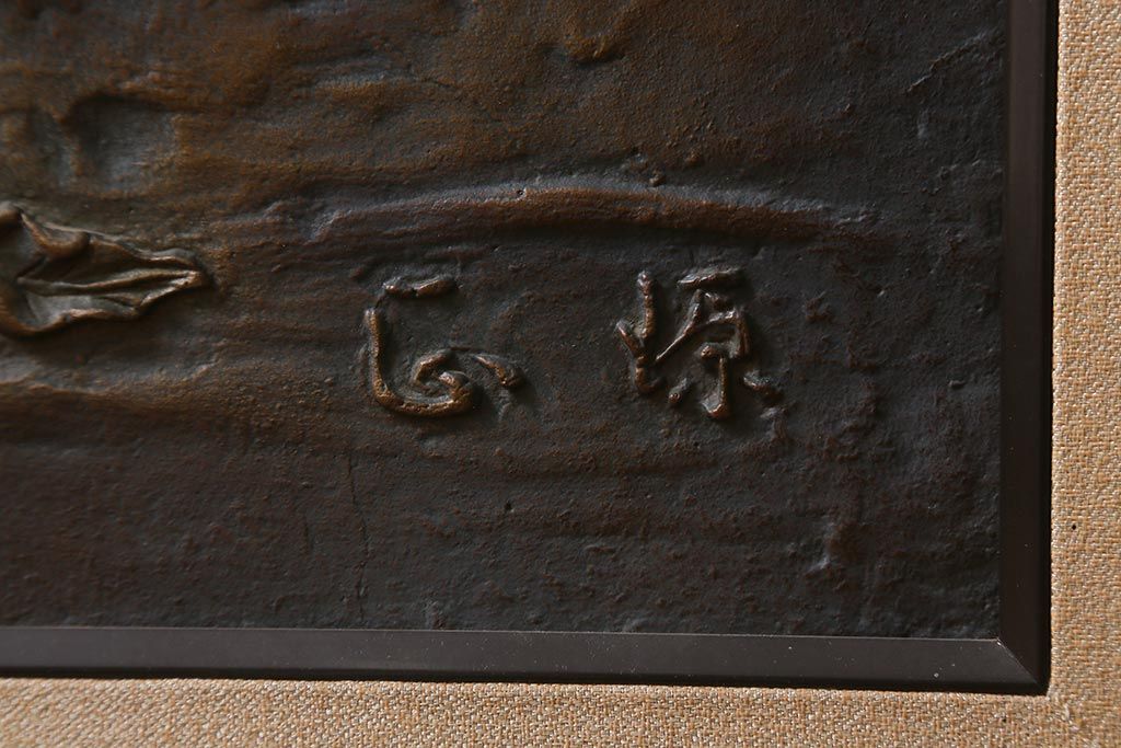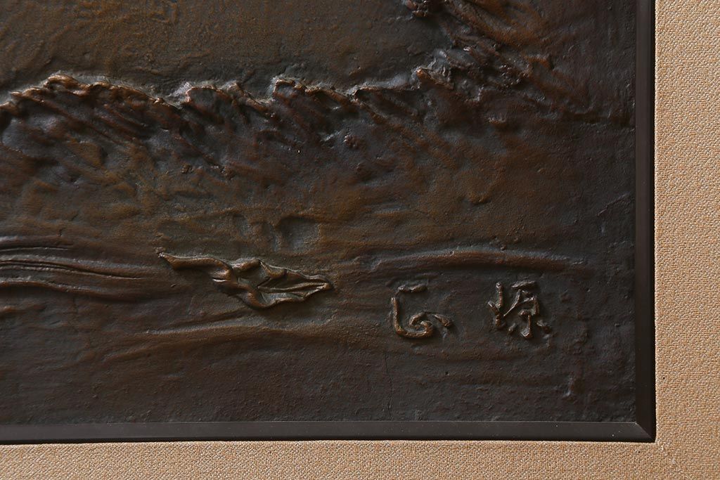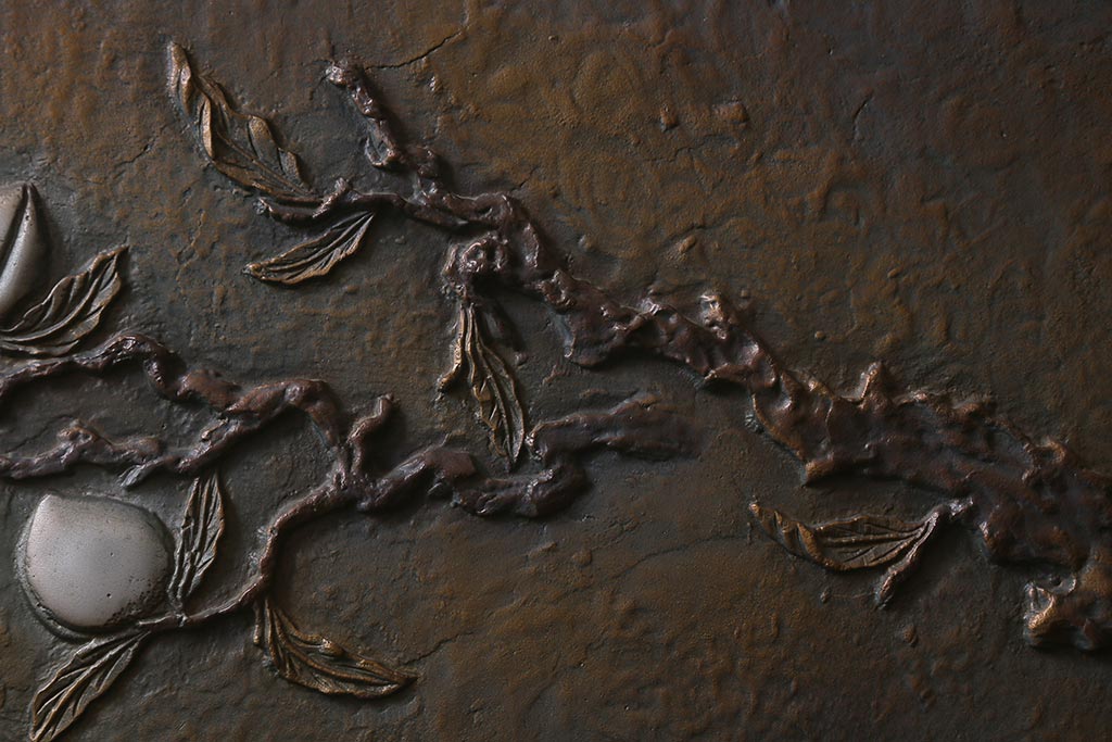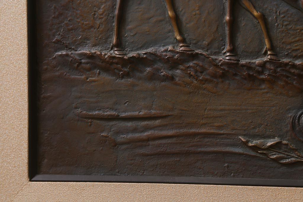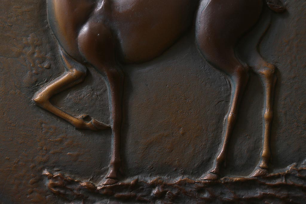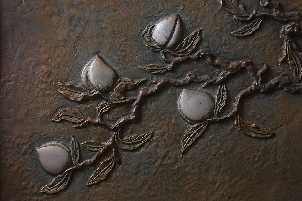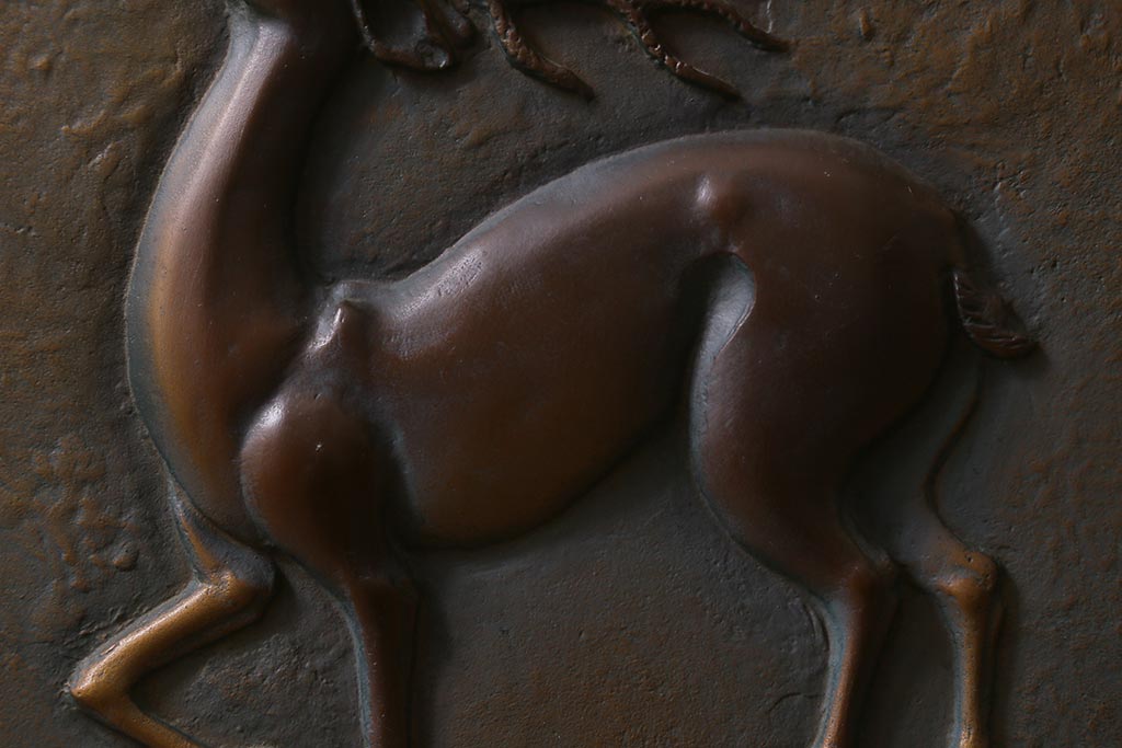 ビンテージ雑貨 正源作 ブロンズレリーフ 鹿と桃(銅板)(R-042068)
