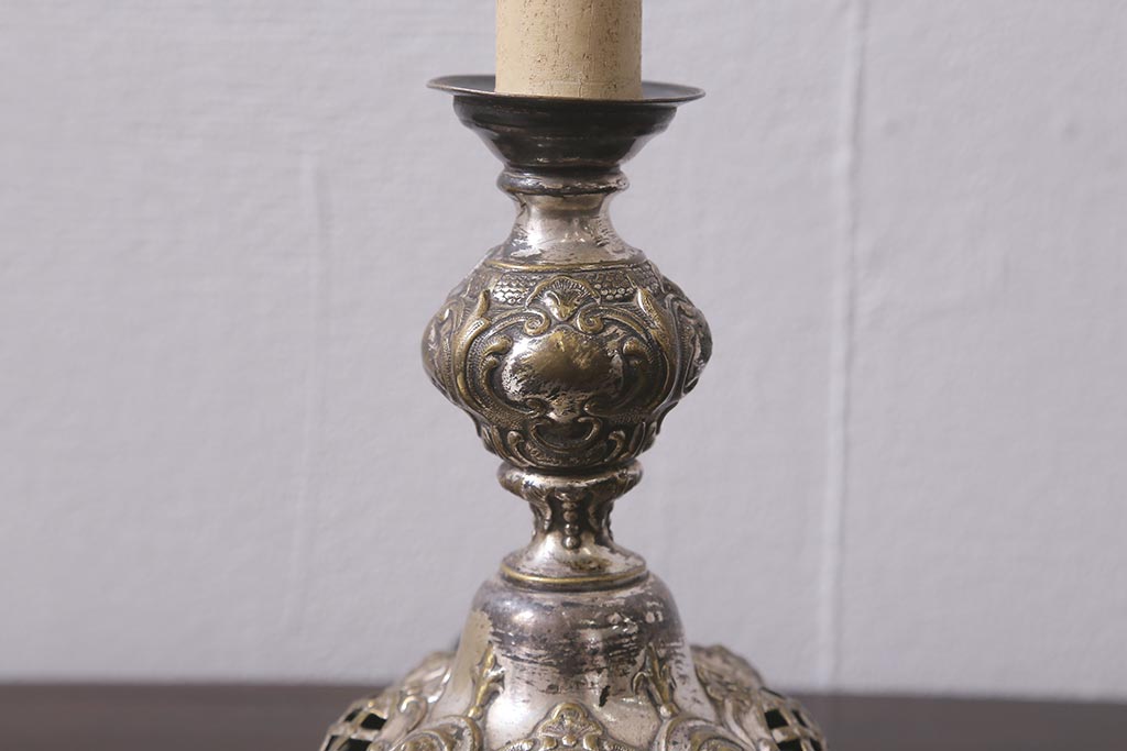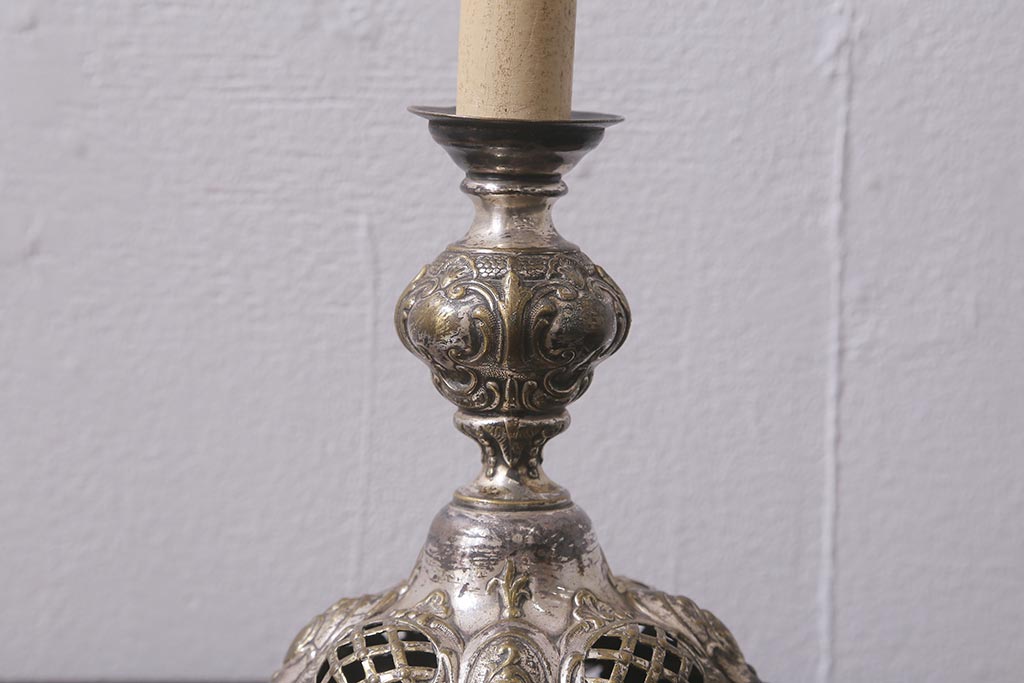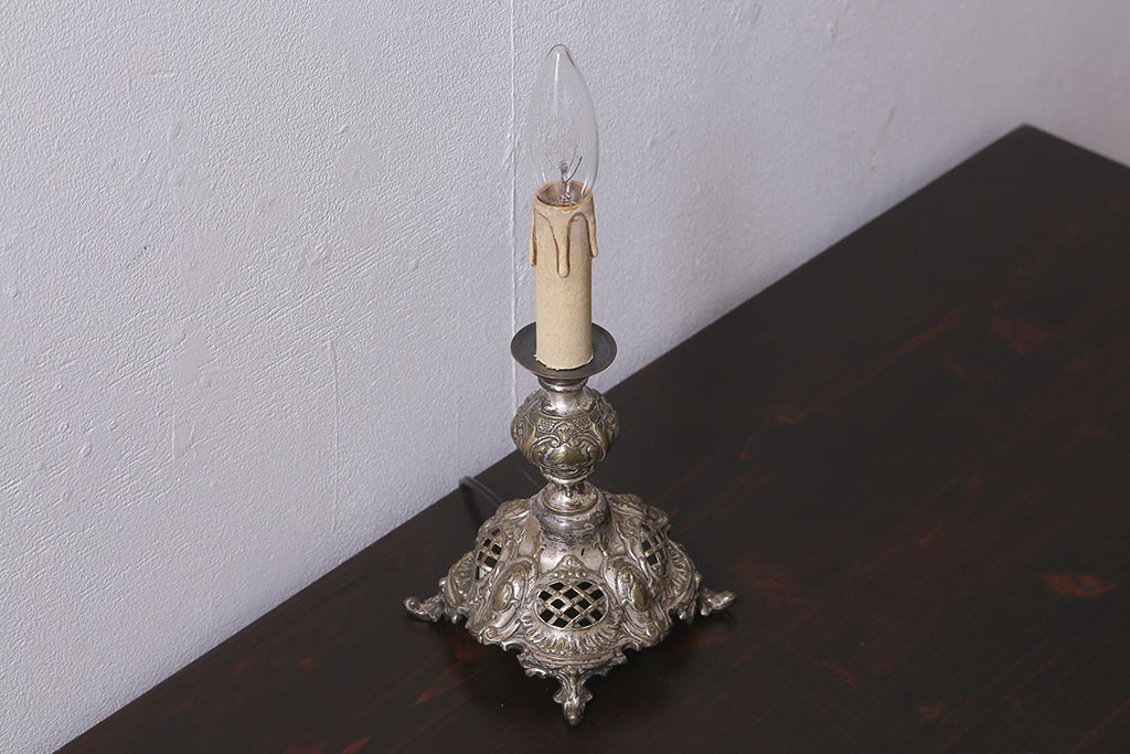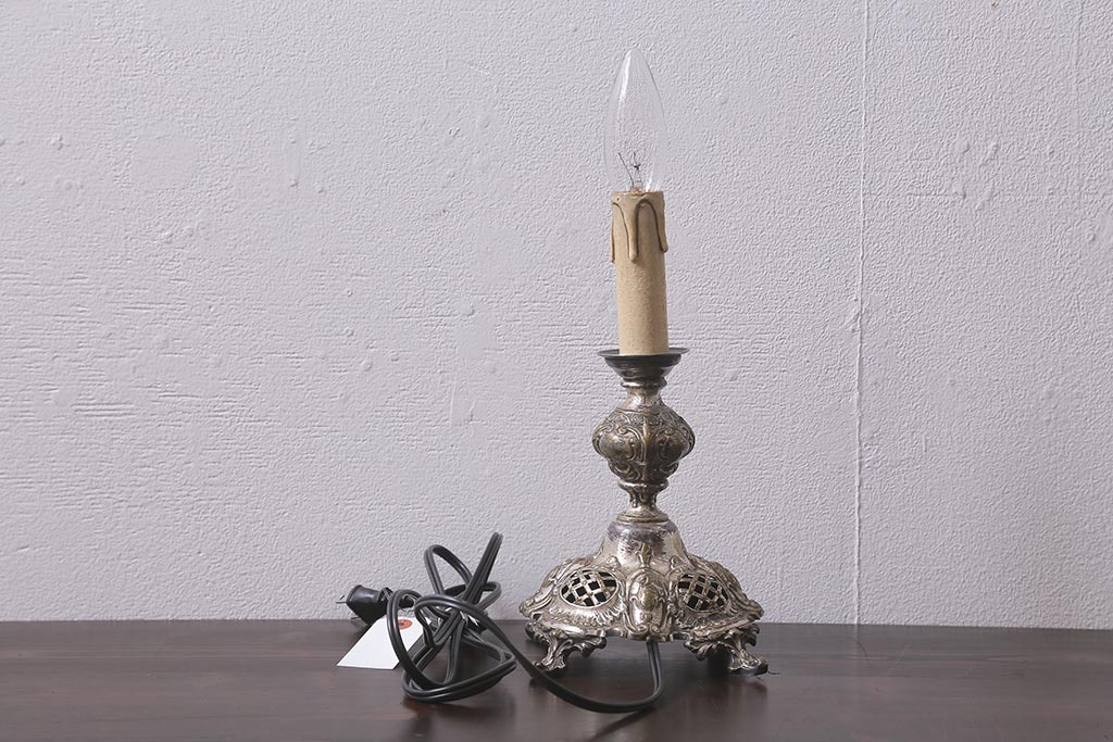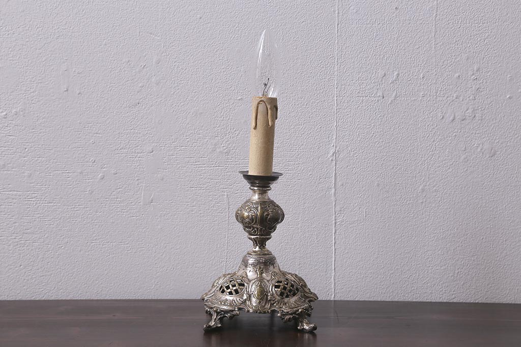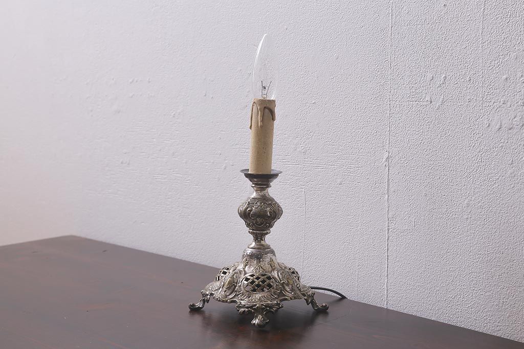 アンティーク照明 イギリスアンティーク キャンドルスタンド型 クラシカルな装飾が目をひくテーブルランプ(スタンドライト、卓上照明)(R-042344)です。