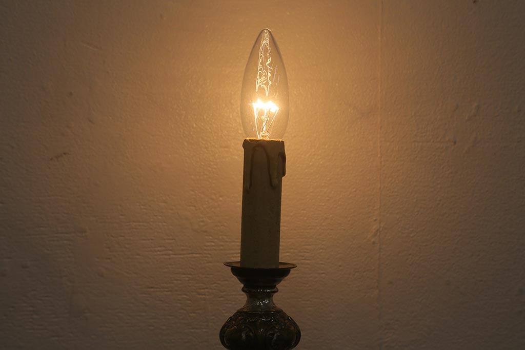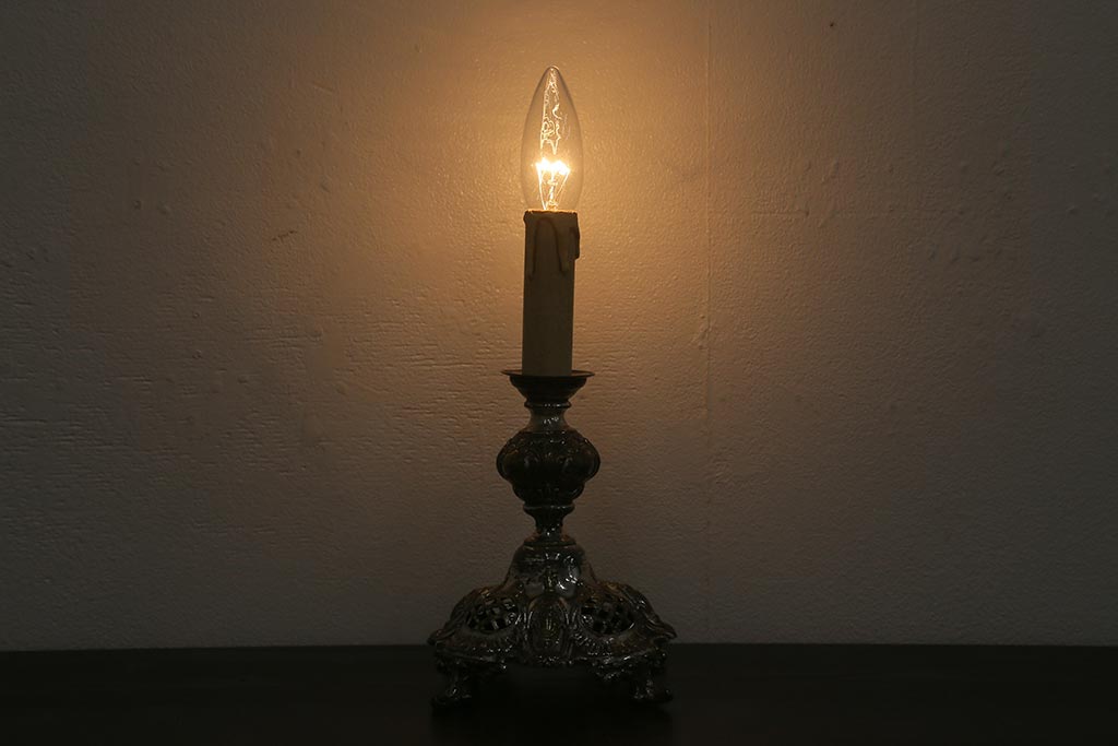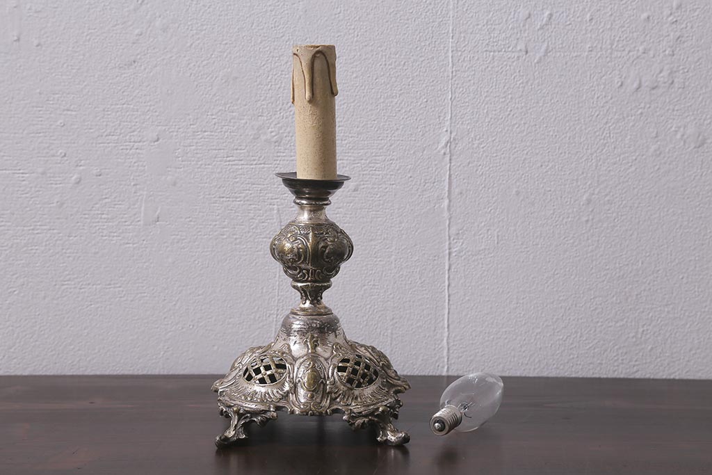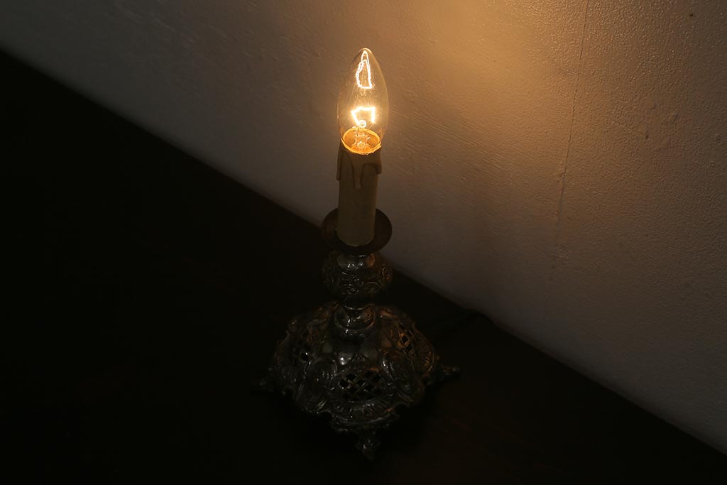 アンティーク照明 イギリスアンティーク キャンドルスタンド型 クラシカルな装飾が目をひくテーブルランプ(スタンドライト、卓上照明)(R-042344)