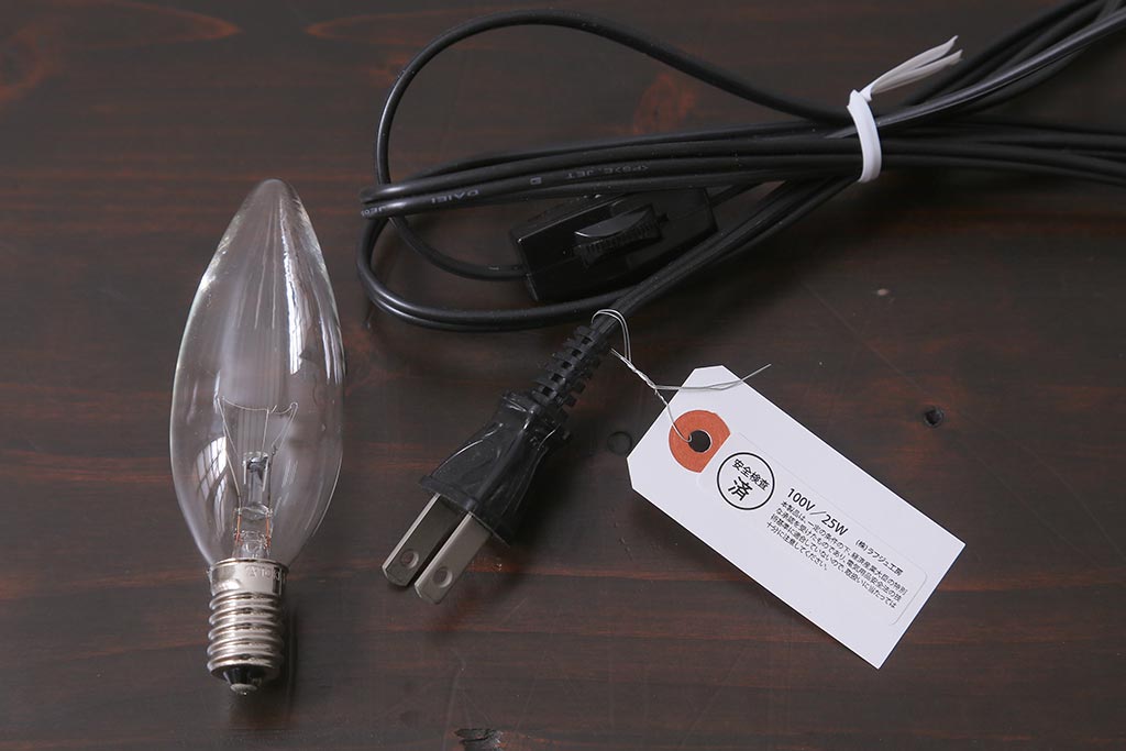 適合電球はE14の25Wです。電球口径さえ合えば、LED電球への交換もお客様ご自身で簡単にできます。