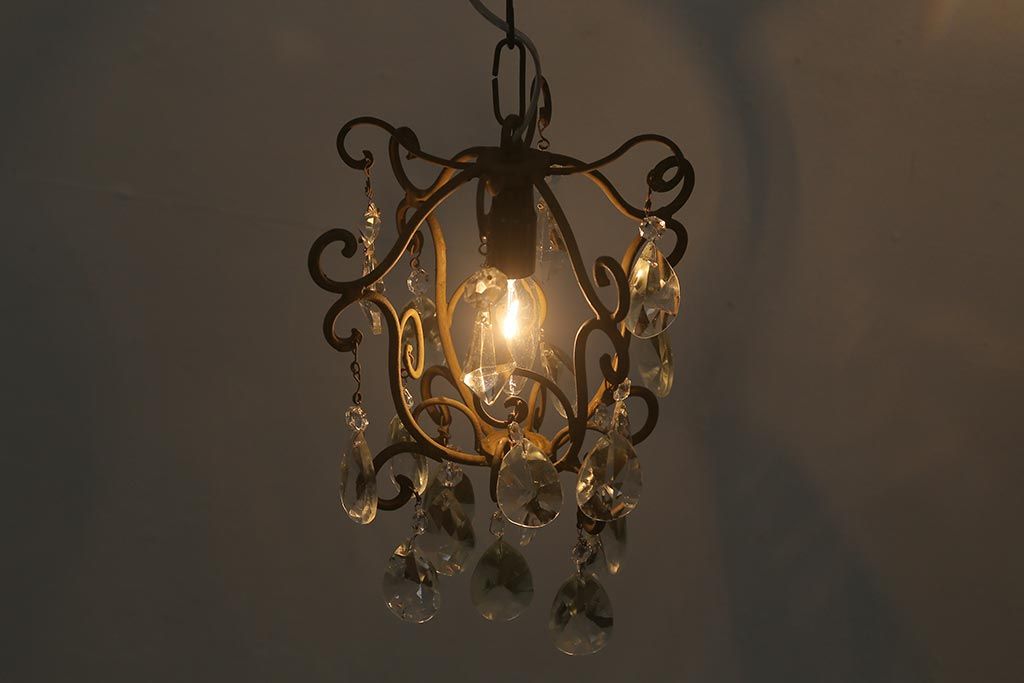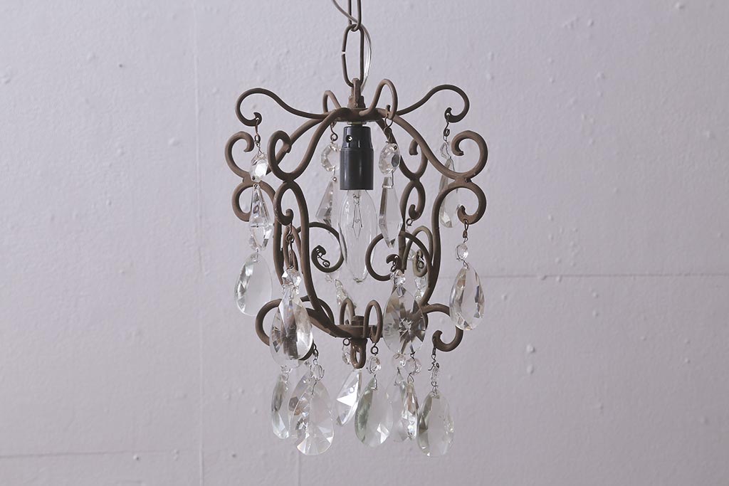 照明・ランプ> シャンデリア > ヴィンテージ照明 ガラスドロップ アイアン アラベスク こだわりのインテリアにおすすめなシャンデリア(天井照明、吊り下げ照明、ビンテージ)(R-042345)