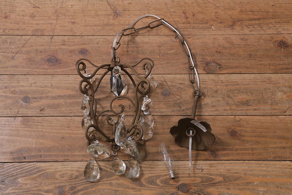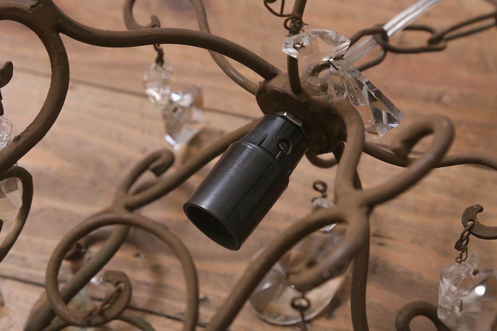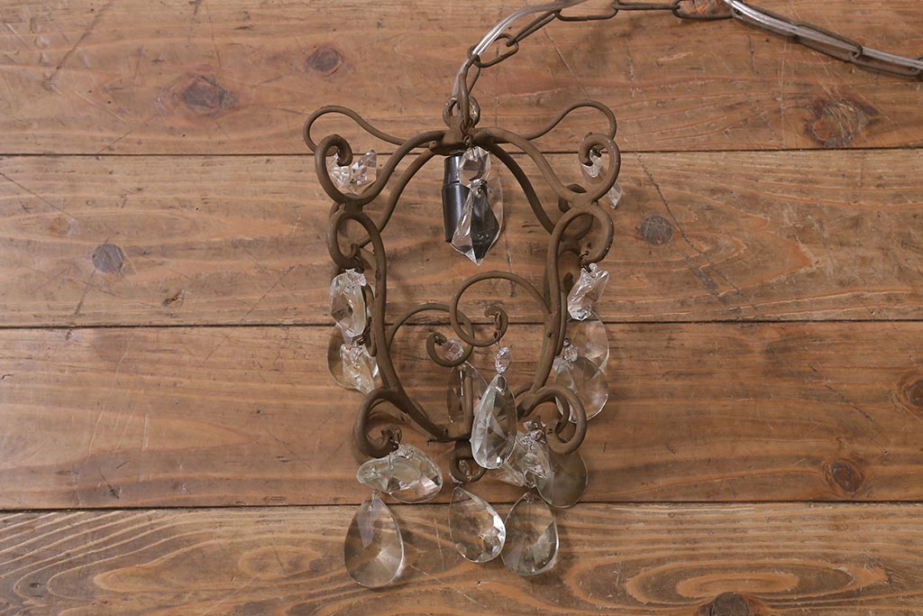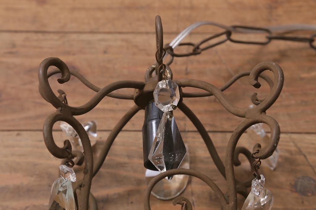 ヴィンテージ照明 ガラスドロップ アイアン アラベスク こだわりのインテリアにおすすめなシャンデリア(天井照明、吊り下げ照明)(R-042345)です。