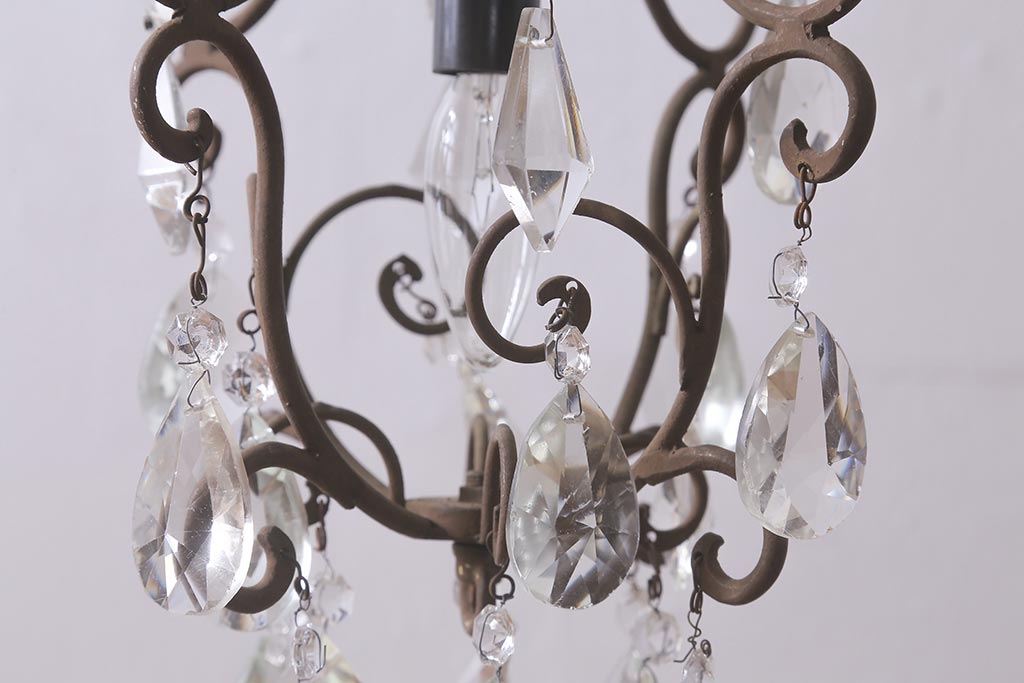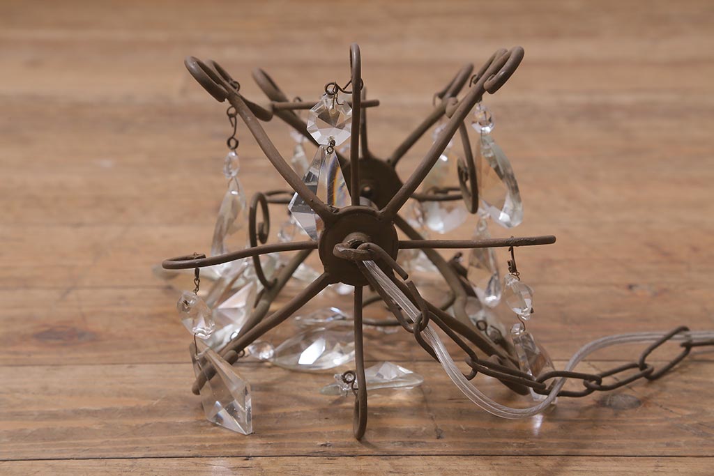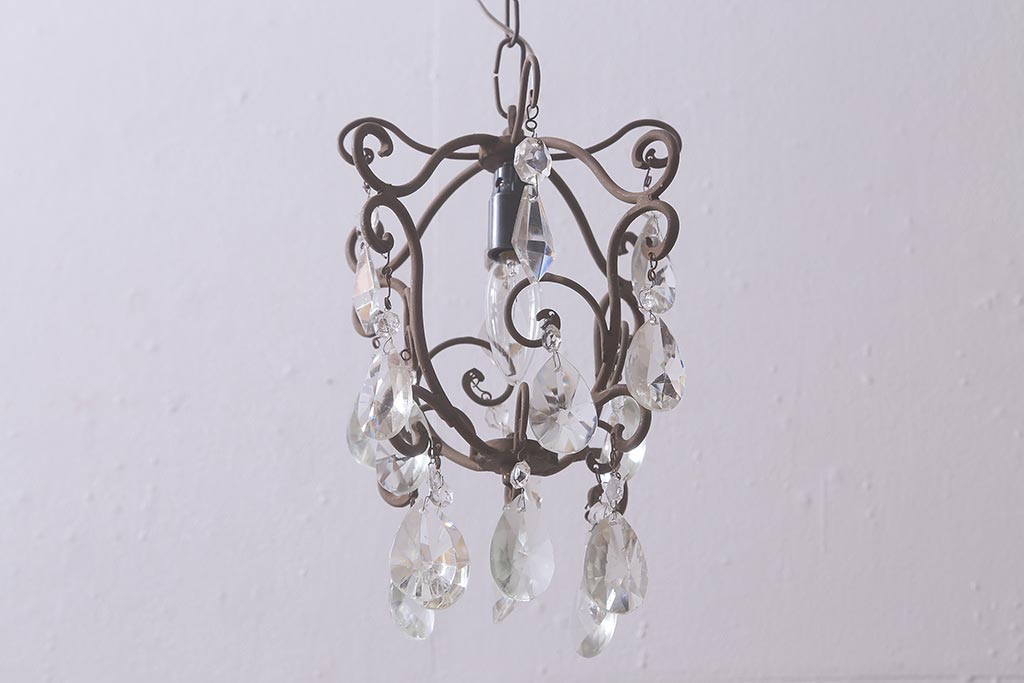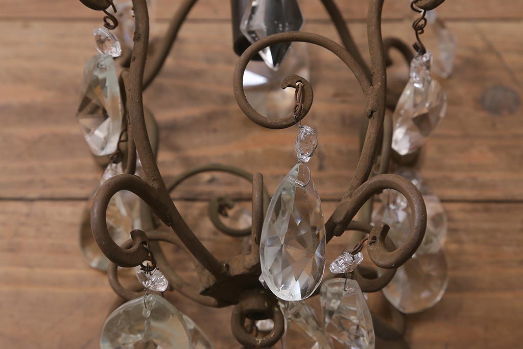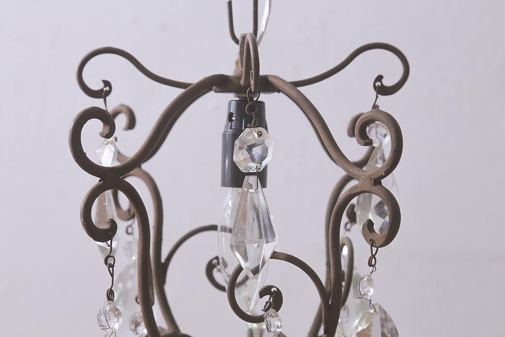 ヴィンテージ照明 ガラスドロップ アイアン アラベスク こだわりのインテリアにおすすめなシャンデリア(天井照明、吊り下げ照明)(R-042345)です。