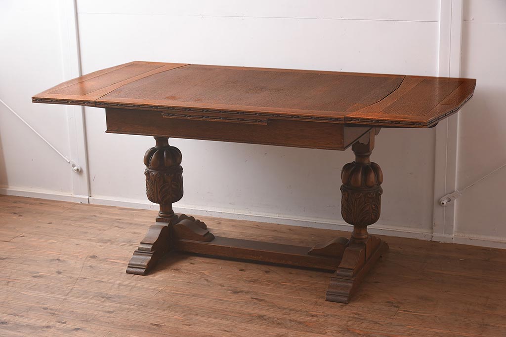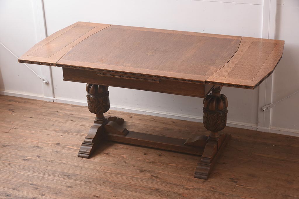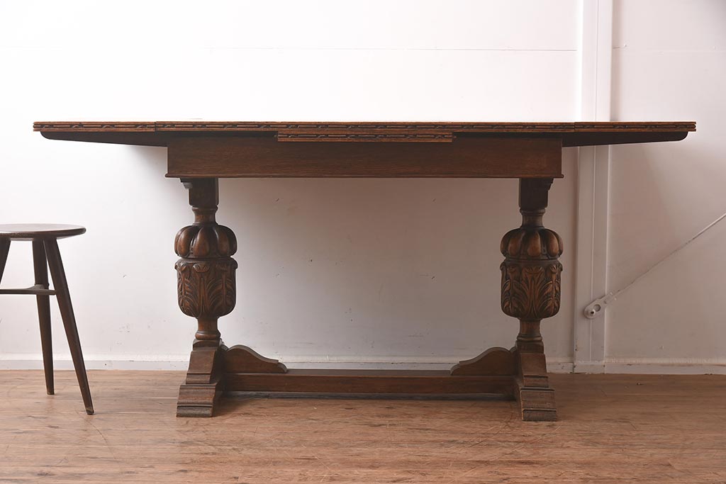 テーブル> エクステンションテーブル > アンティーク家具 イギリスアンティーク オーク材 存在感あるバルボスレッグのドローリーフテーブル(エクステンションテーブル、ダイニングテーブル)(R-042214)
