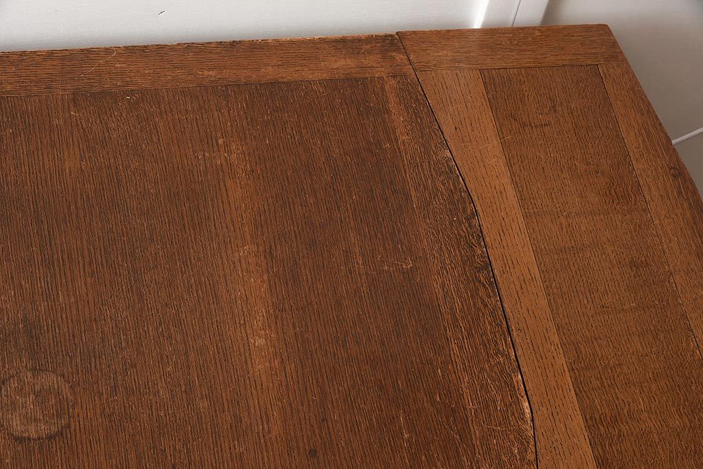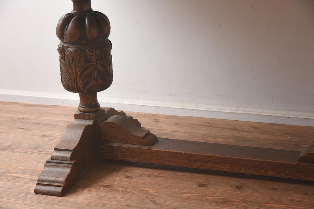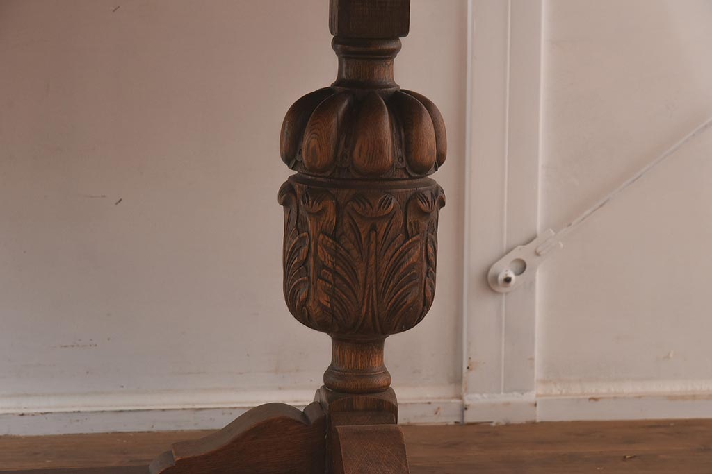テーブル> 6人用ダイニングテーブル > アンティーク家具 イギリスアンティーク オーク材 存在感あるバルボスレッグのドローリーフテーブル(エクステンションテーブル、ダイニングテーブル)(R-042214)