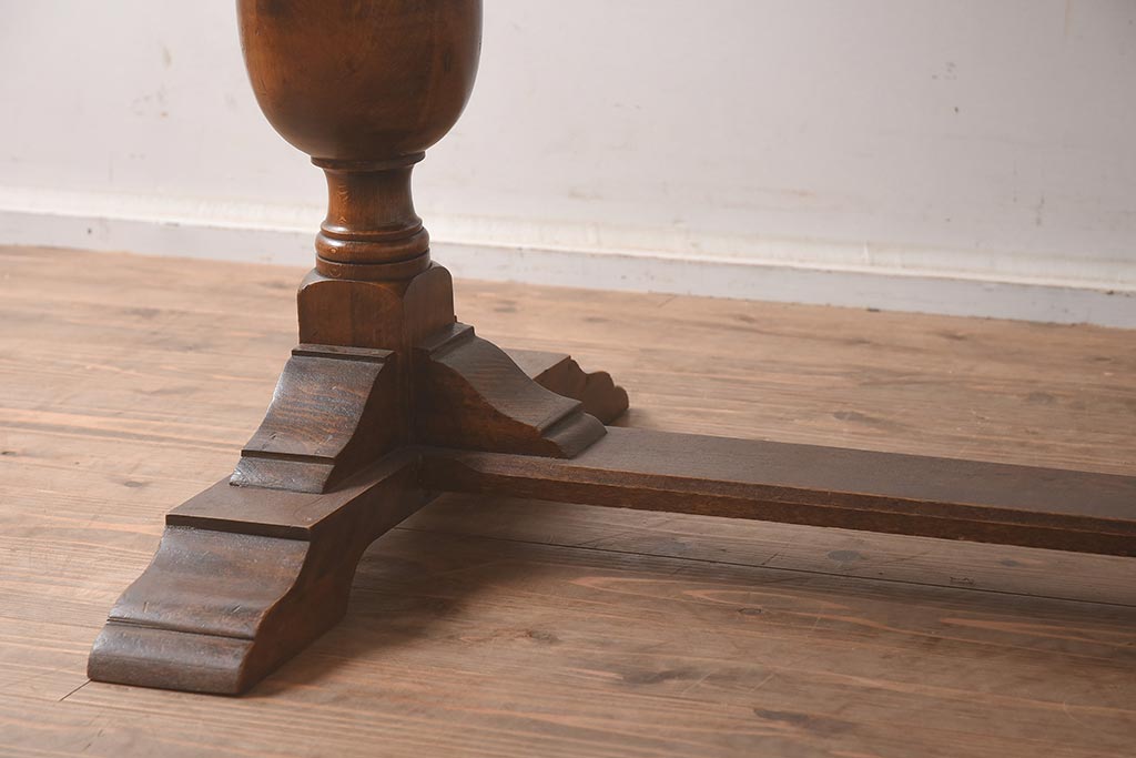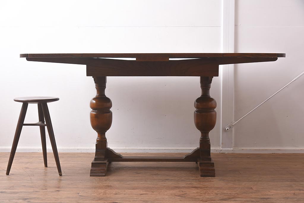 テーブル> エクステンションテーブル > アンティーク家具 イギリスアンティーク オーク材 丸みのあるバルボスレッグが魅力的なドローリーフテーブル(エクステンションテーブル、ダイニングテーブル)(R-042217)