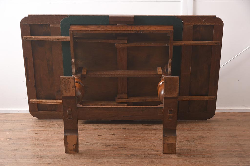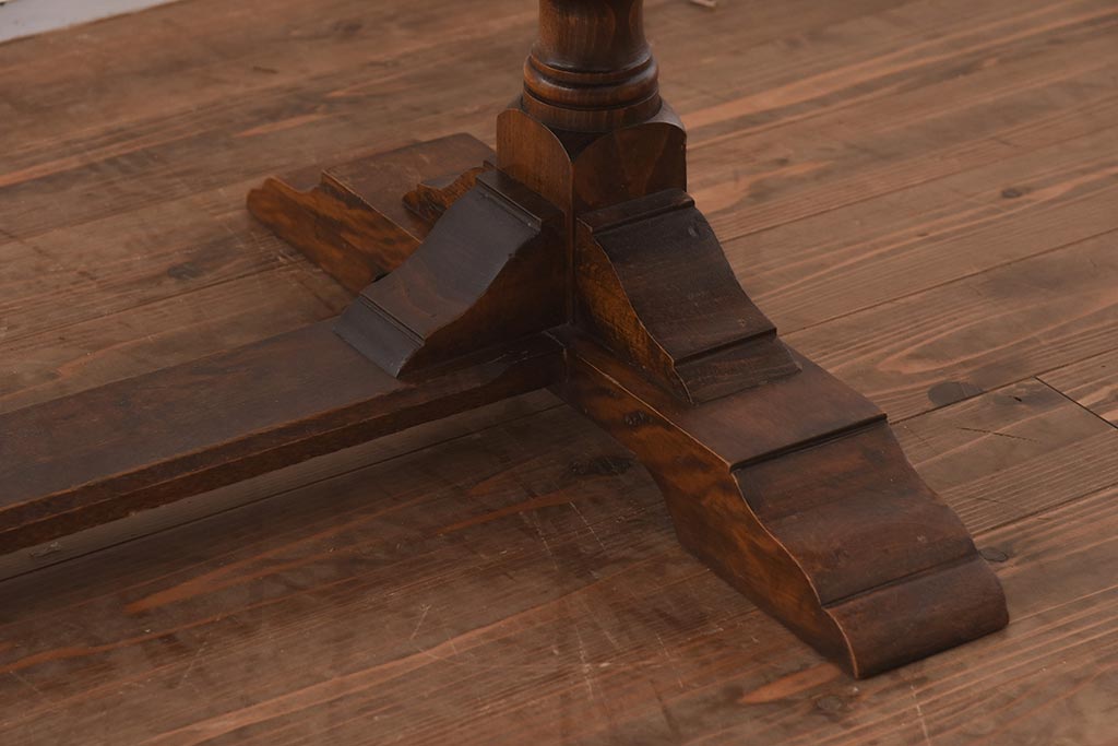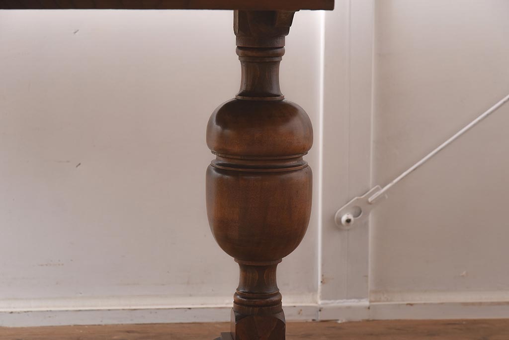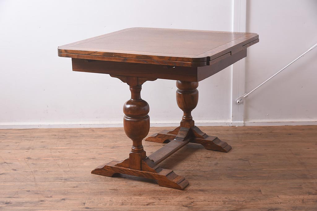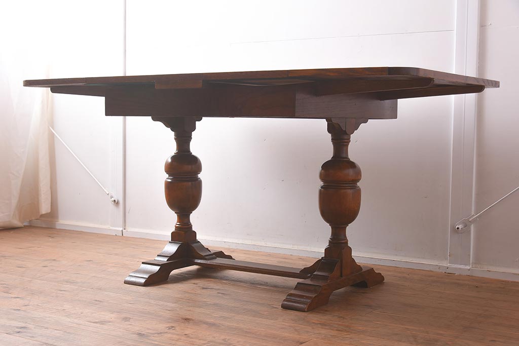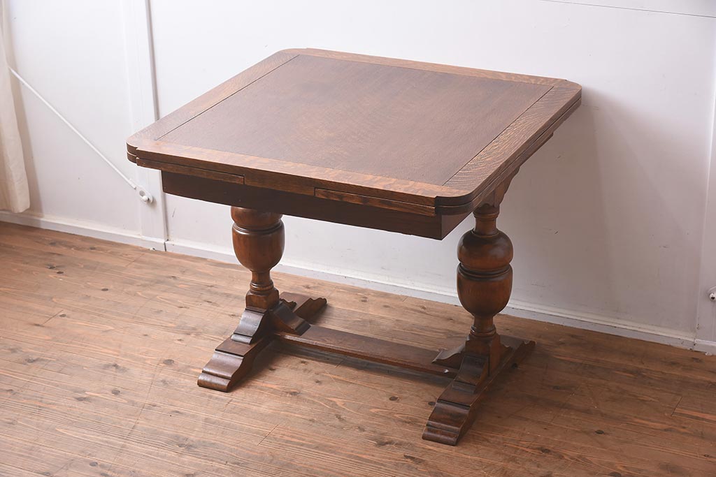 テーブル> 2人用ダイニングテーブル > アンティーク家具 イギリスアンティーク オーク材 丸みのあるバルボスレッグが魅力的なドローリーフテーブル(エクステンションテーブル、ダイニングテーブル)(R-042217)