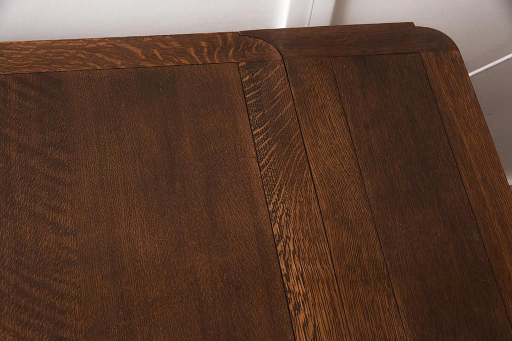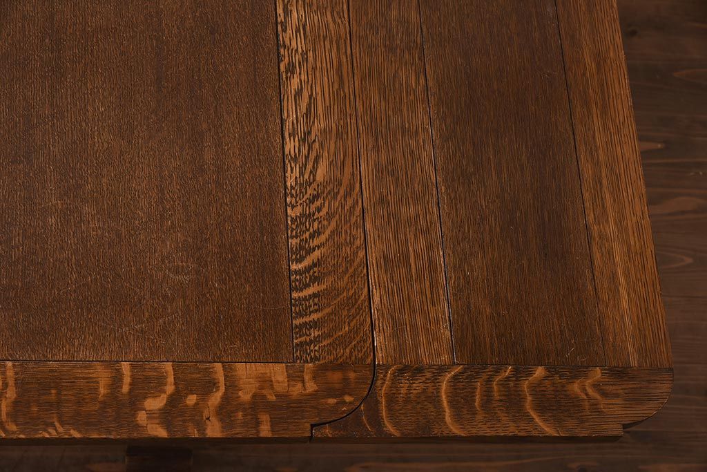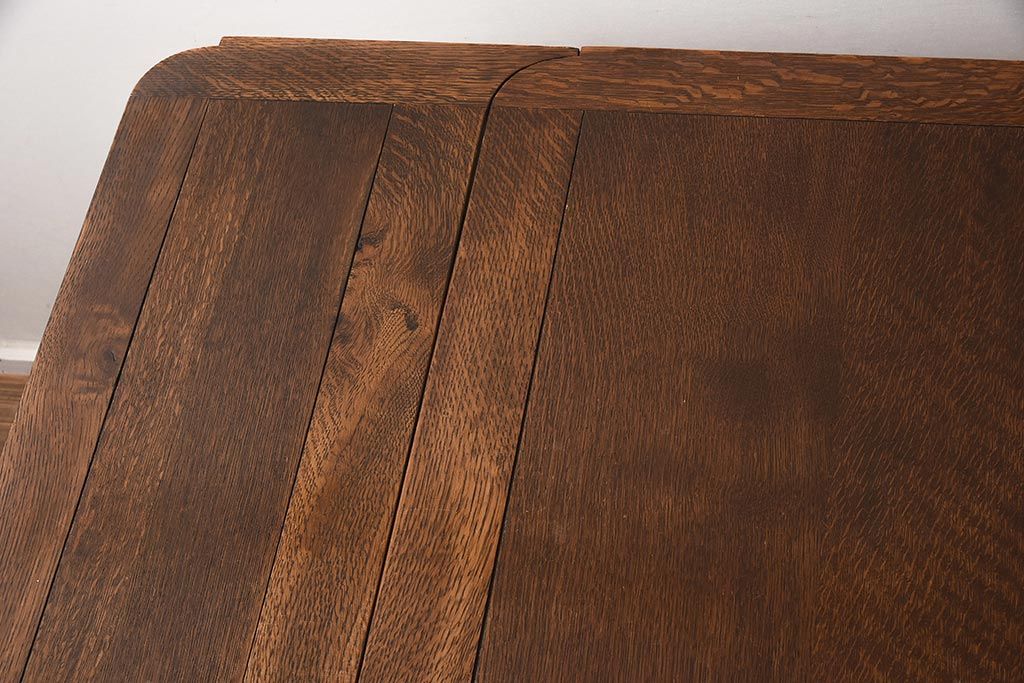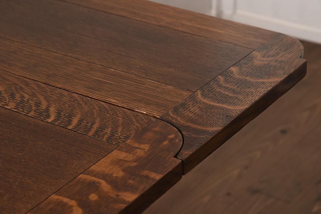 テーブル> 6人用ダイニングテーブル > アンティーク家具 イギリスアンティーク オーク材 丸みのあるバルボスレッグが魅力的なドローリーフテーブル(エクステンションテーブル、ダイニングテーブル)(R-042217)