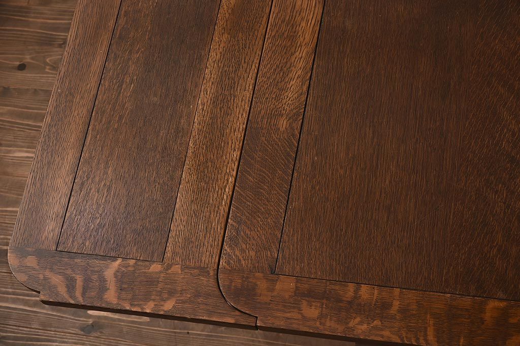 テーブル> 4人用ダイニングテーブル > アンティーク家具 イギリスアンティーク オーク材 丸みのあるバルボスレッグが魅力的なドローリーフテーブル(エクステンションテーブル、ダイニングテーブル)(R-042217)