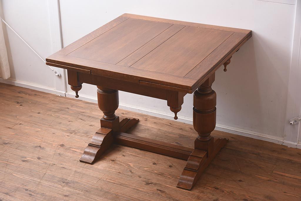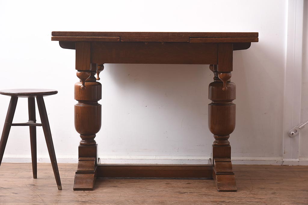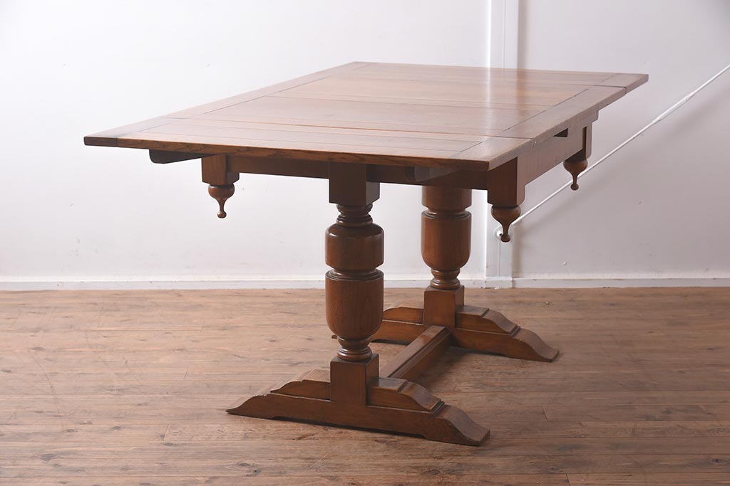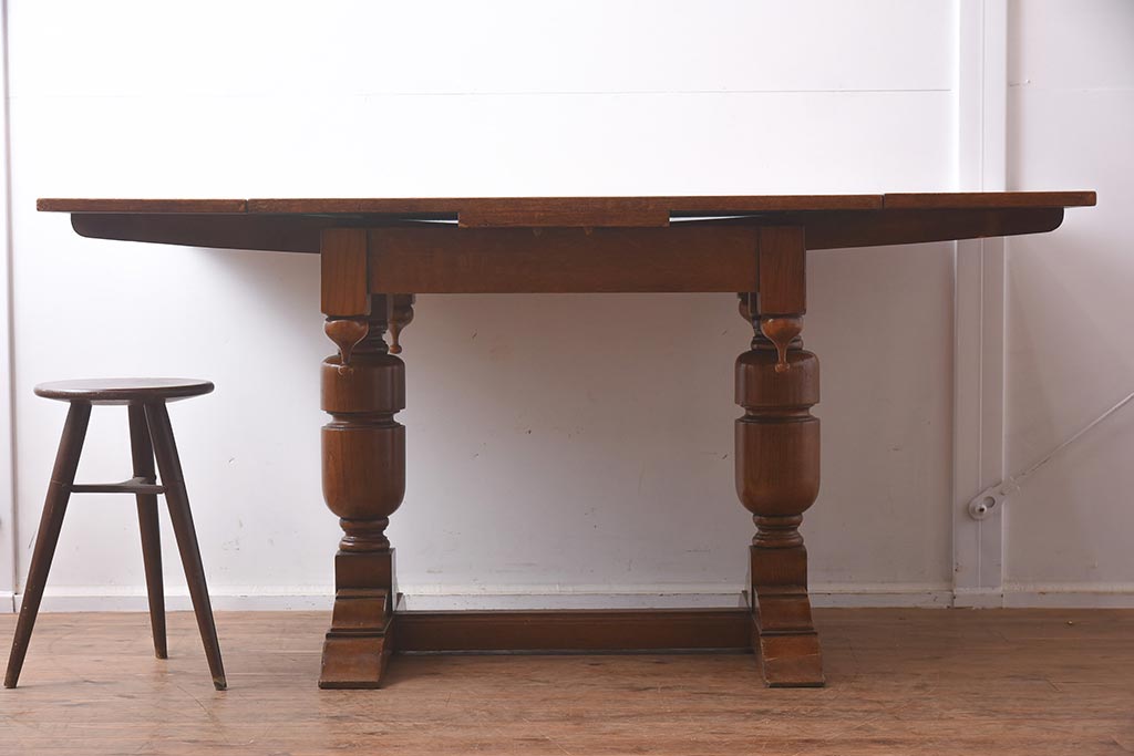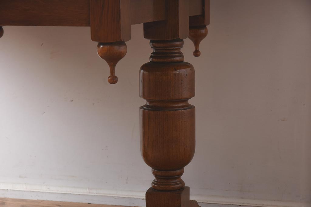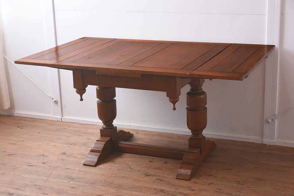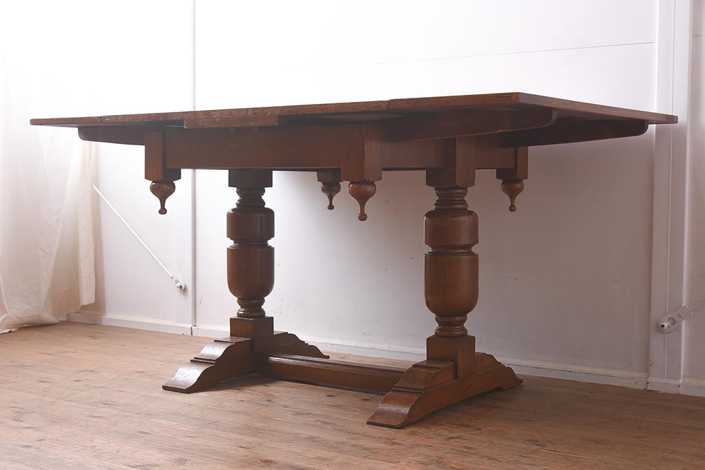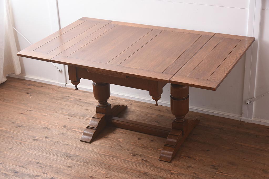 アンティーク家具 イギリスアンティーク シンプルなバルボスレッグのドローリーフテーブル(エクステンションテーブル、ダイニングテーブル)(R-042216)です。