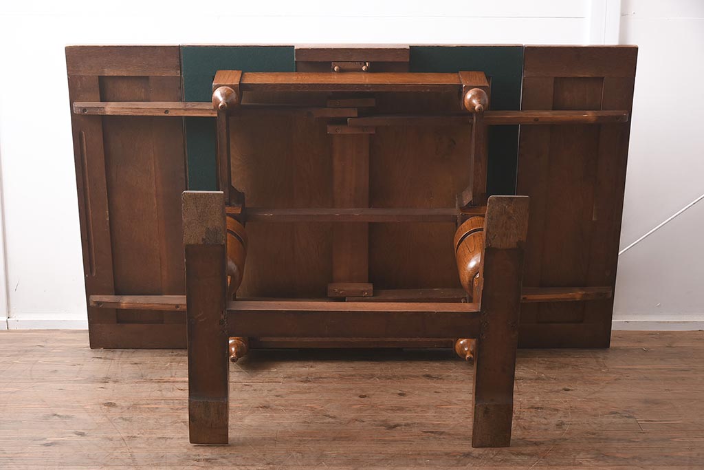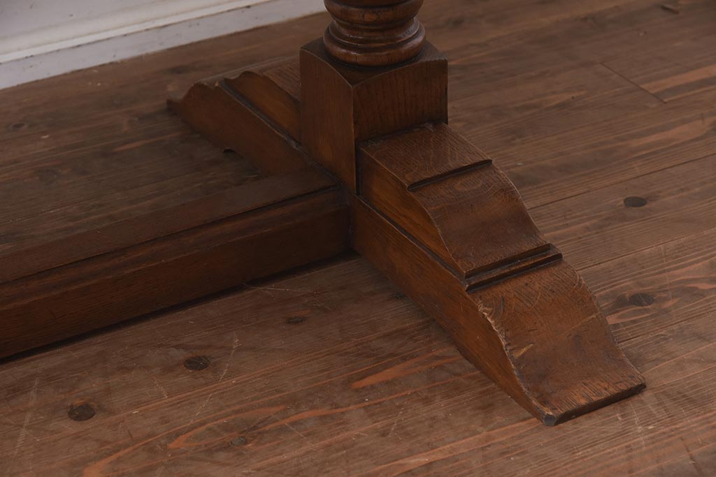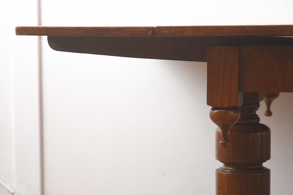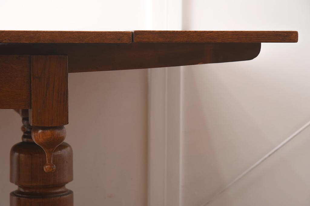 アンティーク家具 イギリスアンティーク シンプルなバルボスレッグのドローリーフテーブル(エクステンションテーブル、ダイニングテーブル)(R-042216)