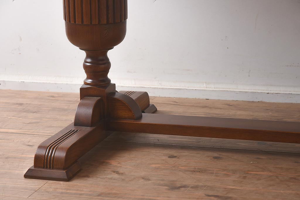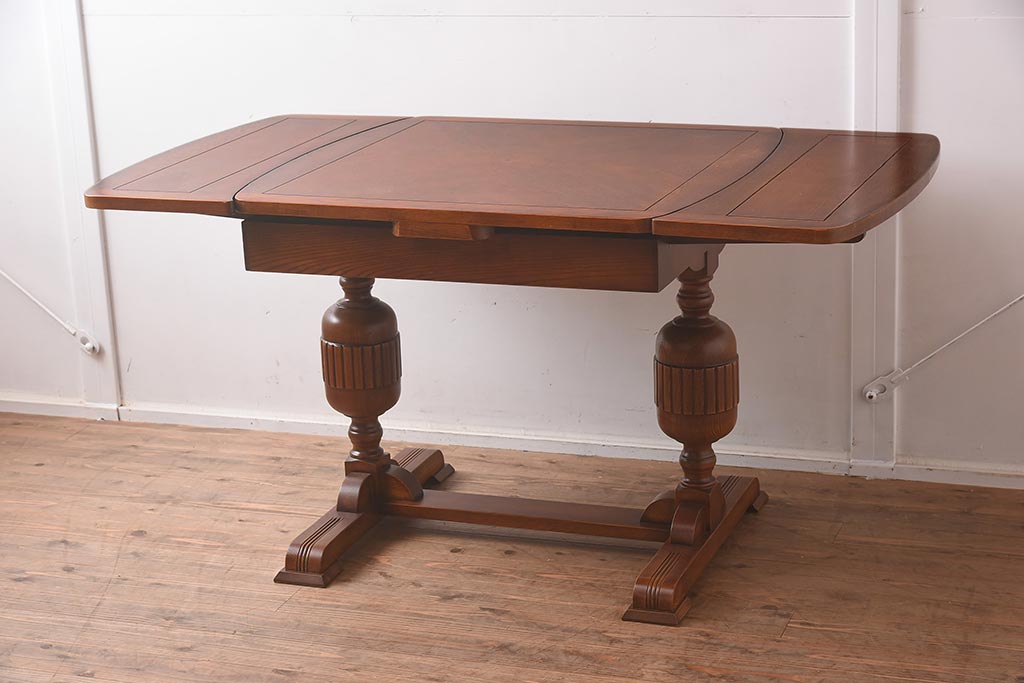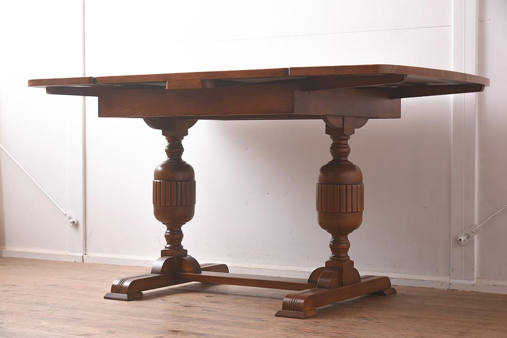 アンティーク家具 イギリスアンティーク オーク材 バルボスレッグ パーケット天板のドローリーフテーブル(エクステンションテーブル、ダイニングテーブル)(R-042218)です。