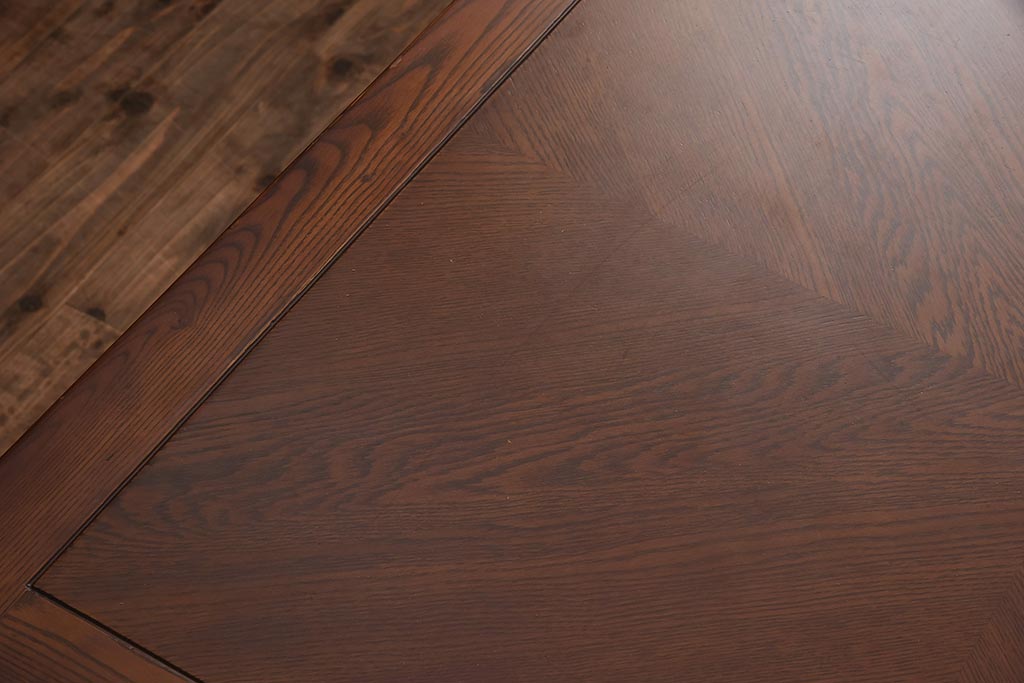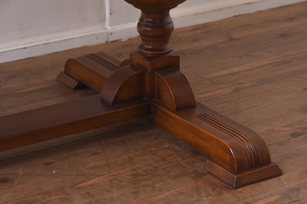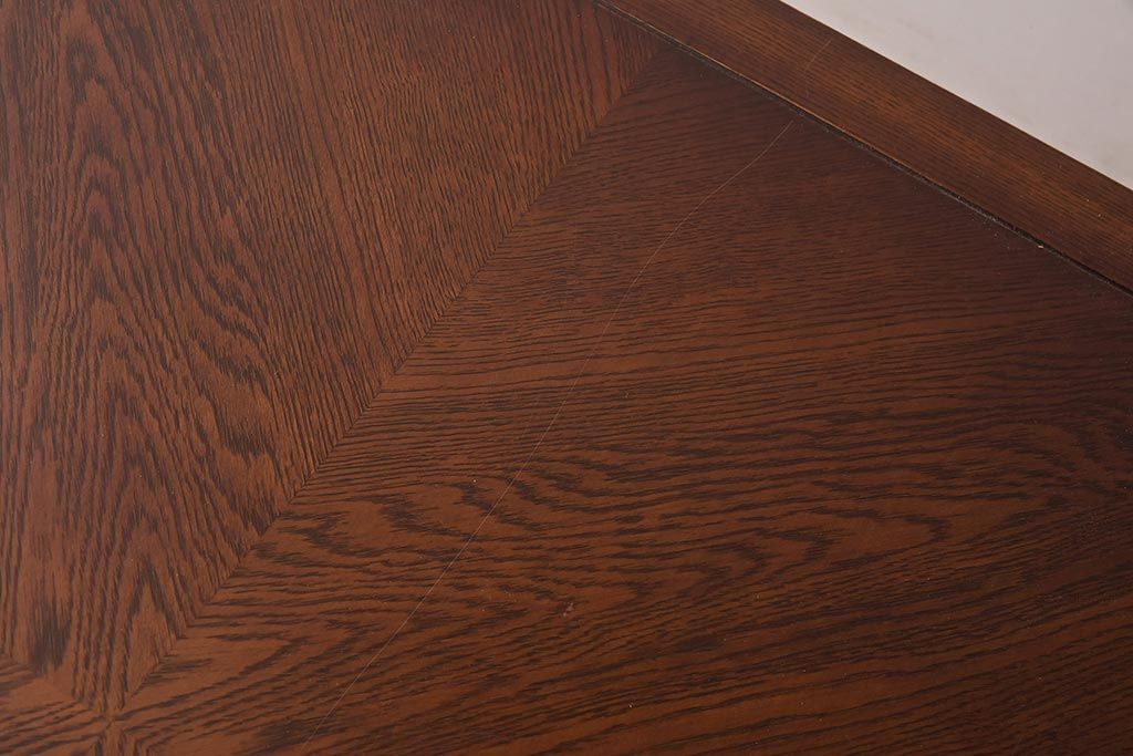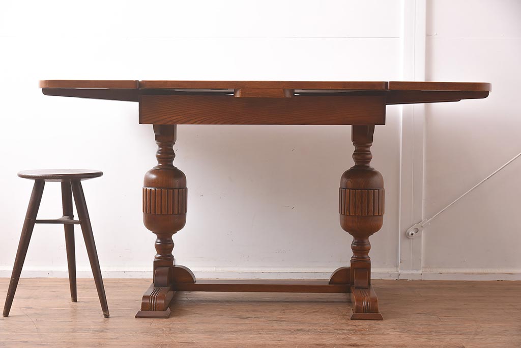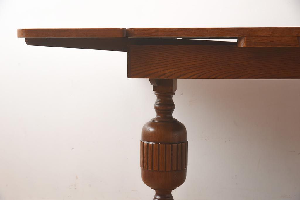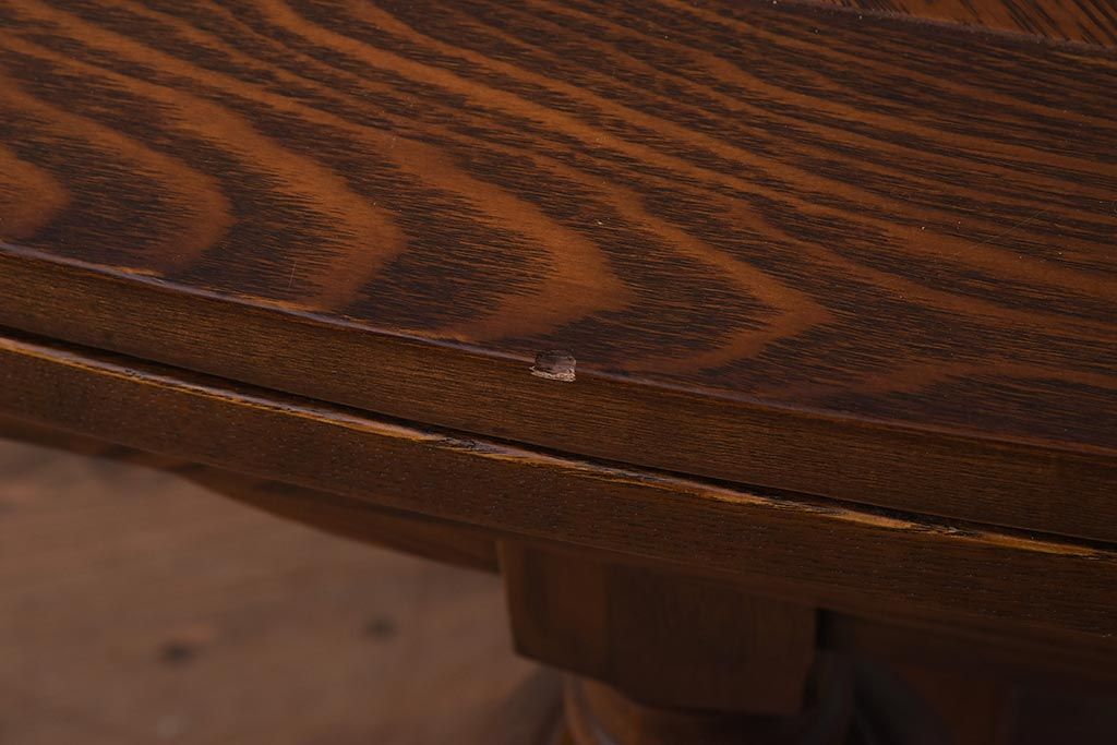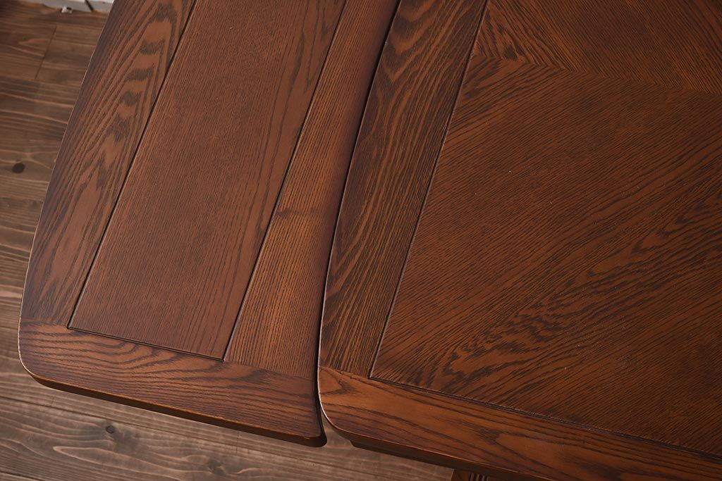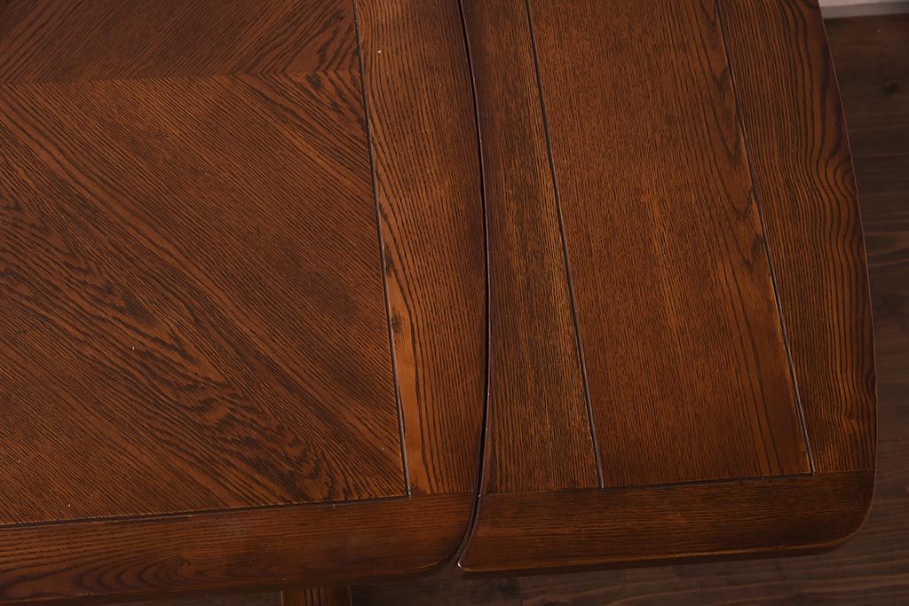 テーブル> エクステンションテーブル > アンティーク家具 イギリスアンティーク オーク材 バルボスレッグ パーケット天板のドローリーフテーブル(エクステンションテーブル、ダイニングテーブル)(R-042218)