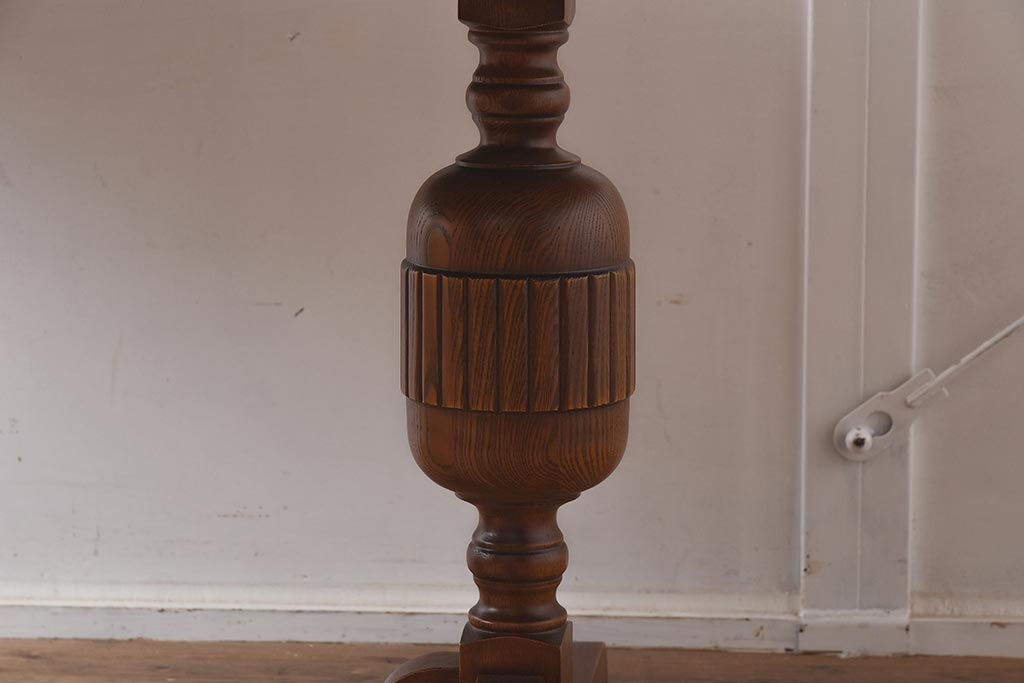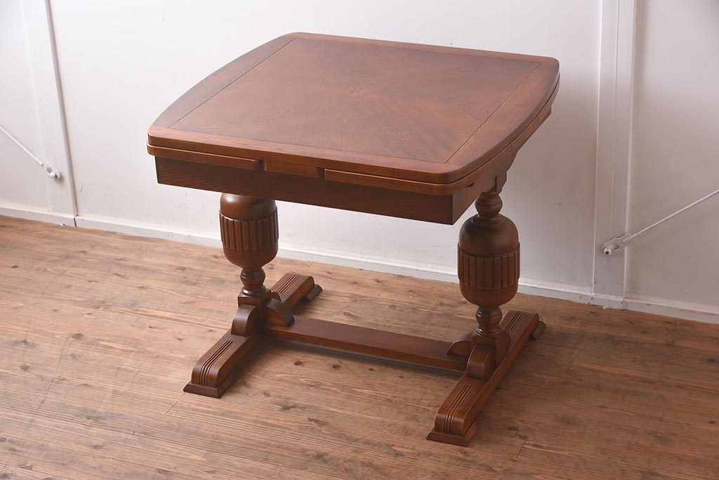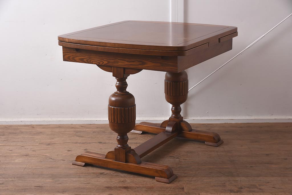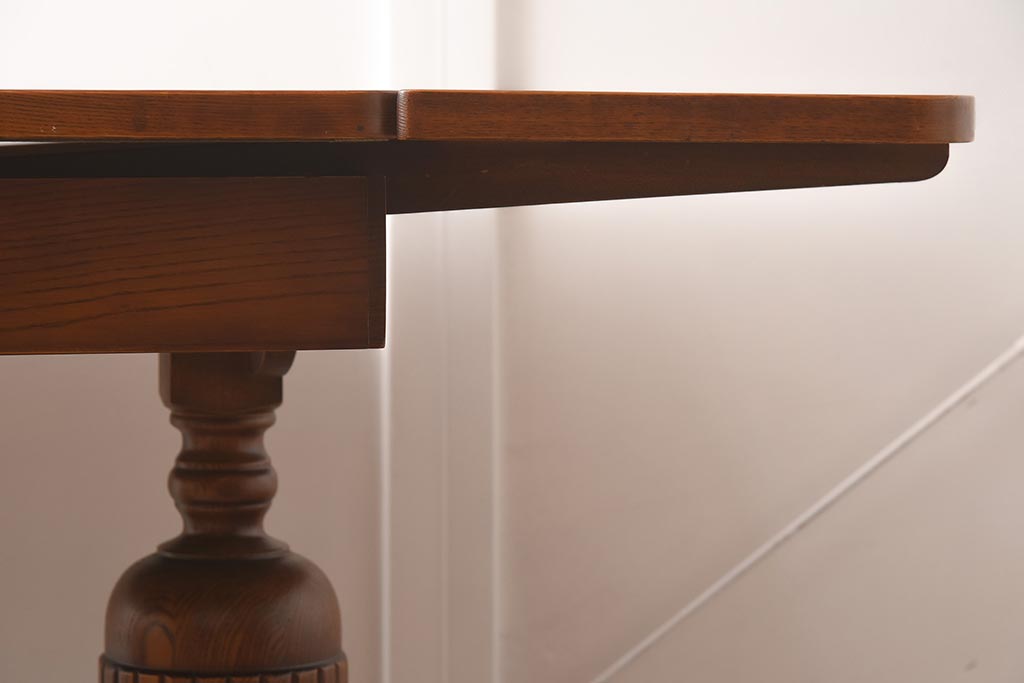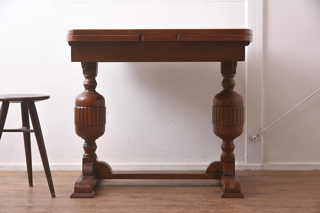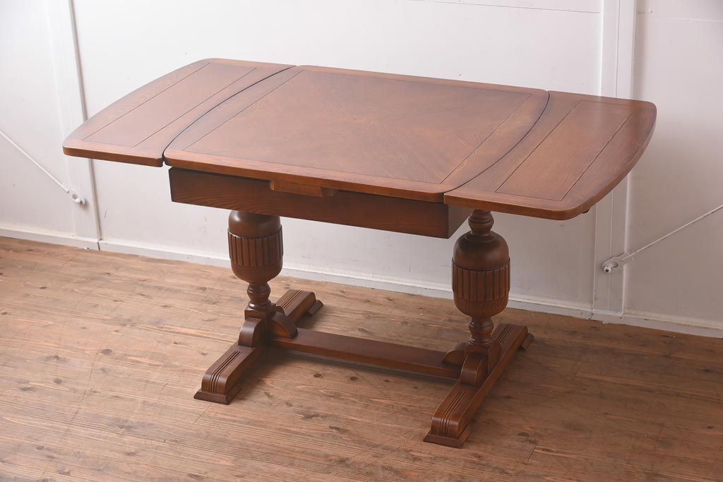 テーブル> 2人用ダイニングテーブル > アンティーク家具 イギリスアンティーク オーク材 バルボスレッグ パーケット天板のドローリーフテーブル(エクステンションテーブル、ダイニングテーブル)(R-042218)