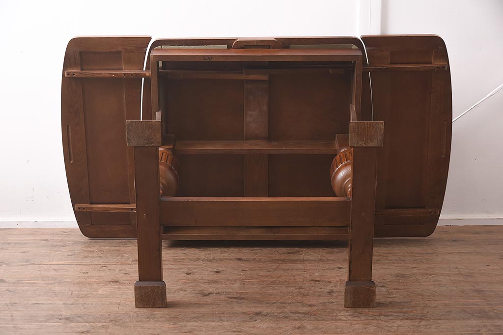 アンティーク家具 イギリスアンティーク オーク材 バルボスレッグ パーケット天板のドローリーフテーブル(エクステンションテーブル、ダイニングテーブル)(R-042218)