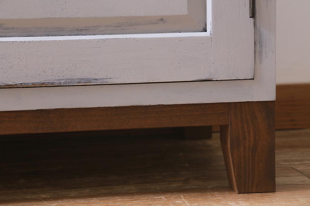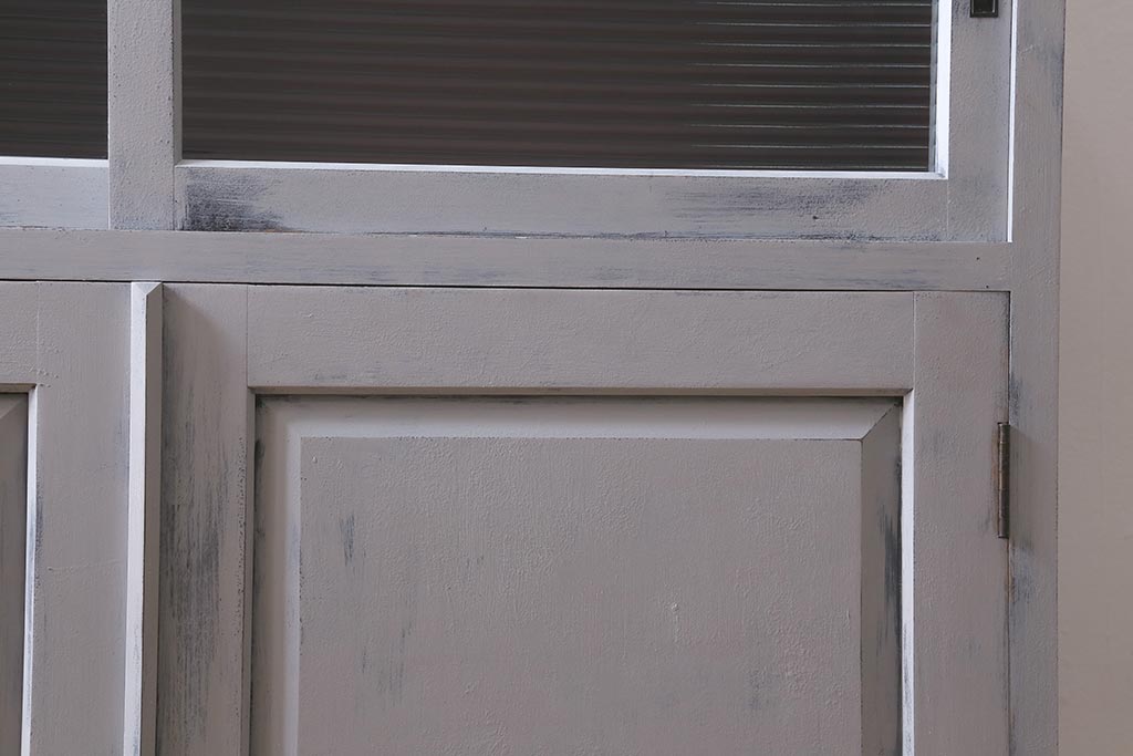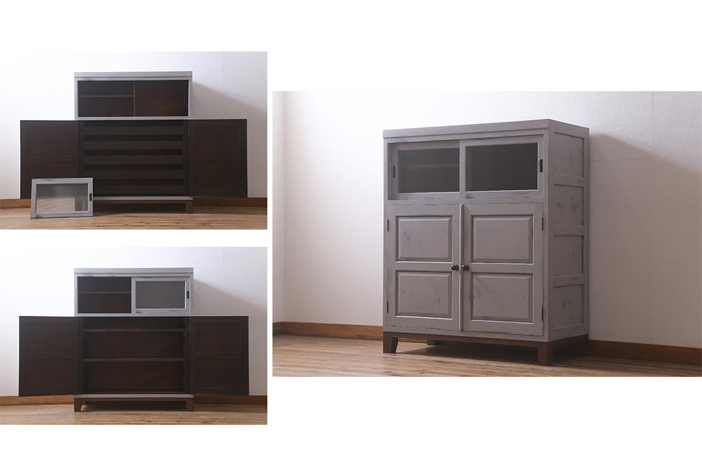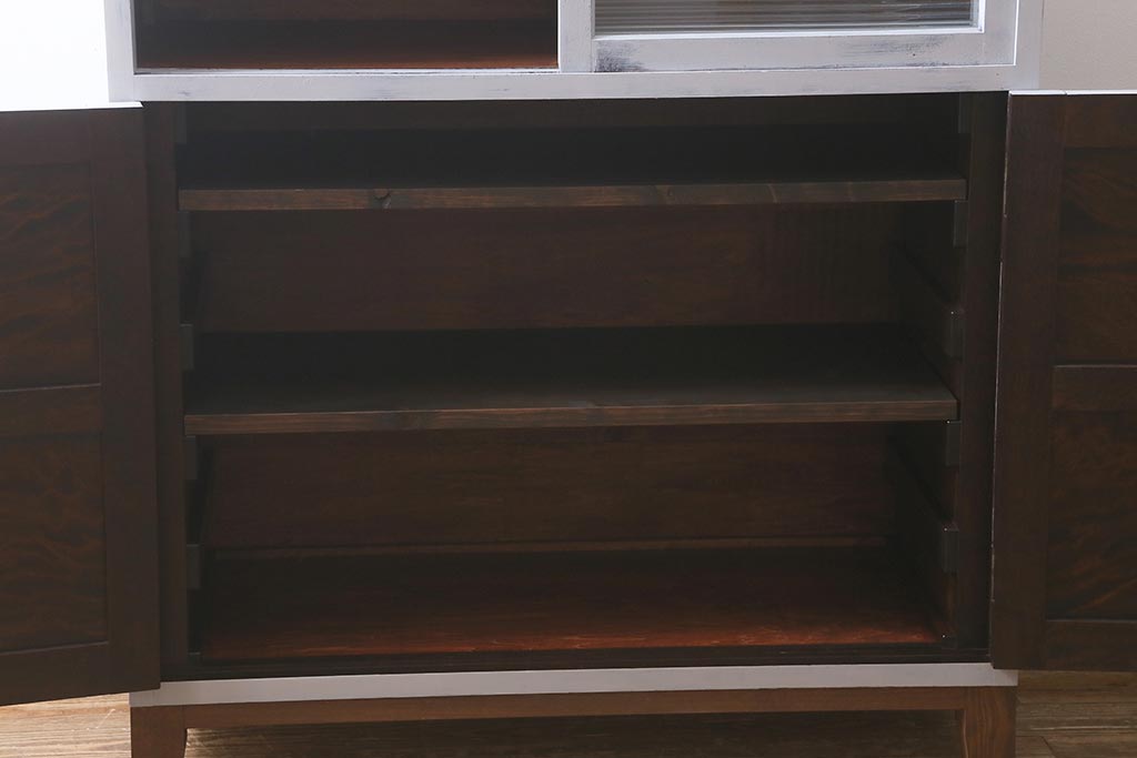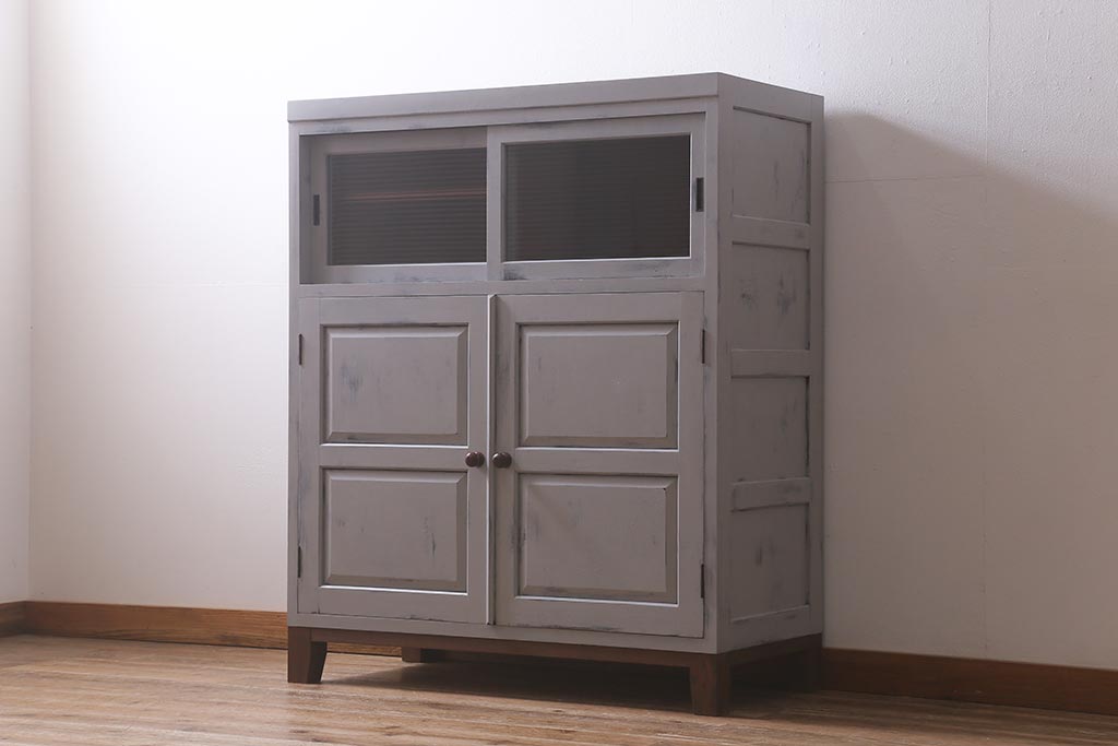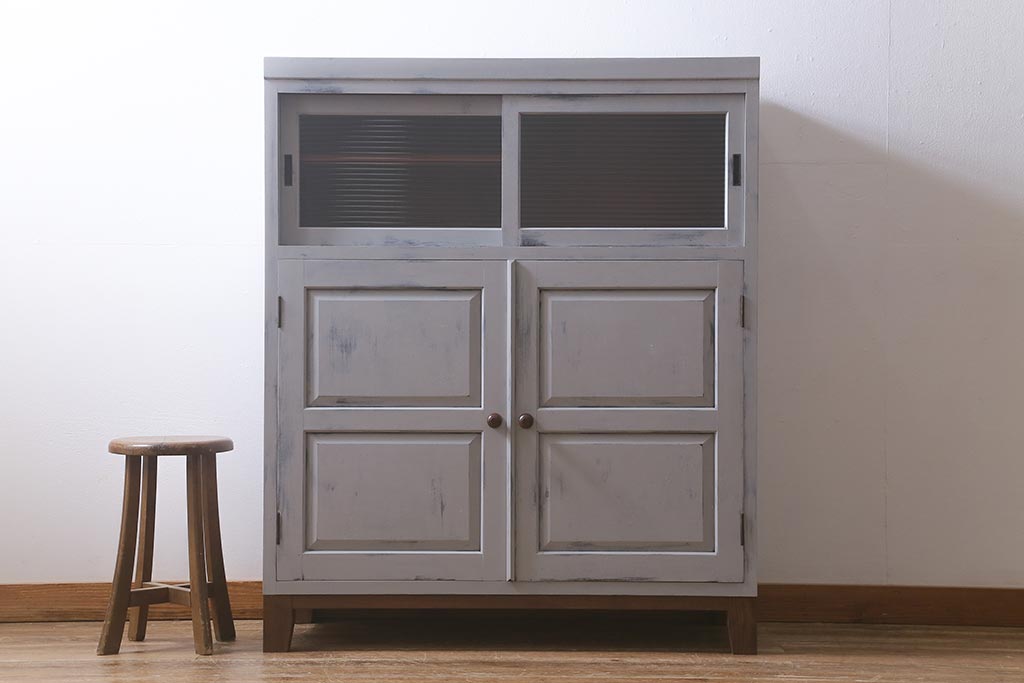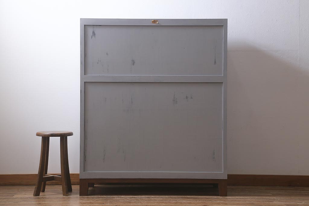ラフジュ工房> 民芸家具 > 中古 当店リメイク家具 松本民芸家具 ペイント モールガラス入り 衣装盆と収納棚の2WAY使いができる脚付キャビネット(和タンス、戸棚、収納棚、着物箪笥)(R-042307)