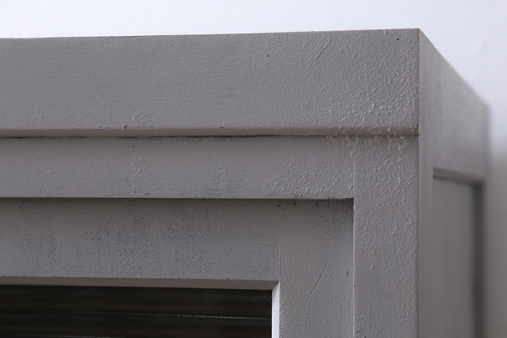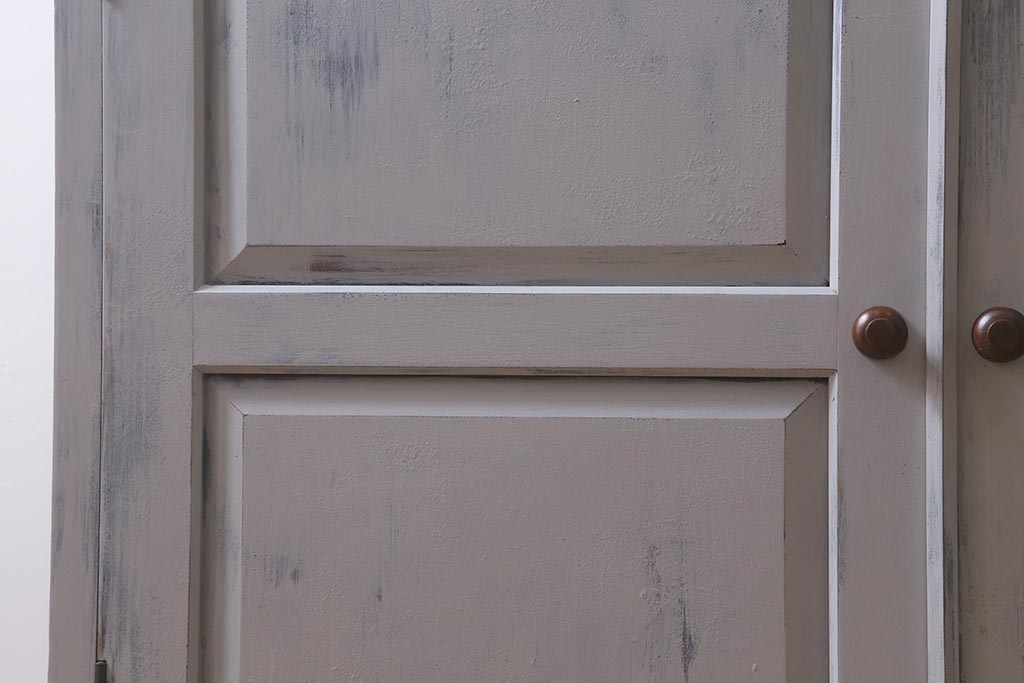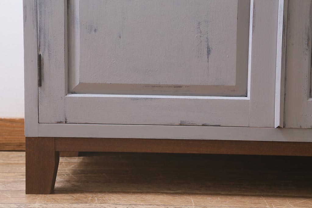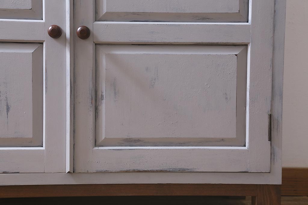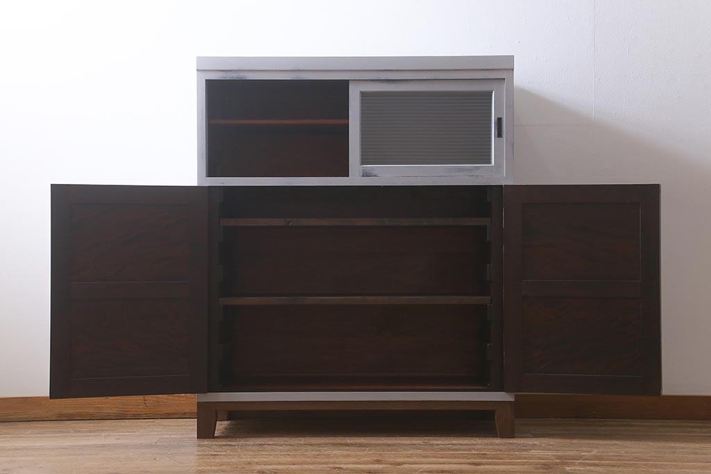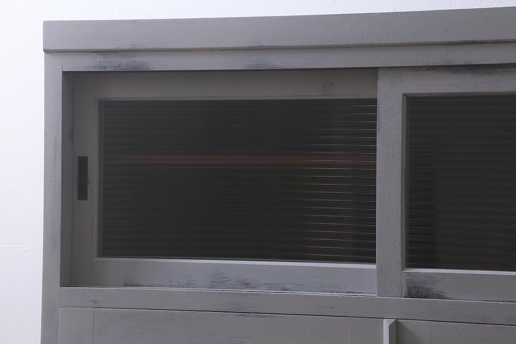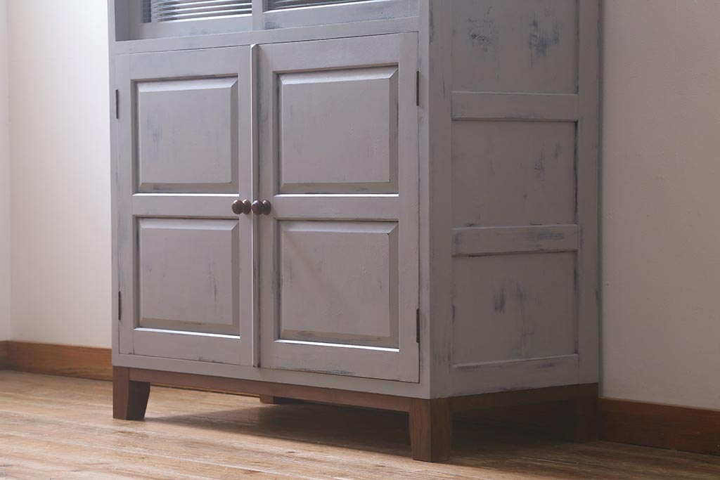ラフジュ工房> 民芸家具 > 中古 当店リメイク家具 松本民芸家具 ペイント モールガラス入り 衣装盆と収納棚の2WAY使いができる脚付キャビネット(和タンス、戸棚、収納棚、着物箪笥)(R-042307)