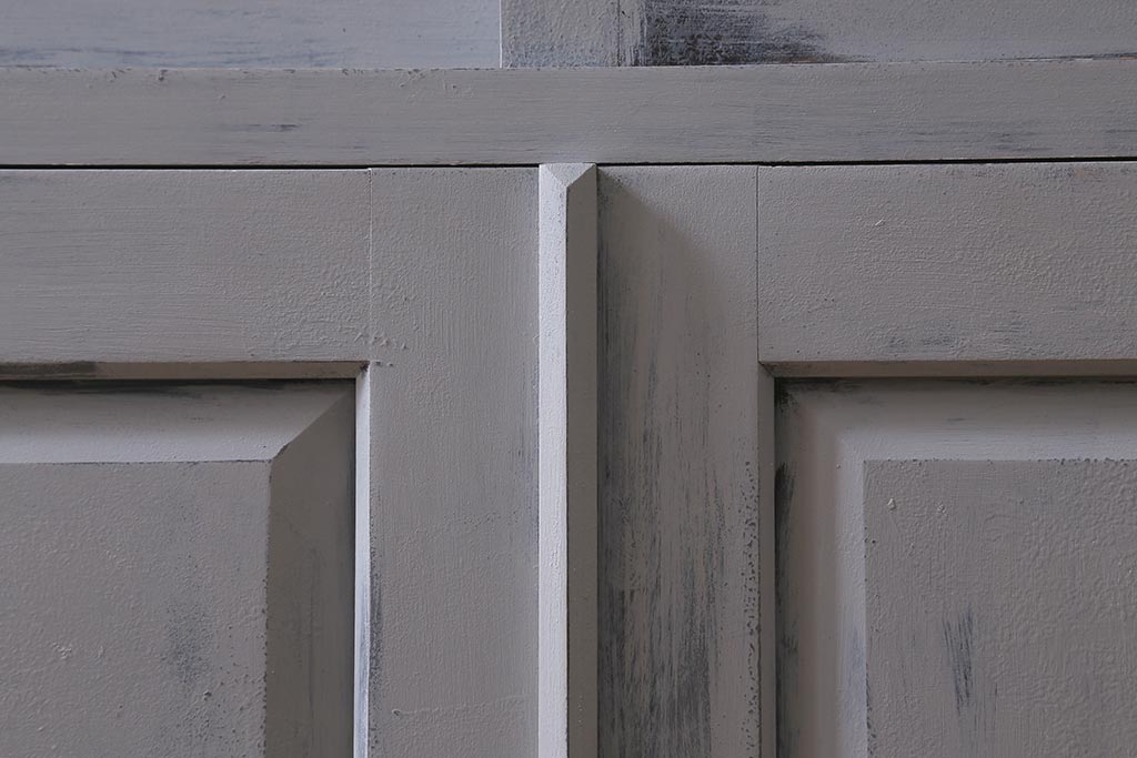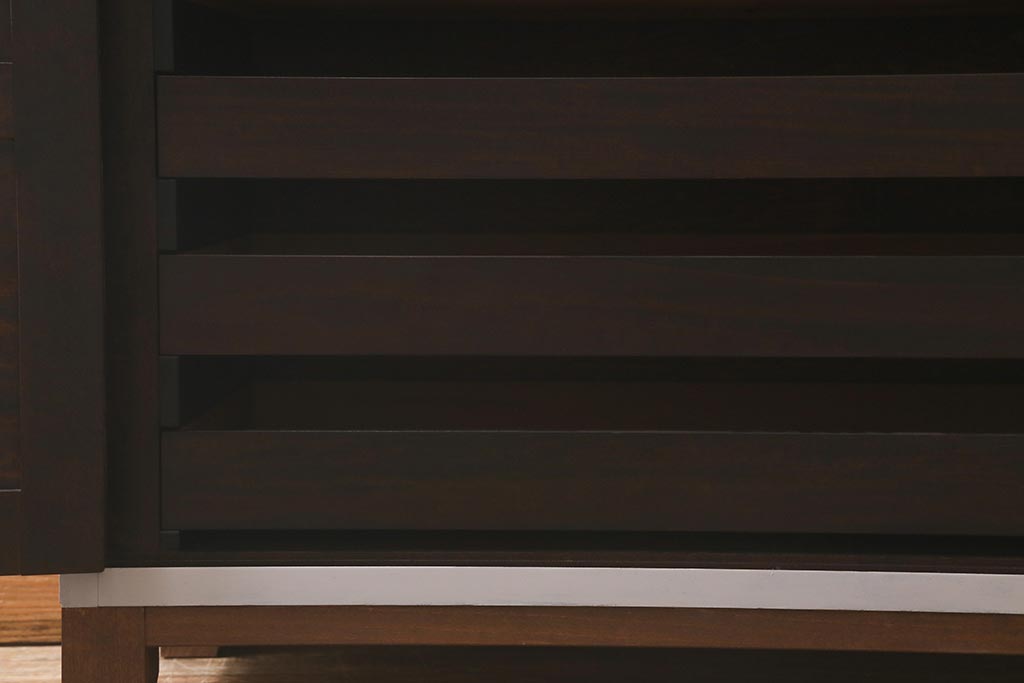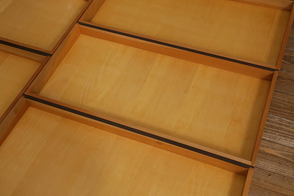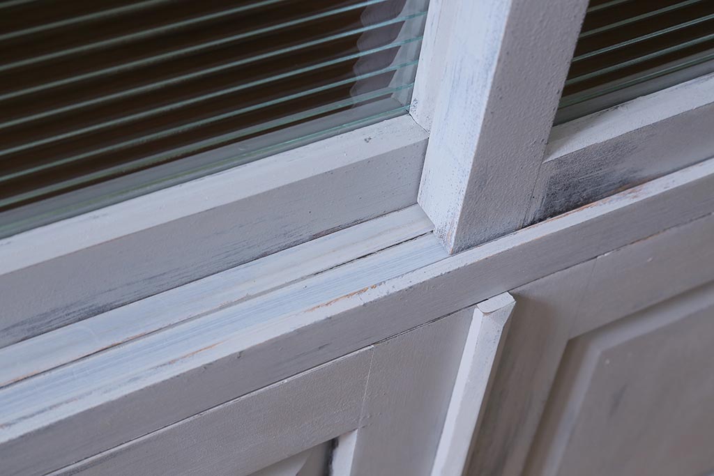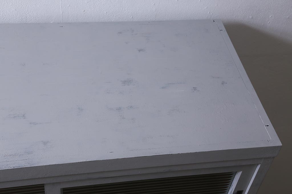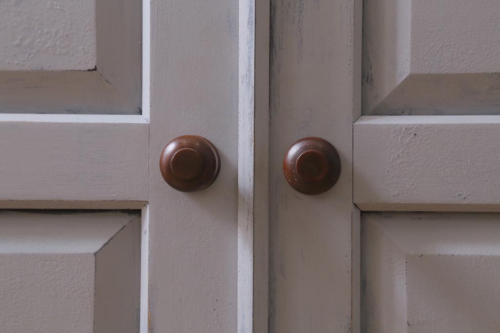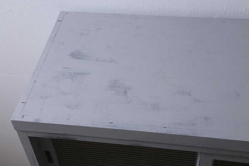 ラフジュ工房> 民芸家具 > 中古 当店リメイク家具 松本民芸家具 ペイント モールガラス入り 衣装盆と収納棚の2WAY使いができる脚付キャビネット(和タンス、戸棚、収納棚、着物箪笥)(R-042307)