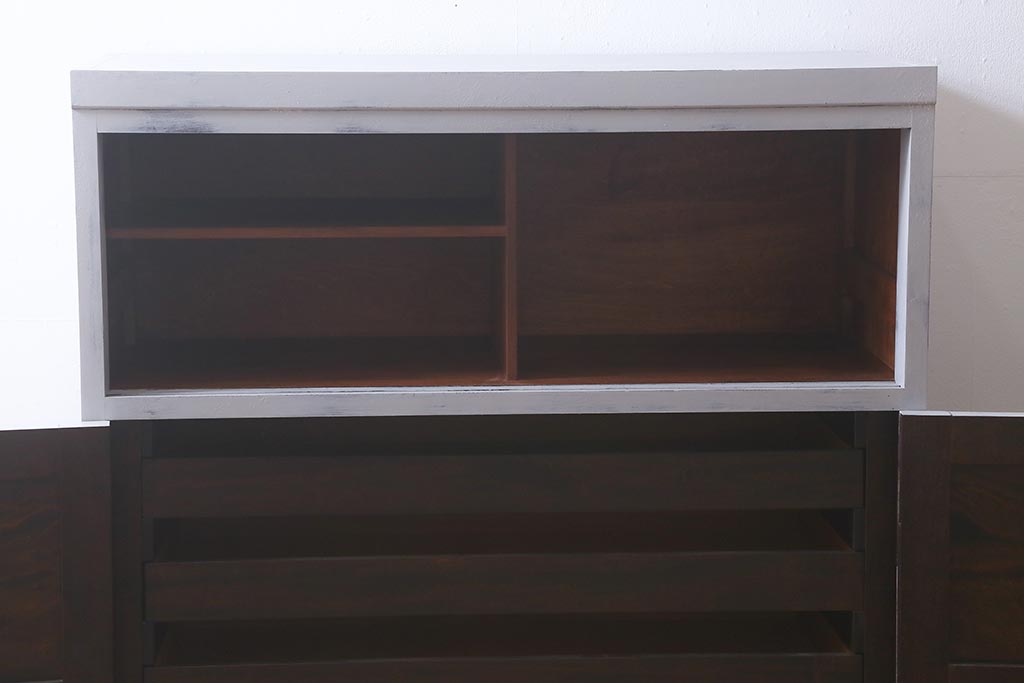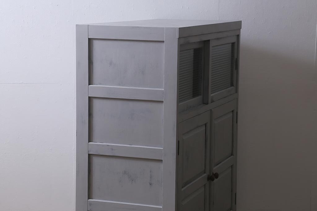 ラフジュ工房> 和箪笥> 衣装箪笥 > 中古 当店リメイク家具 松本民芸家具 ペイント モールガラス入り 衣装盆と収納棚の2WAY使いができる脚付キャビネット(和タンス、戸棚、収納棚、着物箪笥)(R-042307)