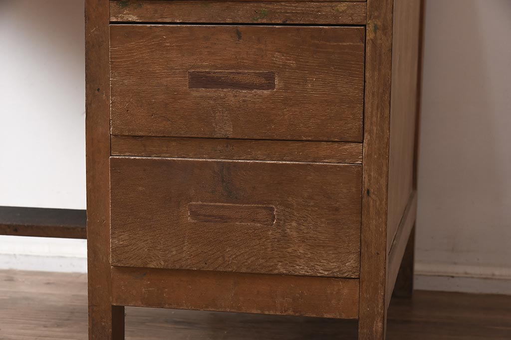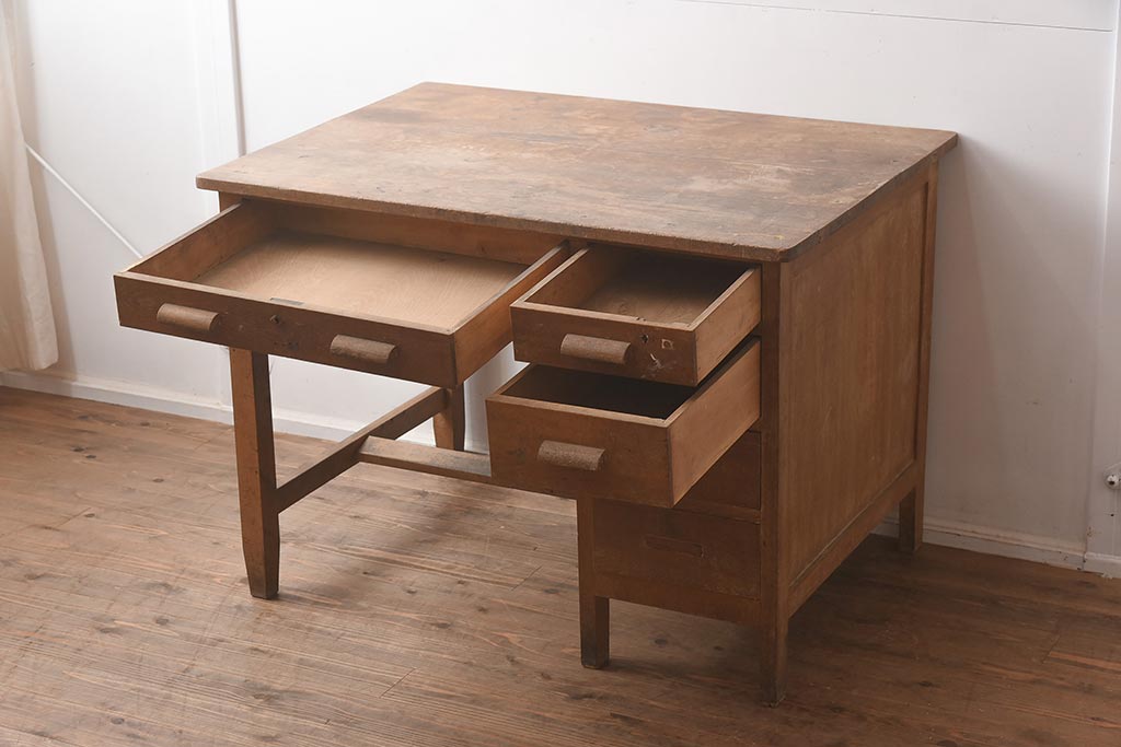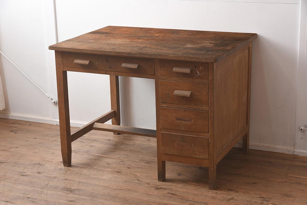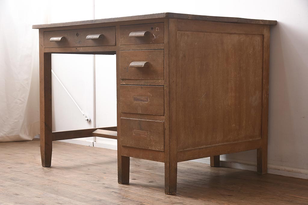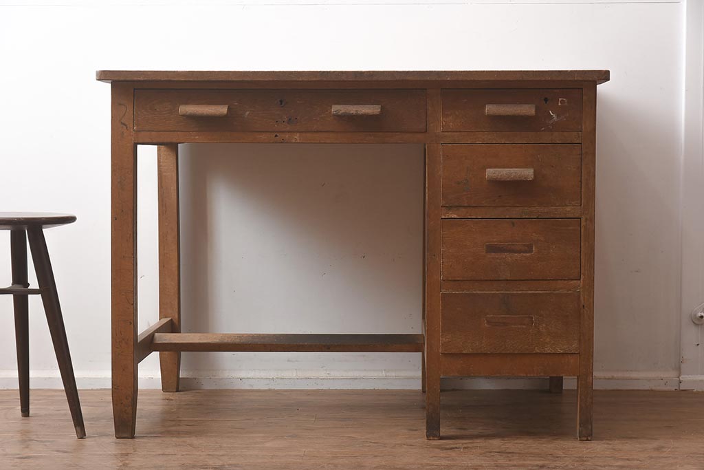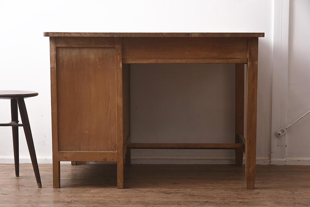 レトロ家具 昭和中期 ナラ材 ナチュラルスタイルにも合う片袖机(ワークデスク、勉強机)(R-042331)です。