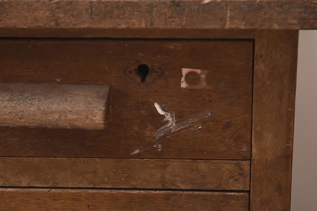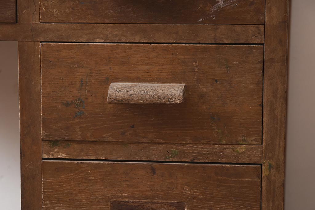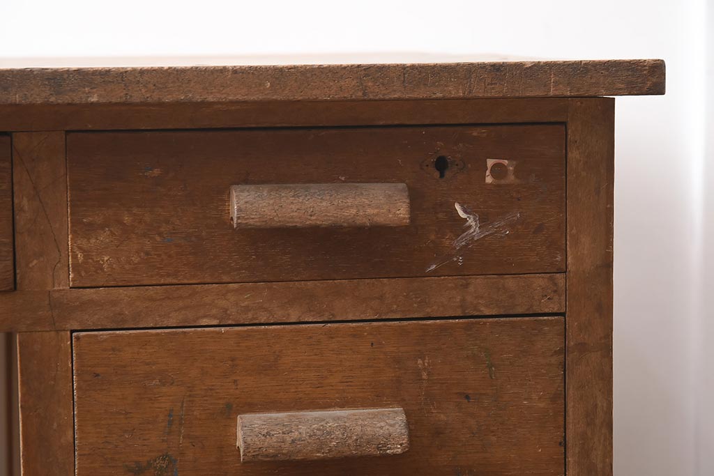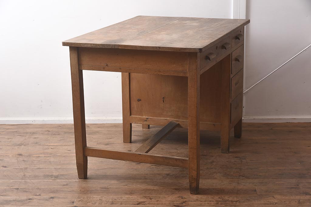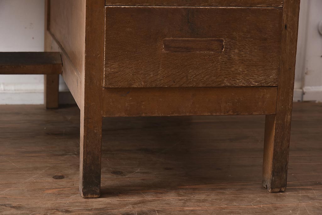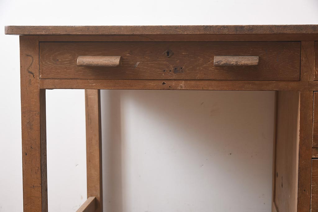レトロ家具 昭和中期 ナラ材 ナチュラルスタイルにも合う片袖机(ワークデスク、勉強机)(R-042331)です。