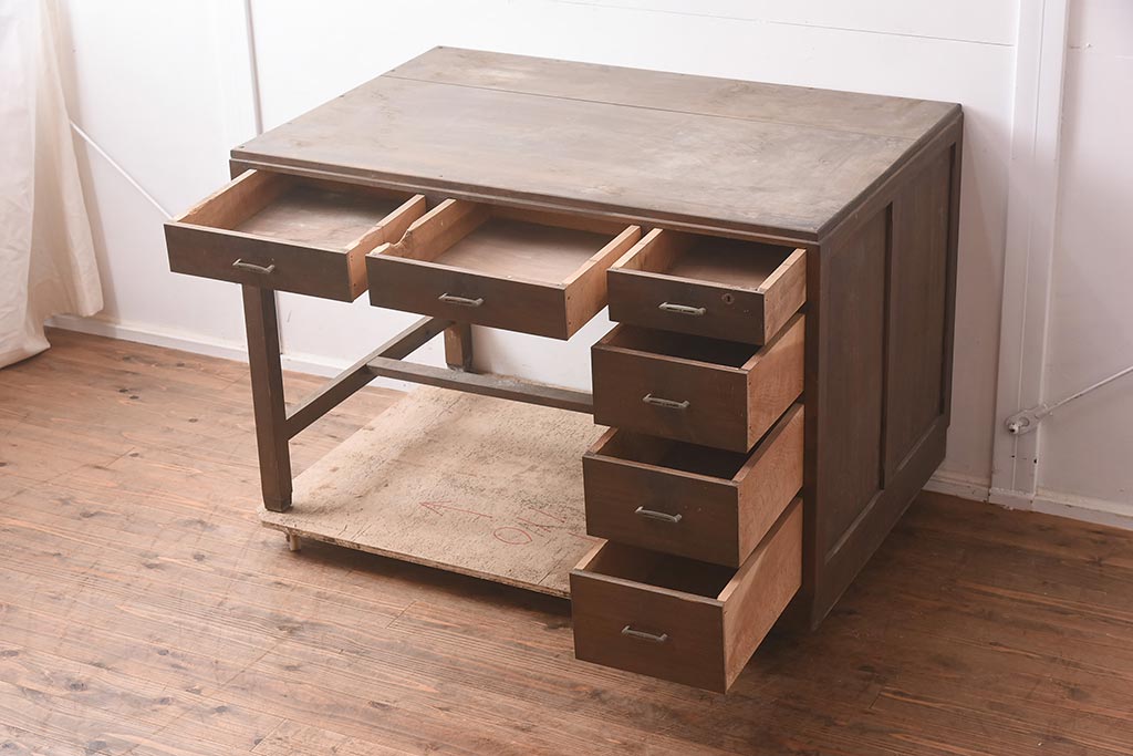 ラフジュ工房> デスク> 片袖机・両袖机 > レトロ家具 昭和中期 栗材 ノスタルジックな雰囲気が魅力の片袖机(ワークデスク、在宅ワーク、在宅用、勉強机)(R-042332)