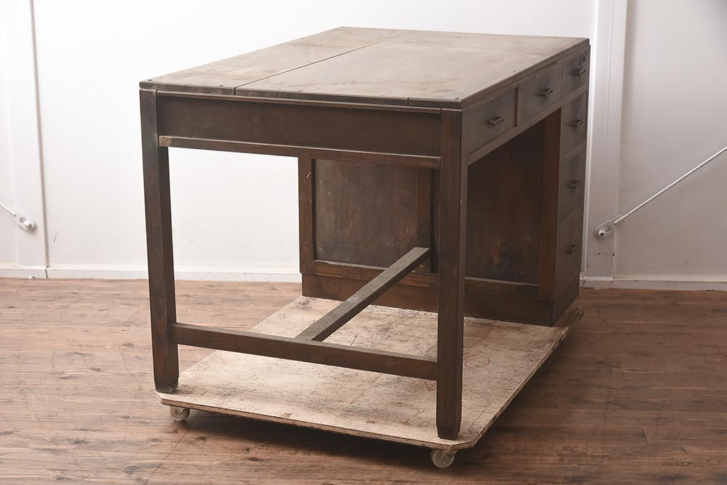 ラフジュ工房> デスク> ワークデスク > レトロ家具 昭和中期 栗材 ノスタルジックな雰囲気が魅力の片袖机(ワークデスク、在宅ワーク、在宅用、勉強机)(R-042332)