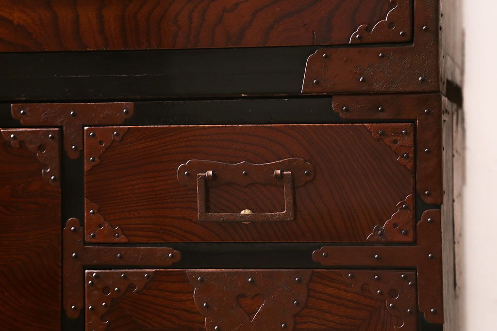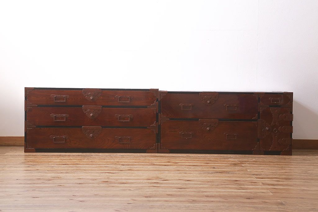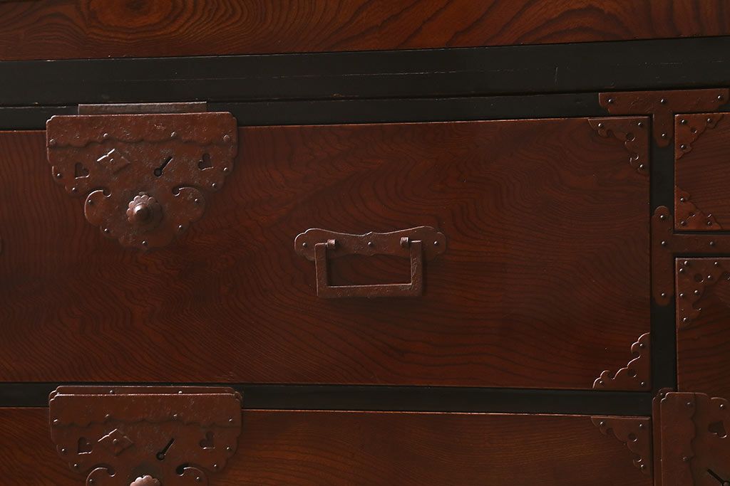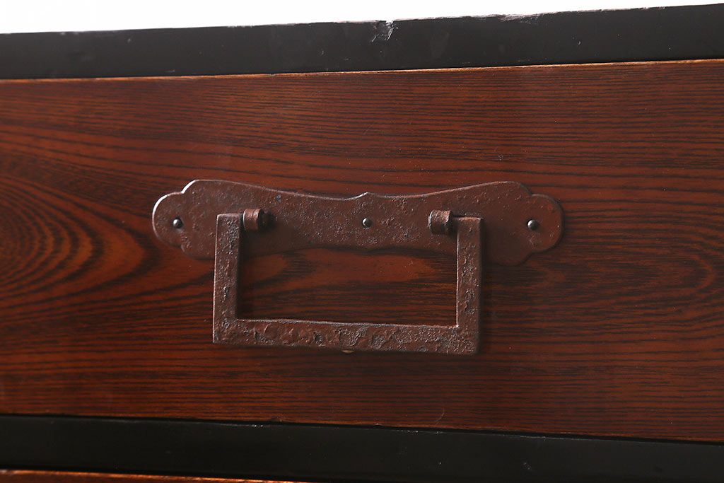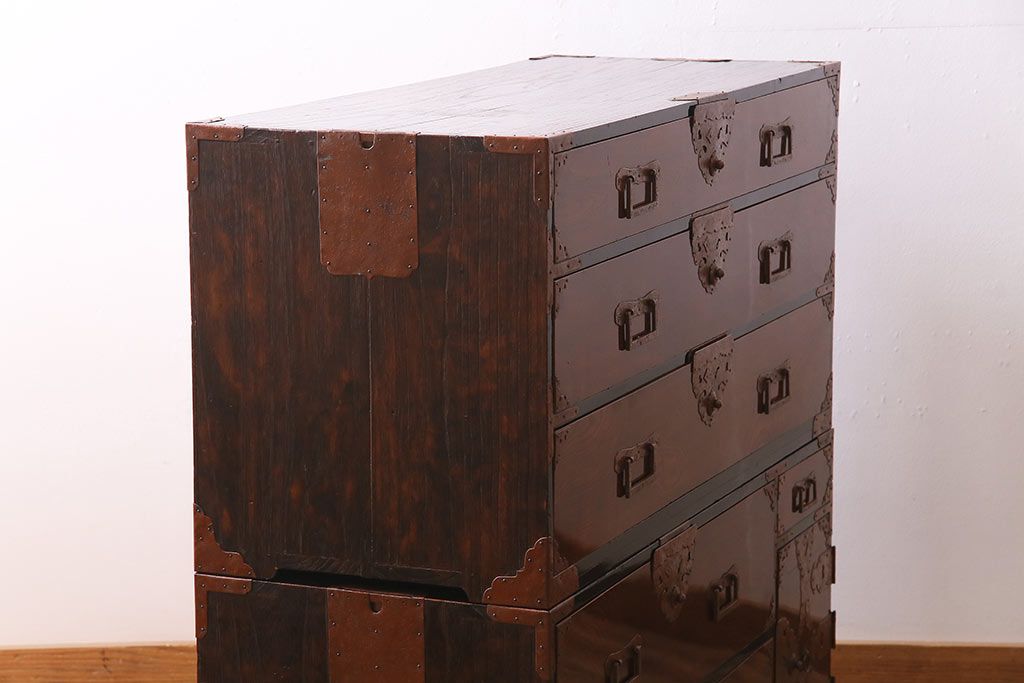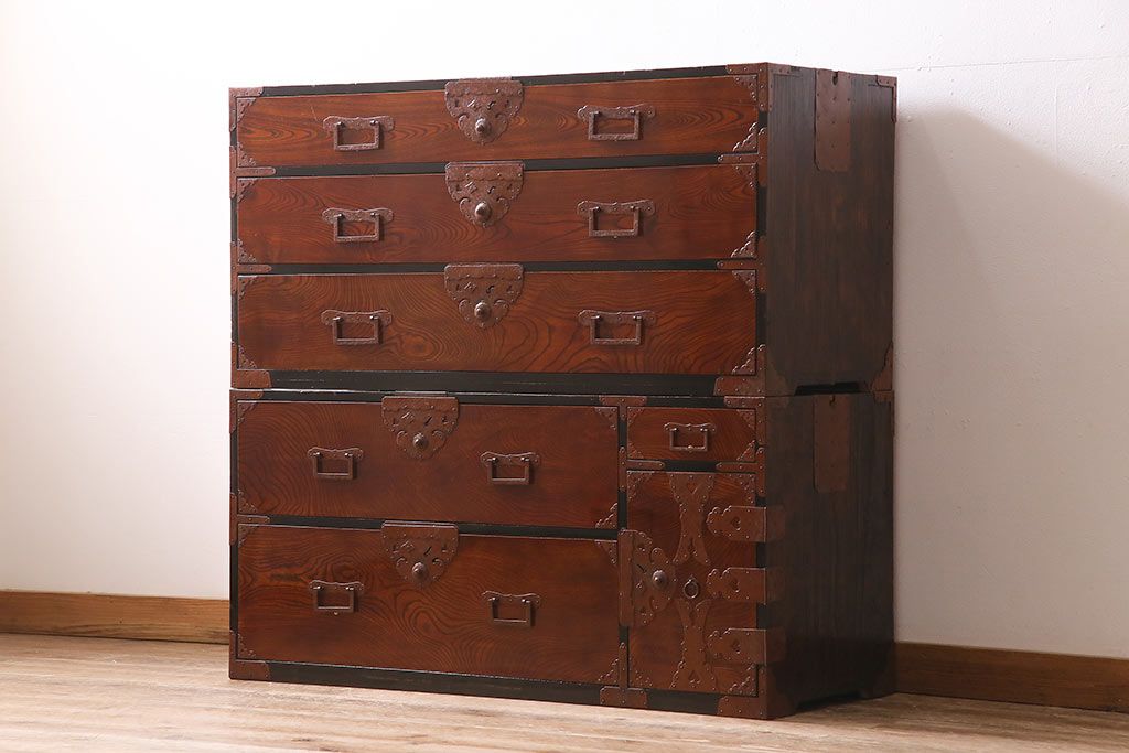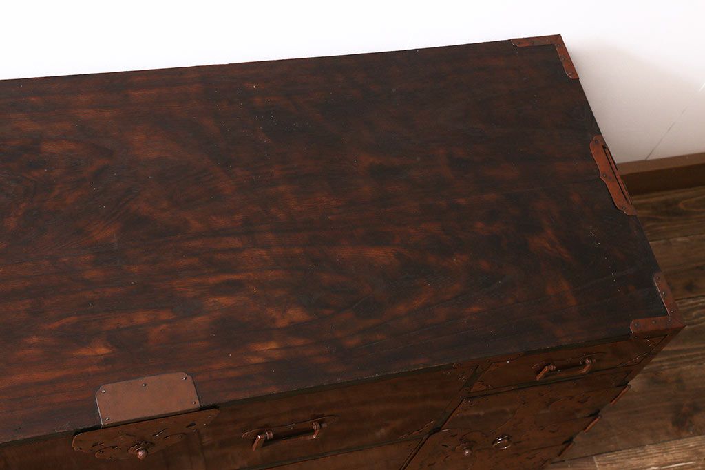 アンティーク家具 和製アンティーク 明治大正期 五丁引き 前面ケヤキ・中桐材 漆塗りが美しい秋田箪笥(重ね箪笥、衣装箪笥、引き出し)(R-042290)です。