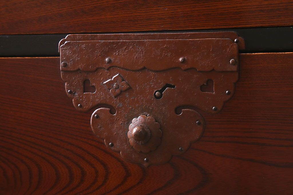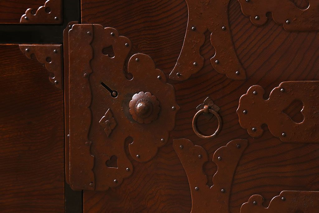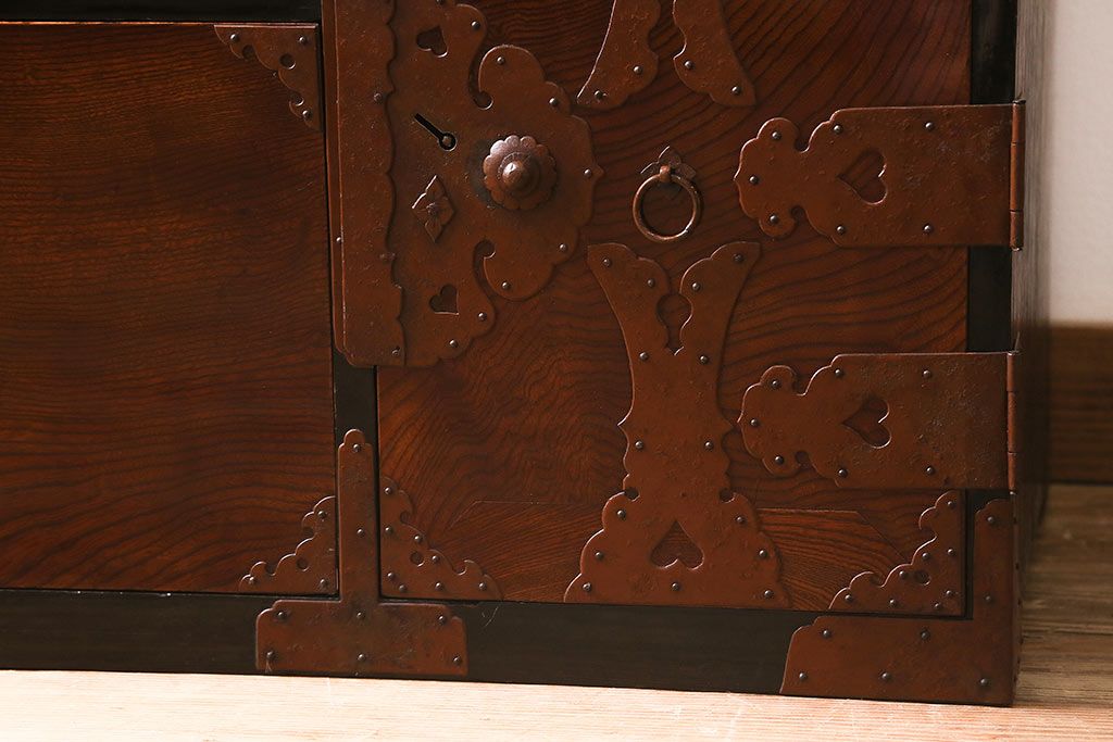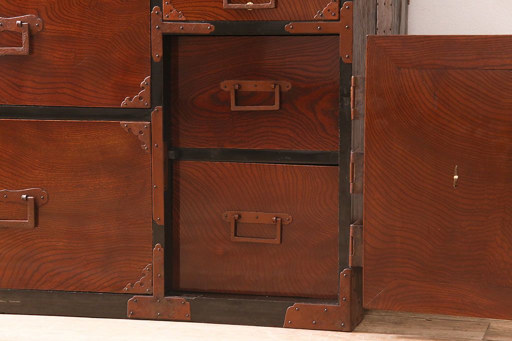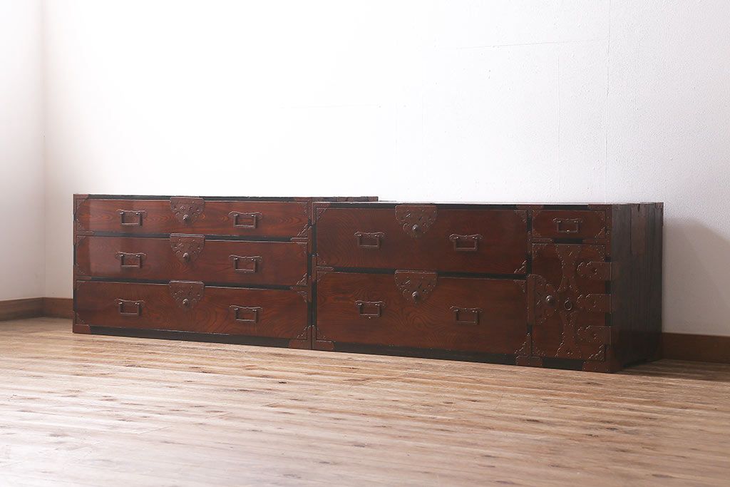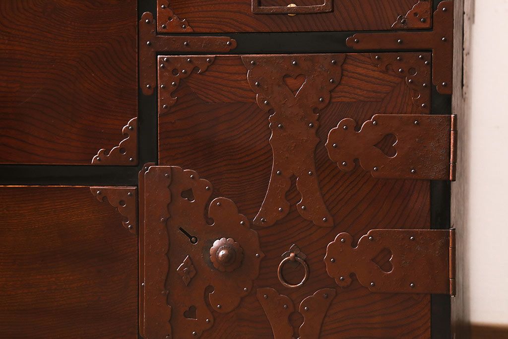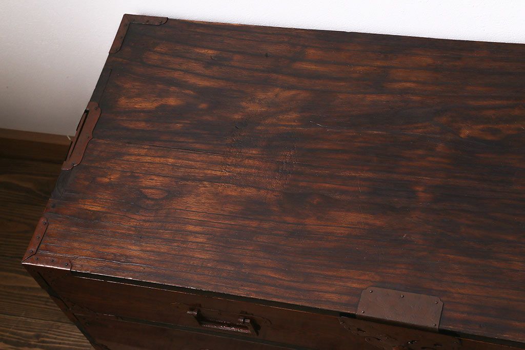アンティーク家具 和製アンティーク 明治大正期 五丁引き 前面ケヤキ・中桐材 漆塗りが美しい秋田箪笥(重ね箪笥、衣装箪笥、引き出し)(R-042290)です。