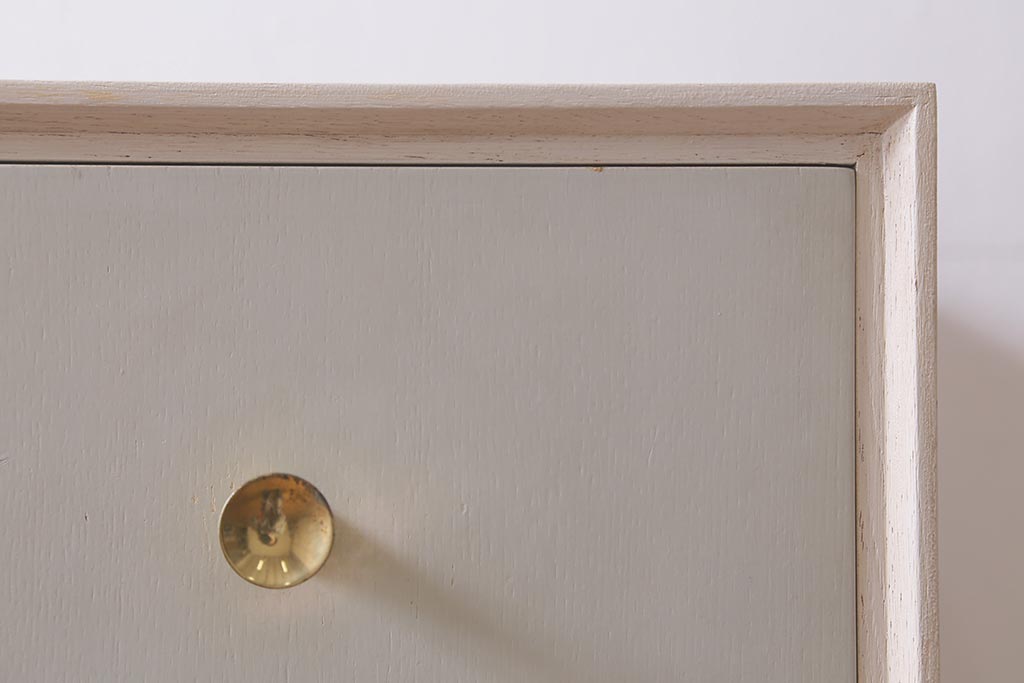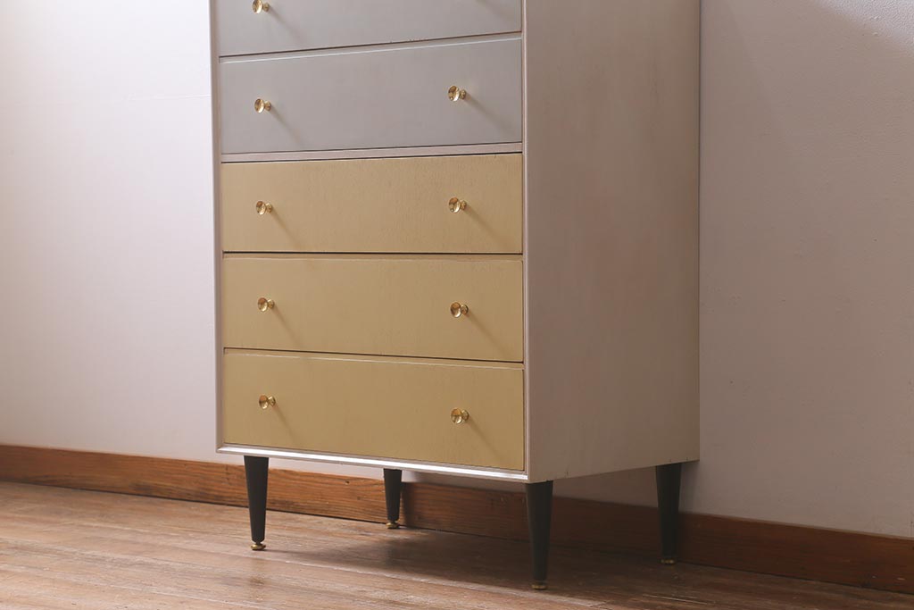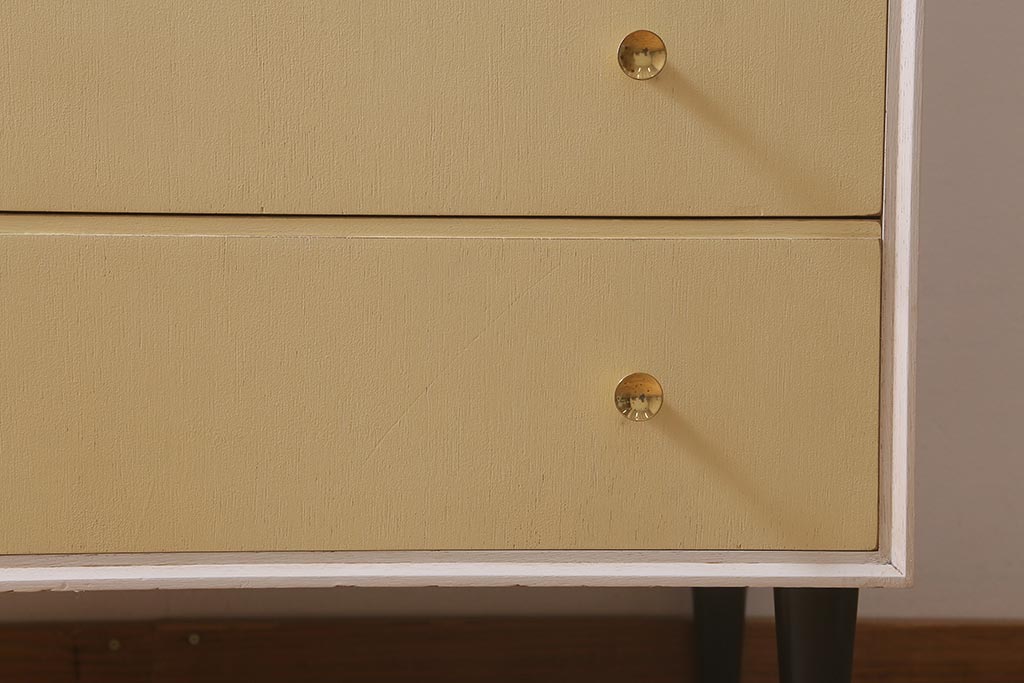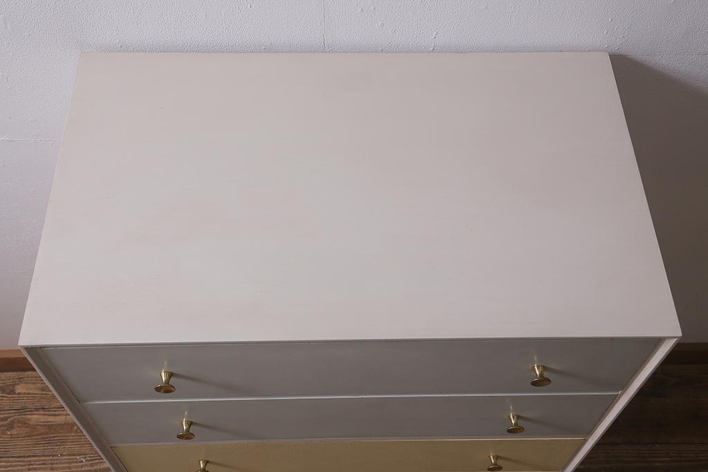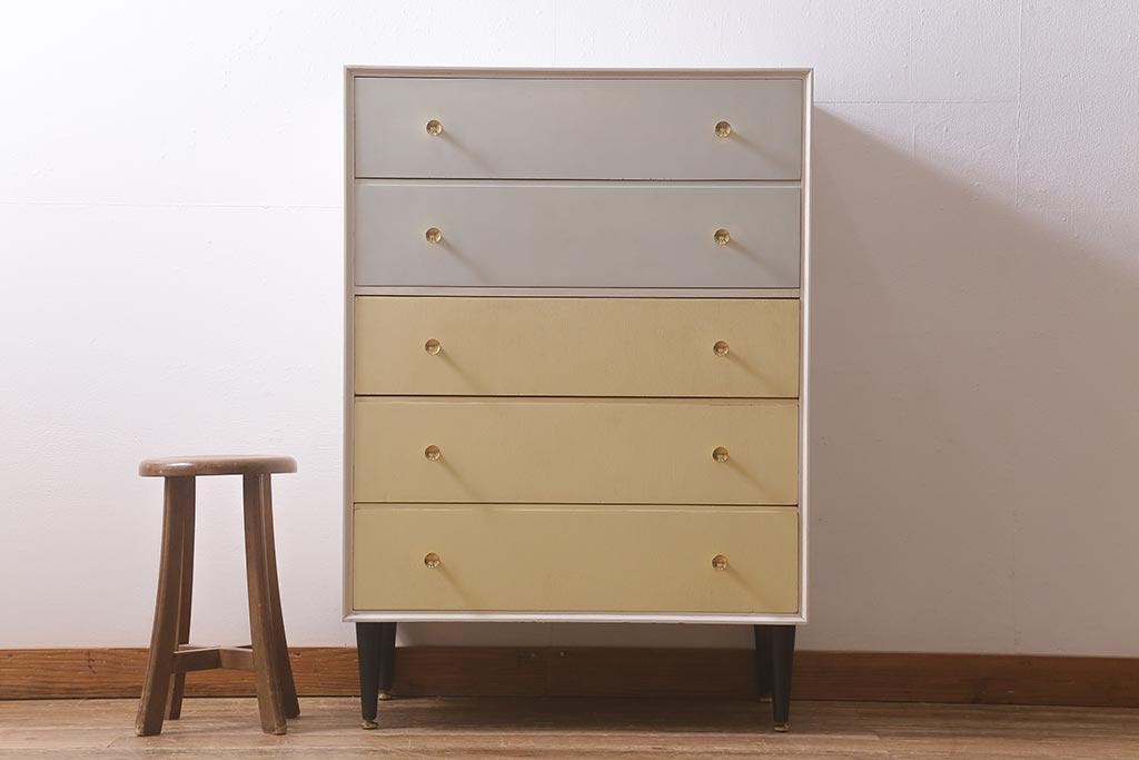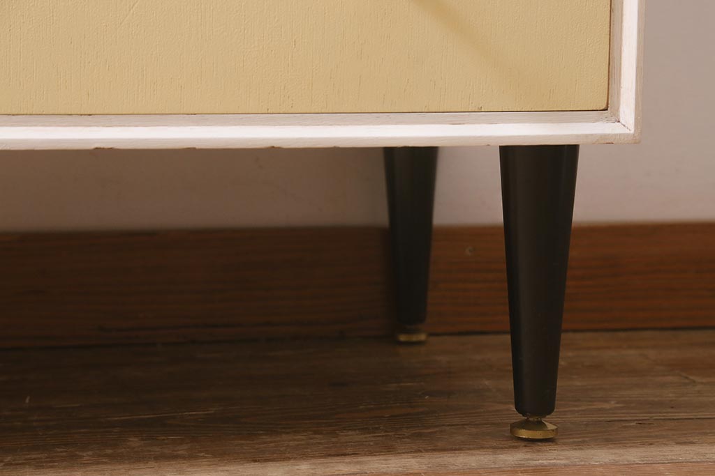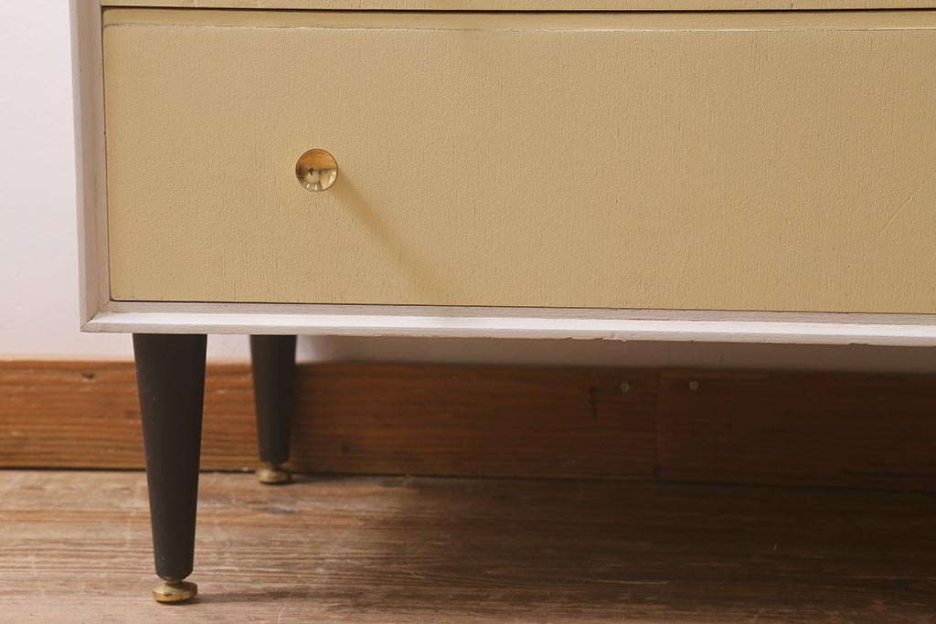 ヴィンテージ家具 北欧ビンテージ MEREDEW社製 淡いペイントがおしゃれな脚付きチェスト(引き出し)(R-042302)
