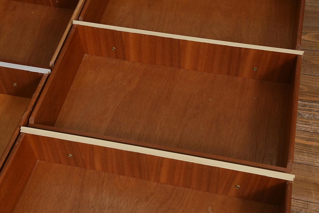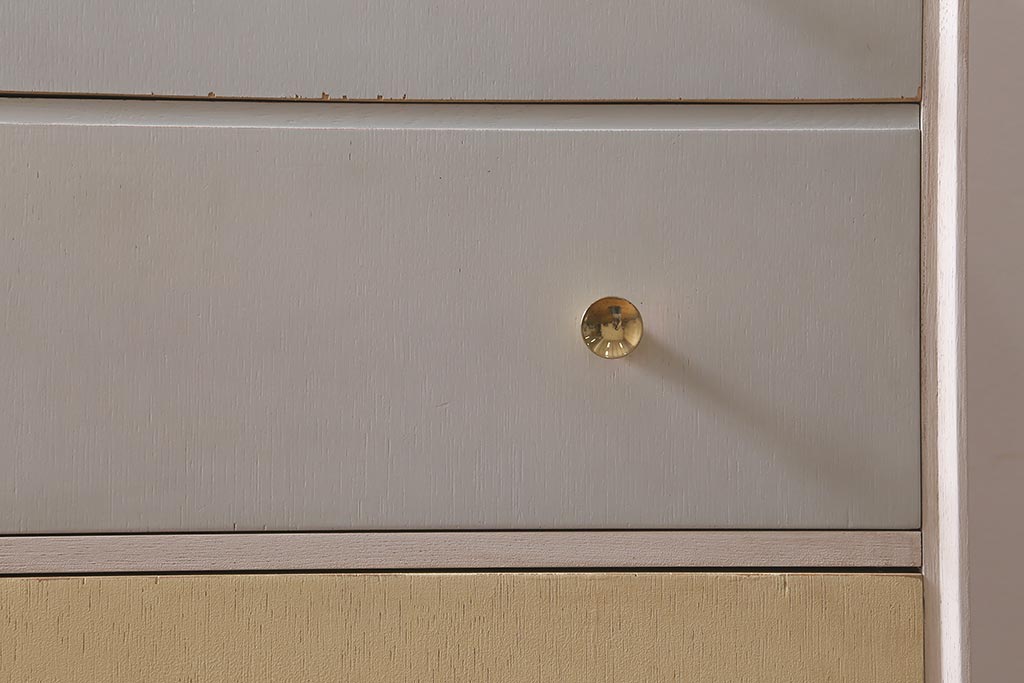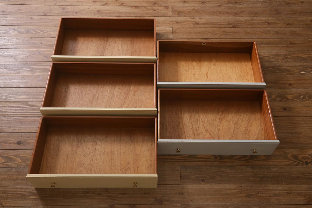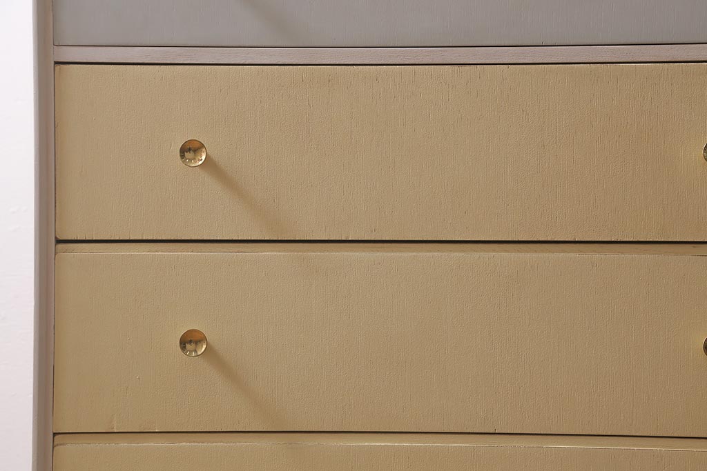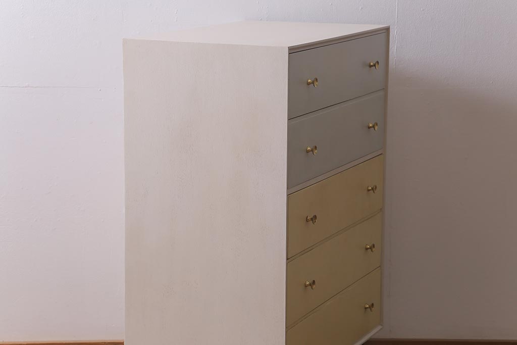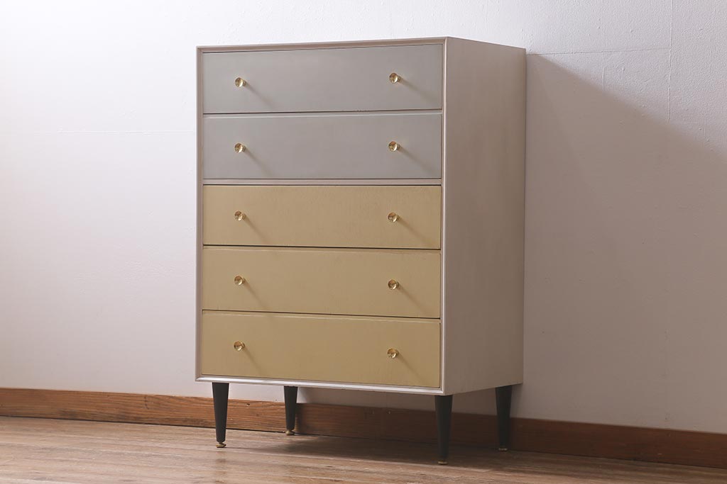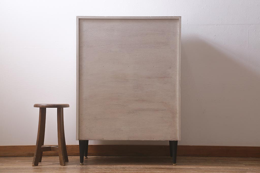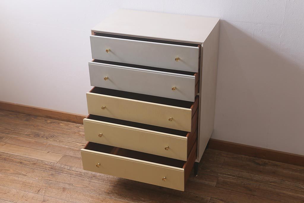 ヴィンテージ家具 北欧ビンテージ MEREDEW社製 淡いペイントがおしゃれな脚付きチェスト(引き出し)(R-042302)