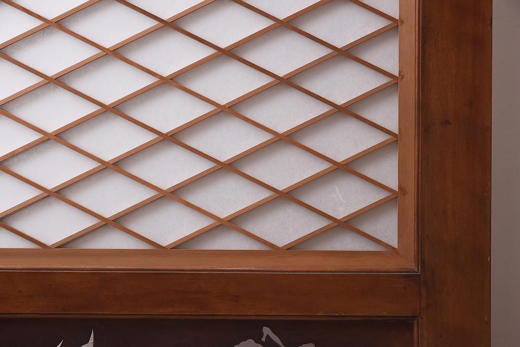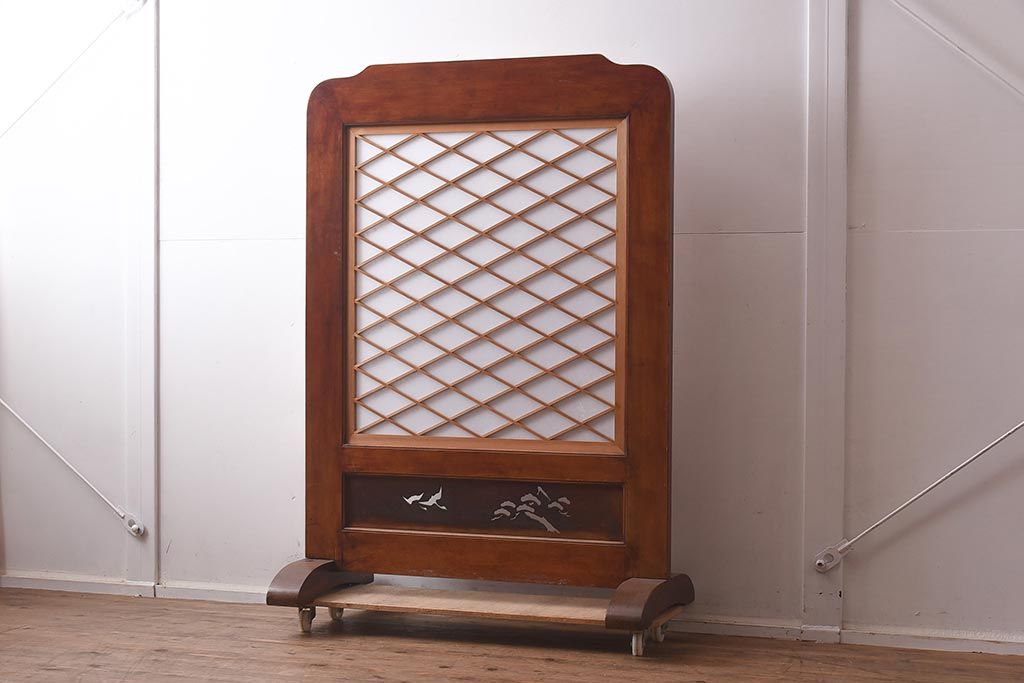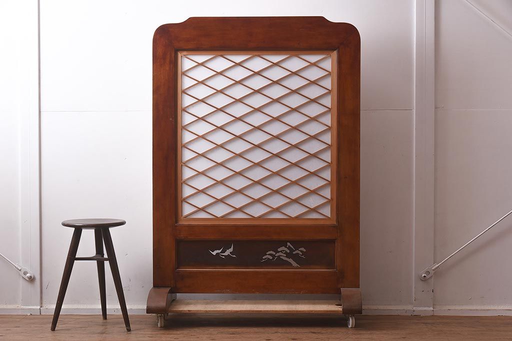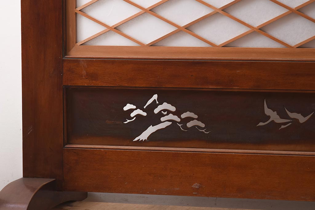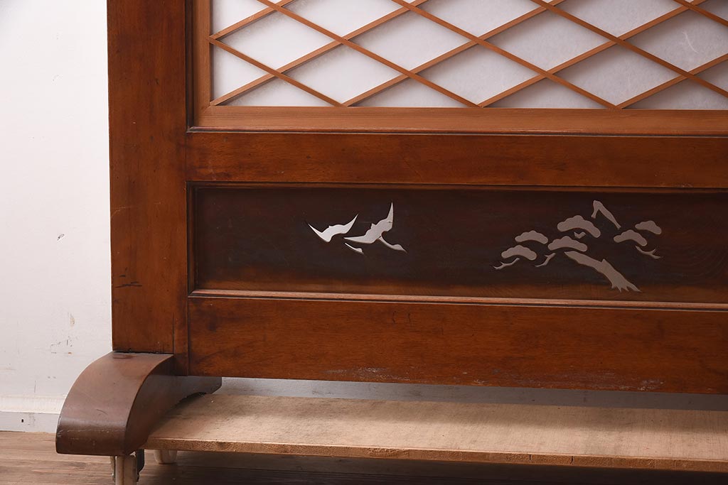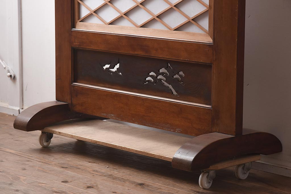ビンテージ家具 障子入り 鶴松の透かしが和の雰囲気漂う衝立(つい立て、パーテーション)(R-042479)