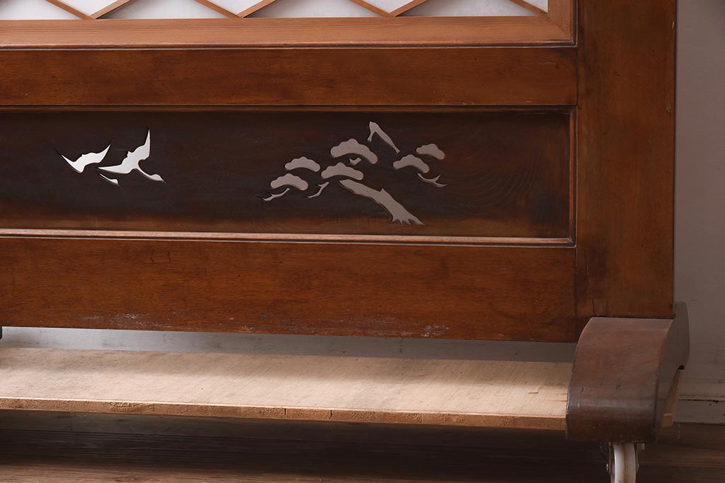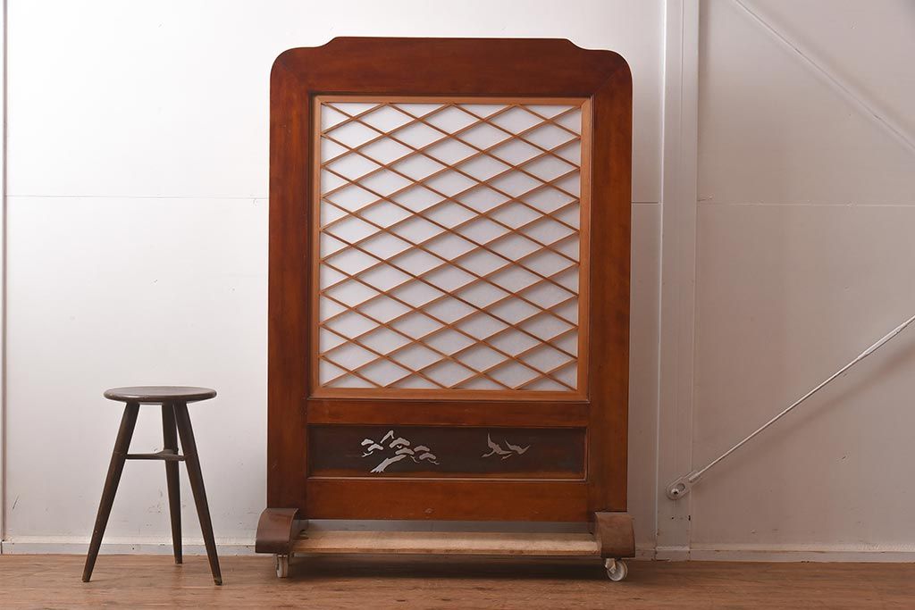 ビンテージ家具 障子入り 鶴松の透かしが和の雰囲気漂う衝立(つい立て、パーテーション)(R-042479)です。