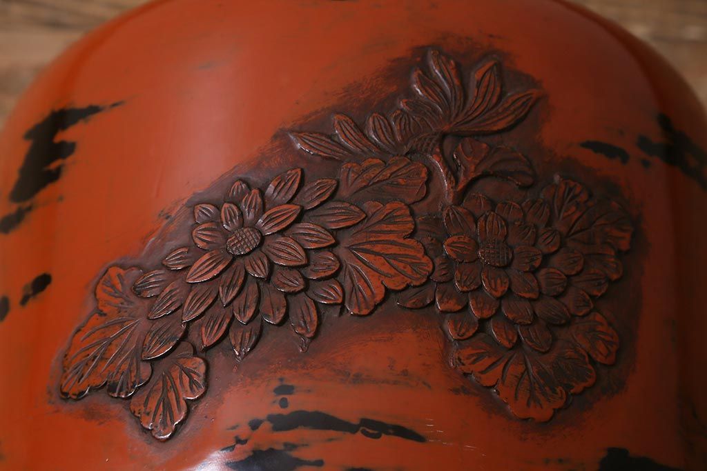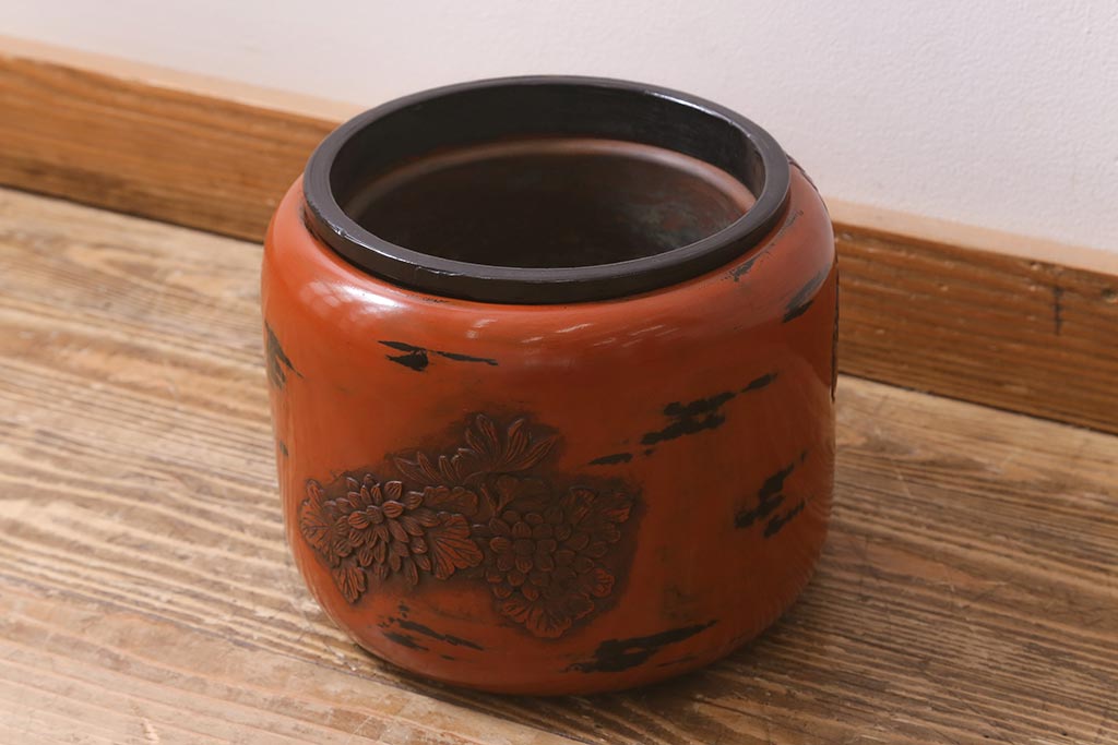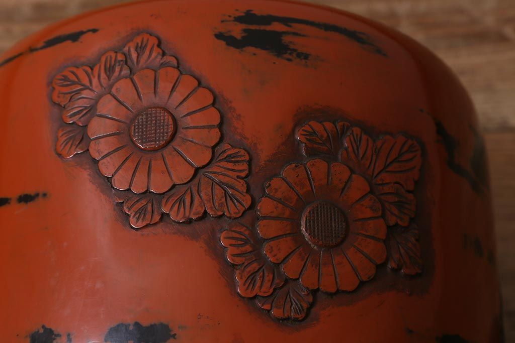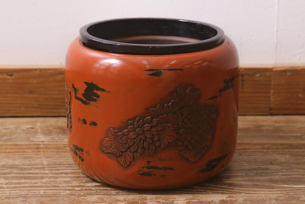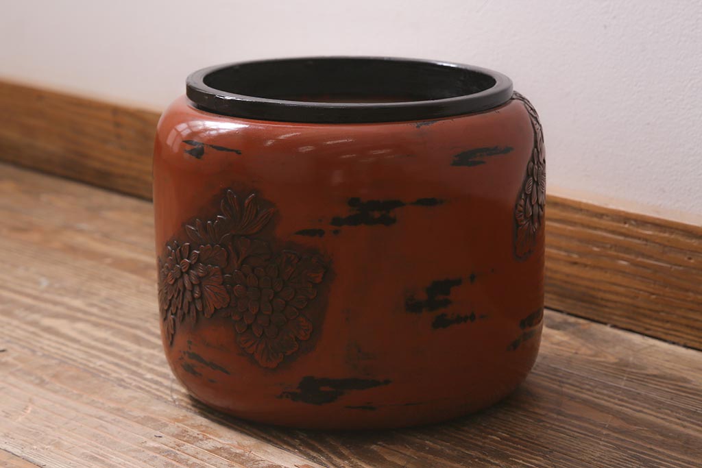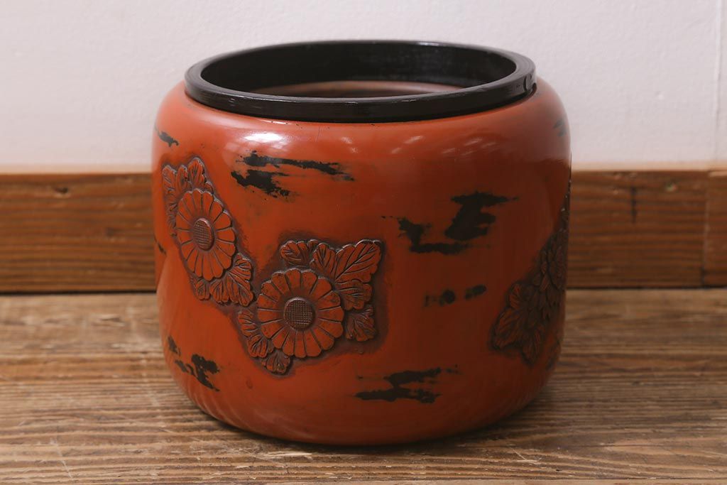アンティーク雑貨 時代物 菊の図 古い鎌倉彫根来塗火鉢(てあぶり)(R-042066)です。