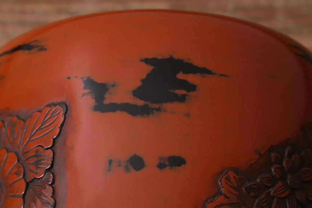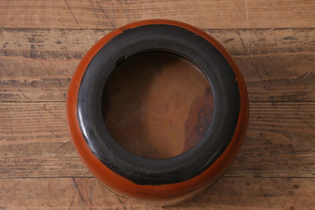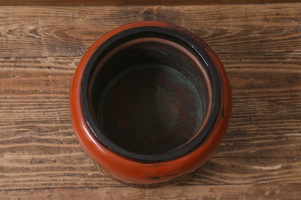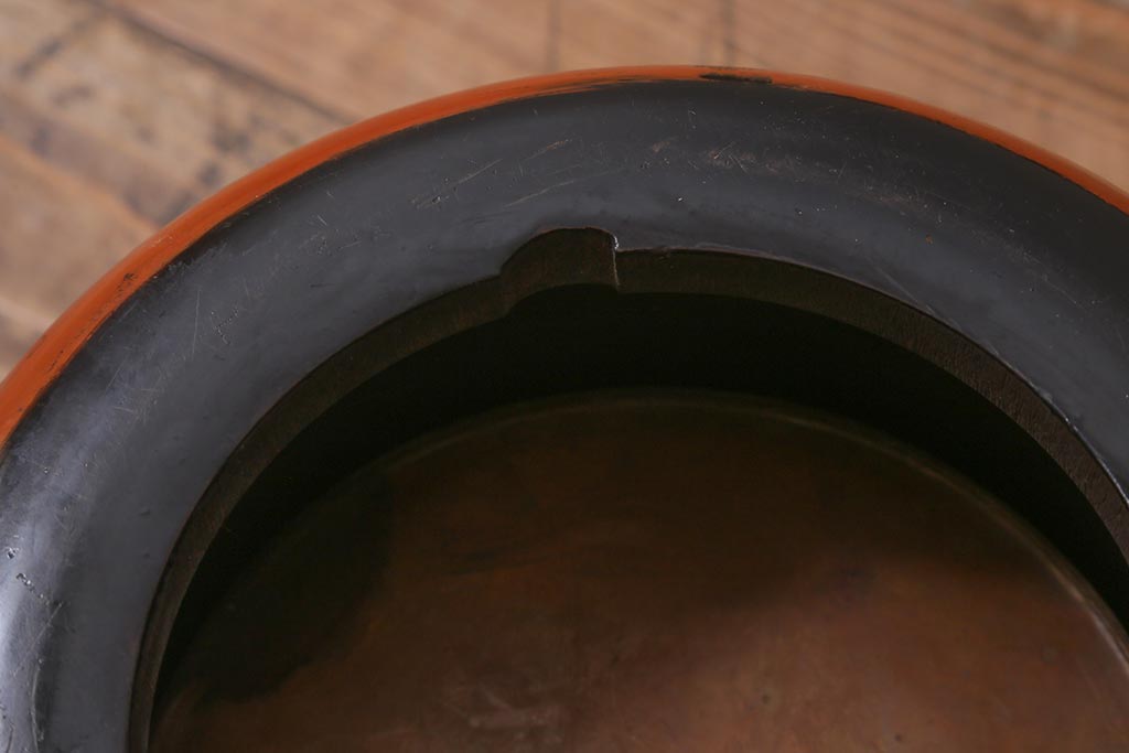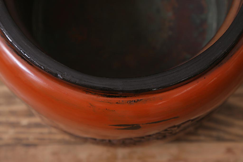 アンティーク雑貨 時代物 菊の図 古い鎌倉彫根来塗火鉢(てあぶり)(R-042066)