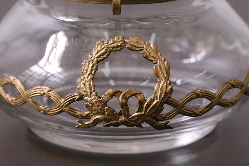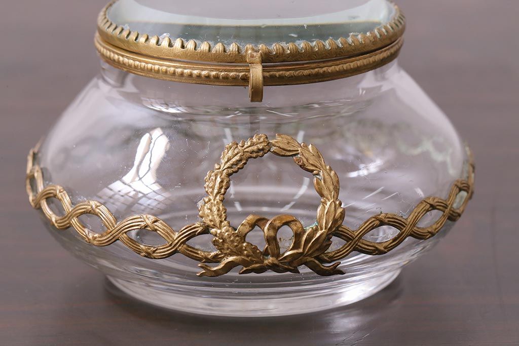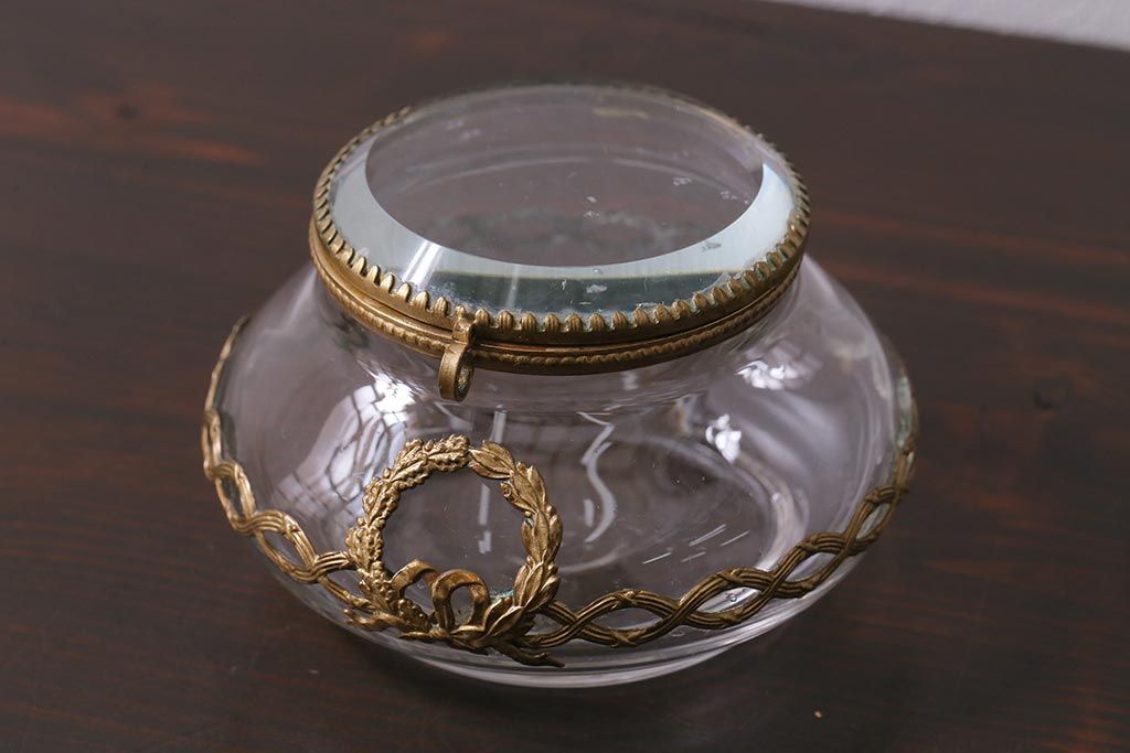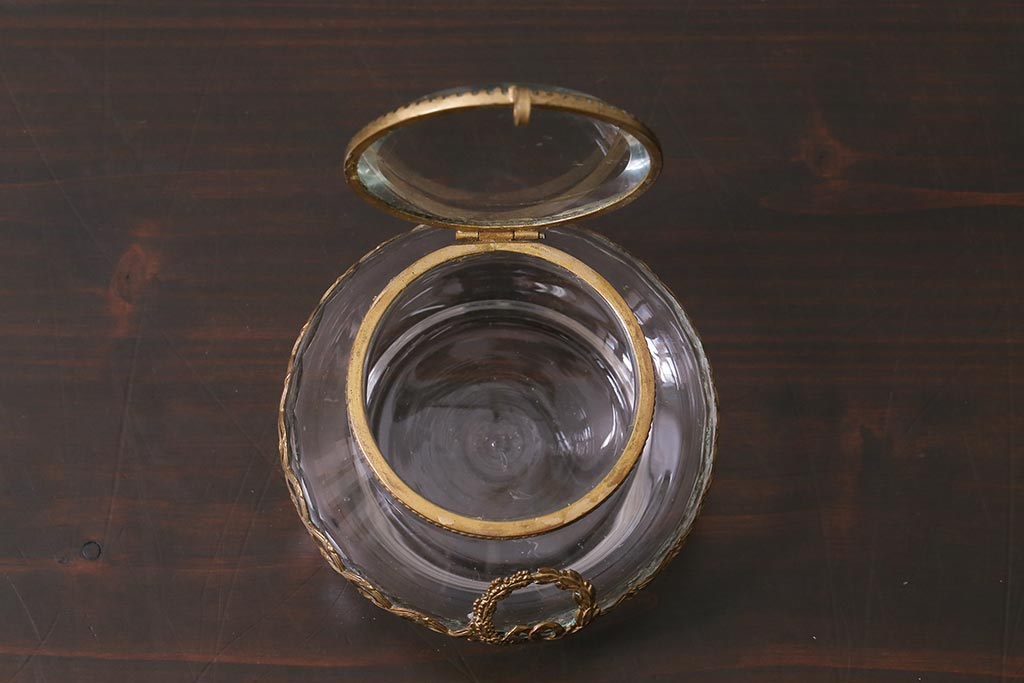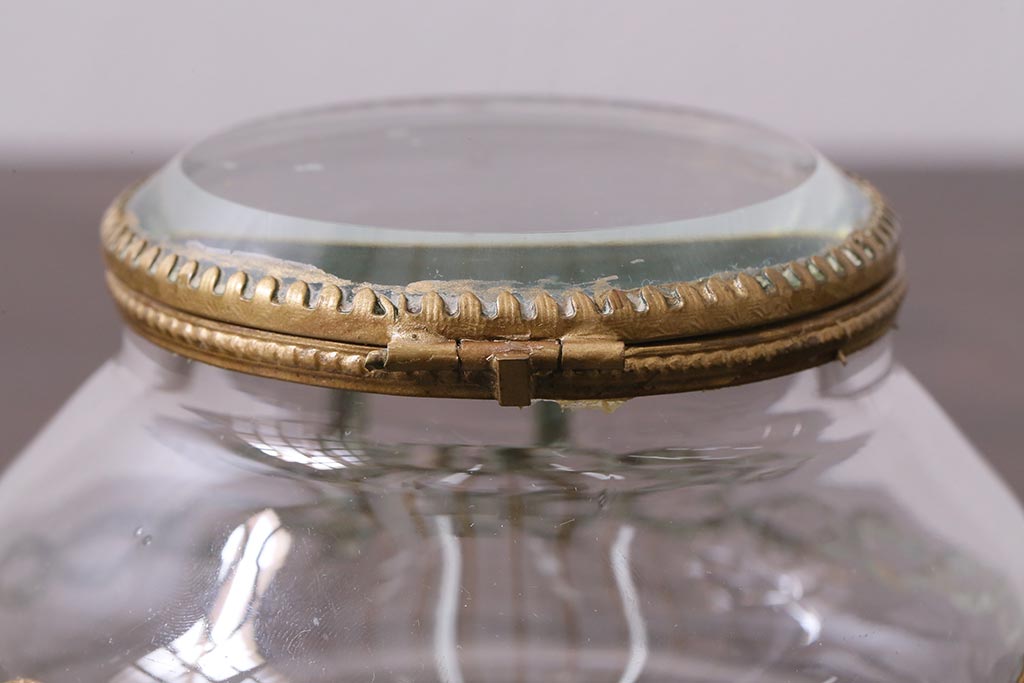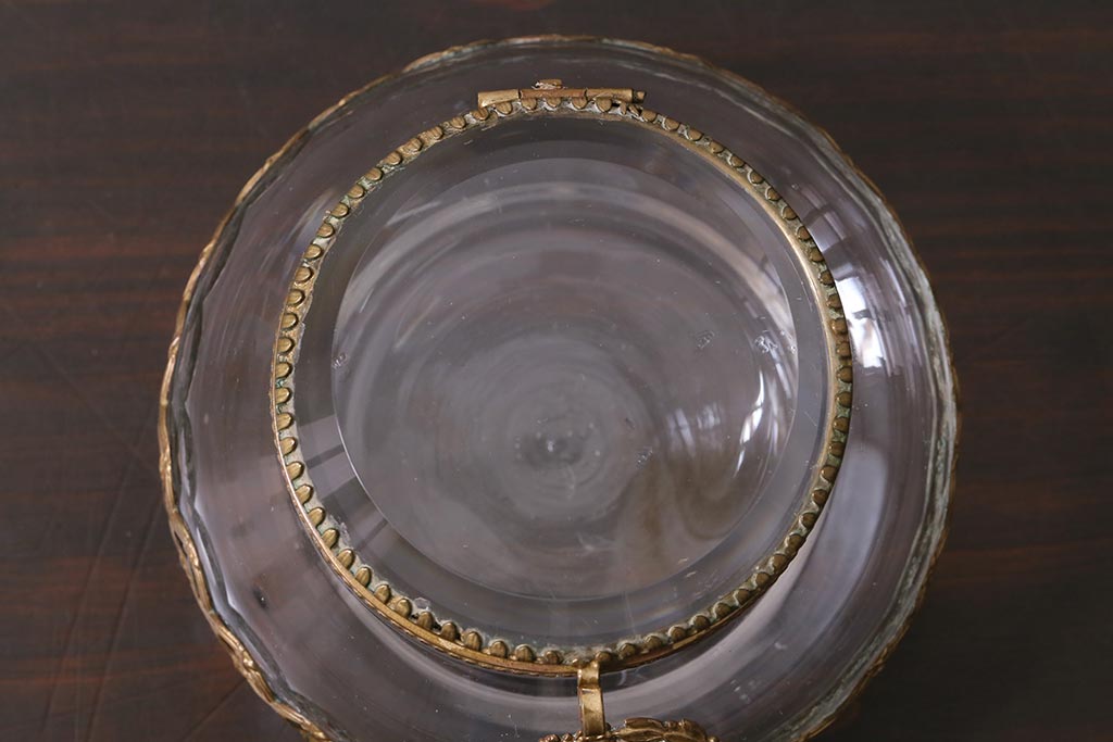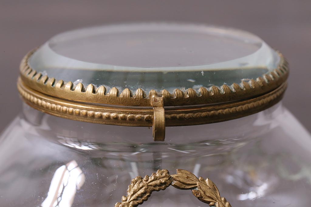 アンティーク雑貨 フランスアンティーク ルイ16世様式 真鍮の装飾がおしゃれなジュエリーケース(ガラスポット)(R-042355)