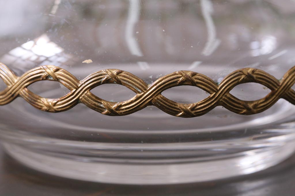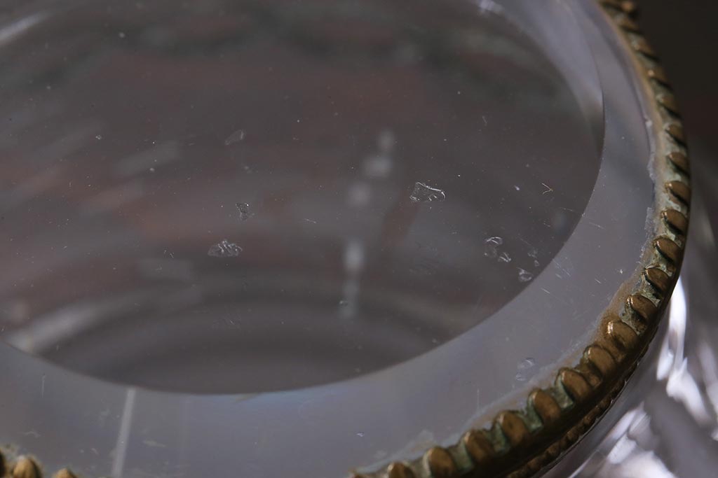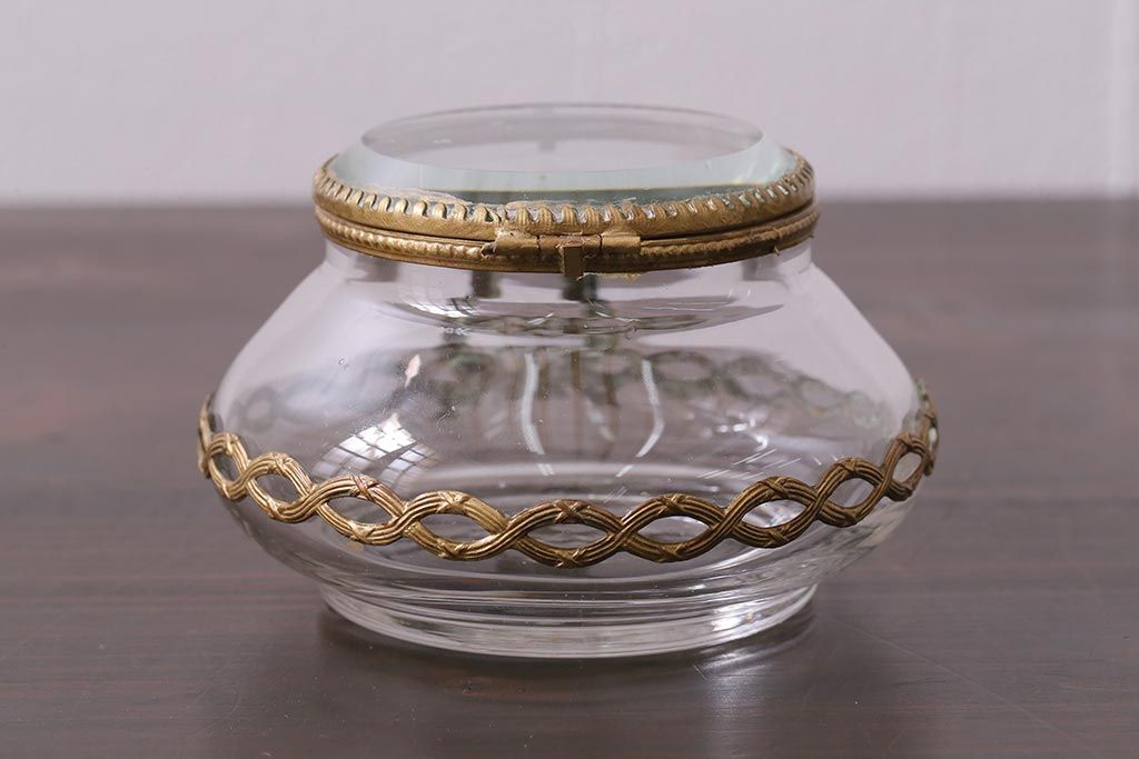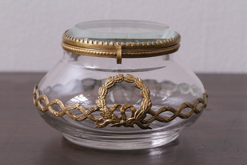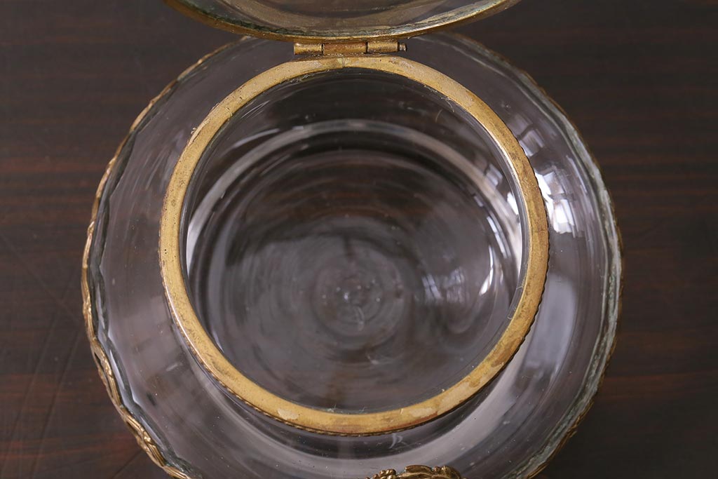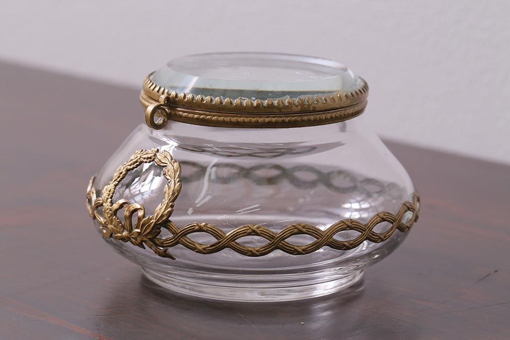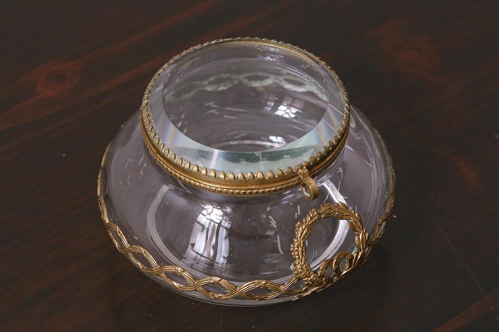 アンティーク雑貨 フランスアンティーク ルイ16世様式 真鍮の装飾がおしゃれなジュエリーケース(ガラスポット)(R-042355)