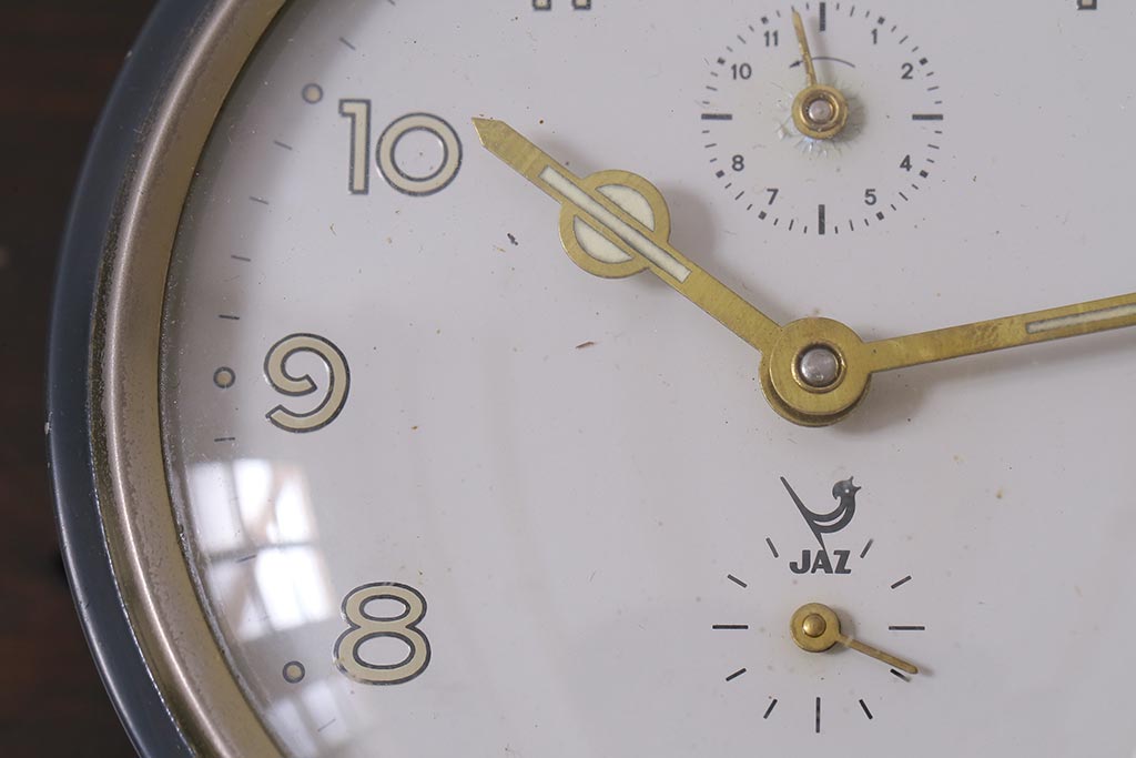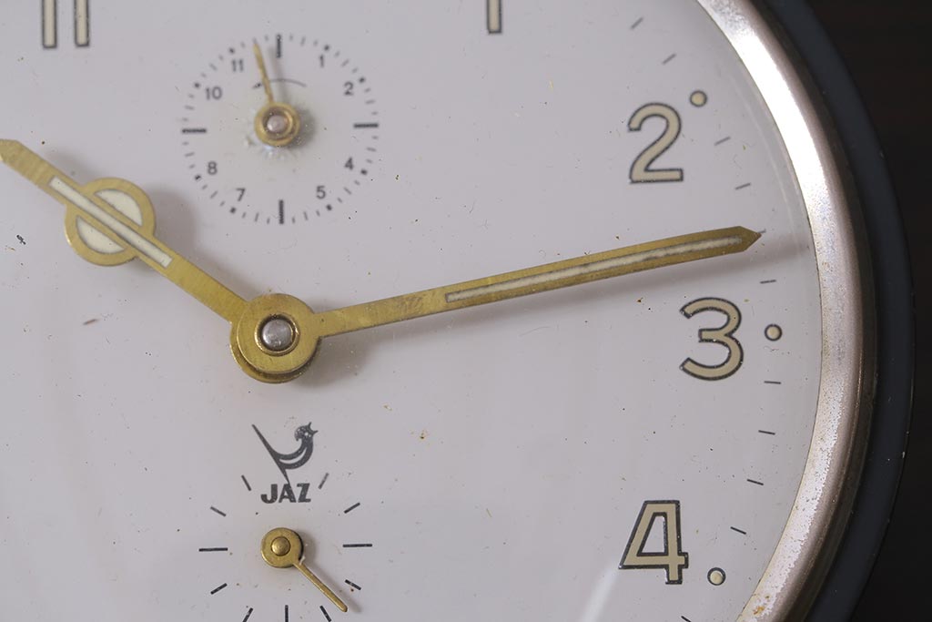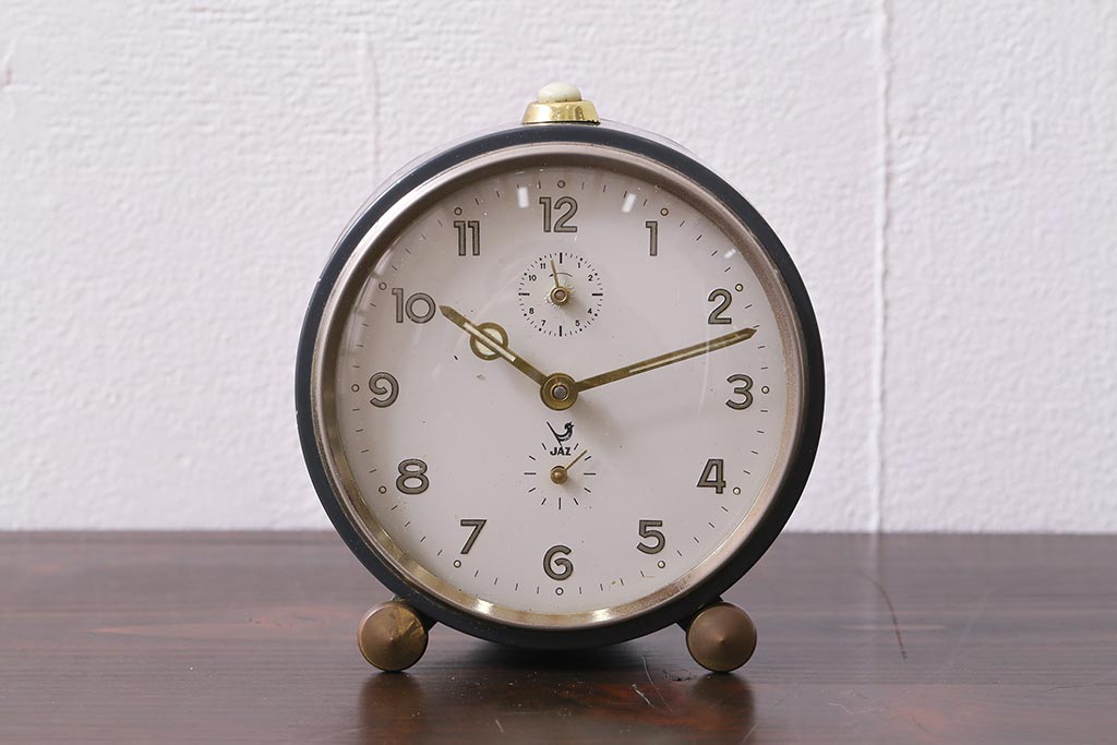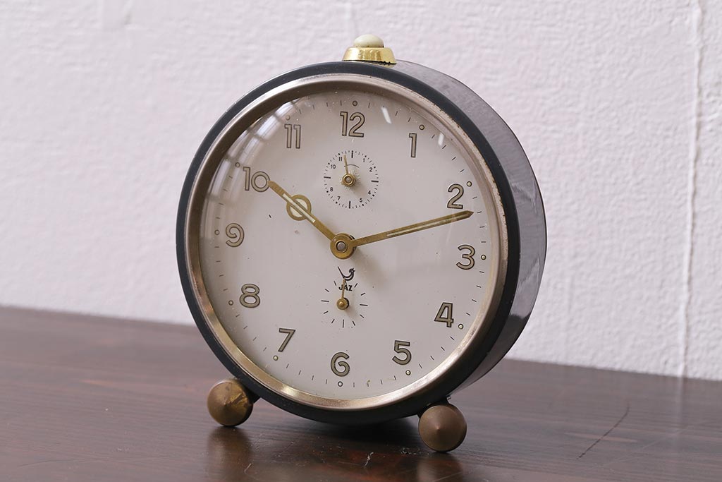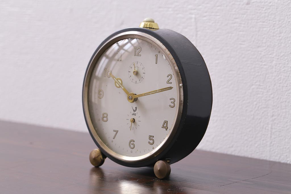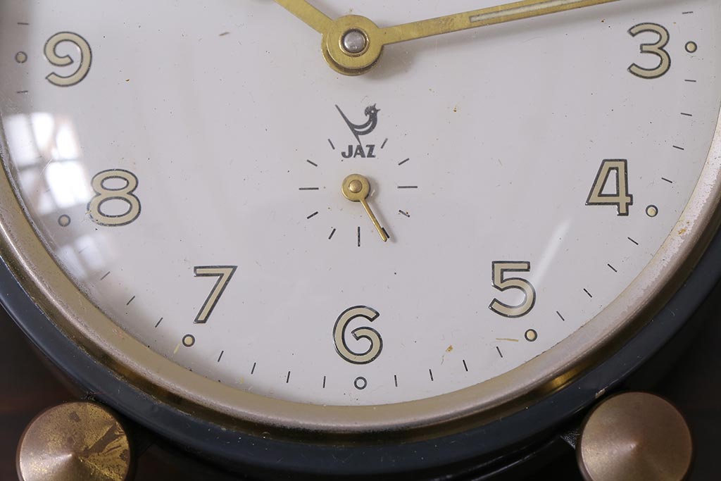 ジャンク品 ヴィンテージ雑貨 フランスビンテージ JAZ社 シックな覚まし時計(置時計、枕時計)(R-042352)