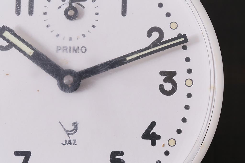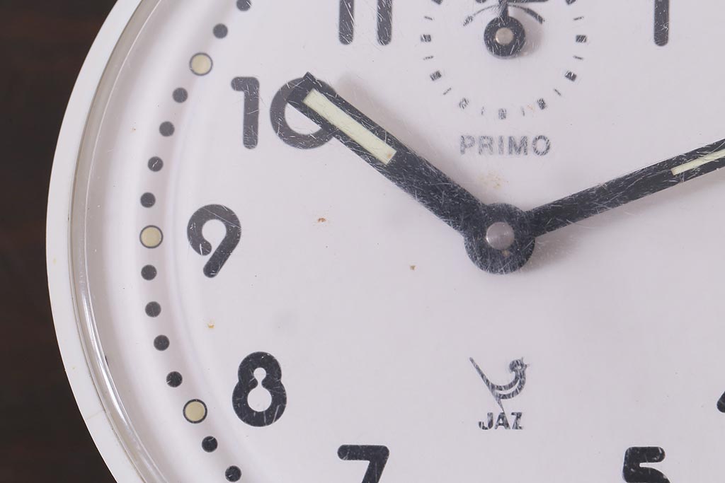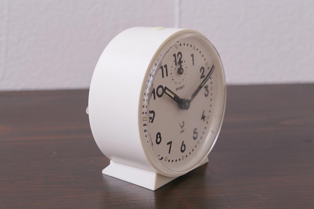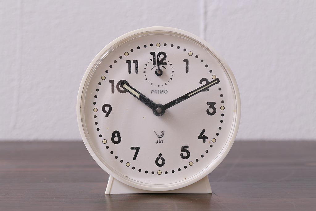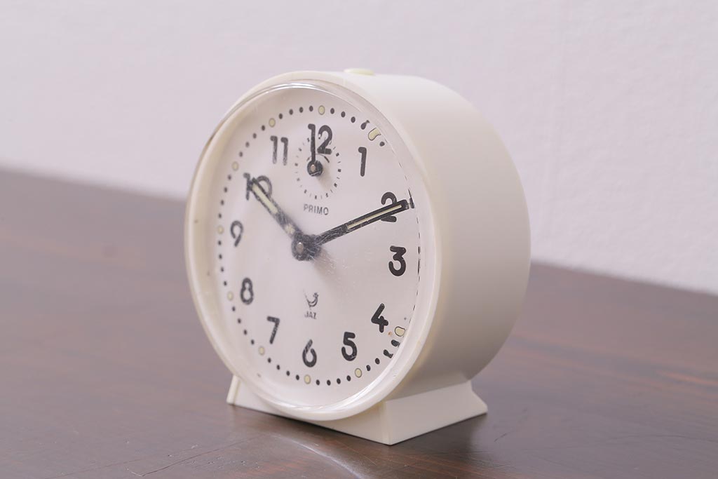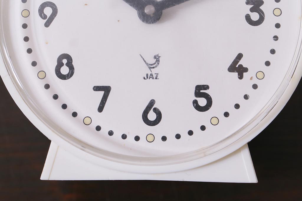 ヴィンテージ雑貨 フランスビンテージ 箱付き JAZ社 白いボディのレトロな目覚まし時計(置時計、枕時計)(R-042353)