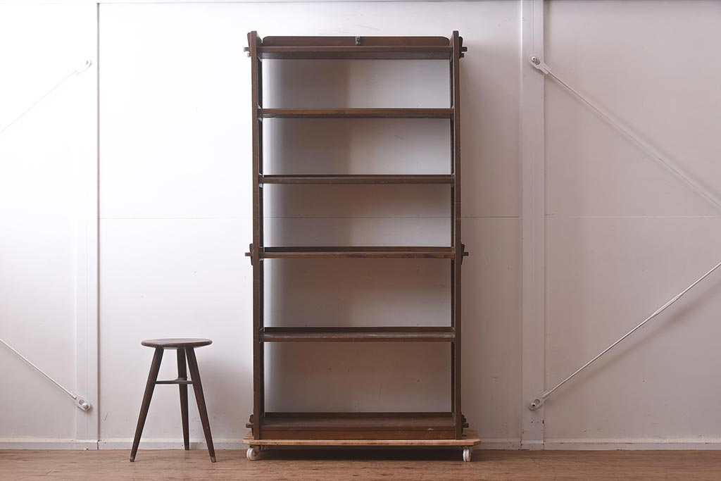 レトロ家具 シンプルな作りの本棚(オープンラック、シェルフ、飾り棚)(R-042458)