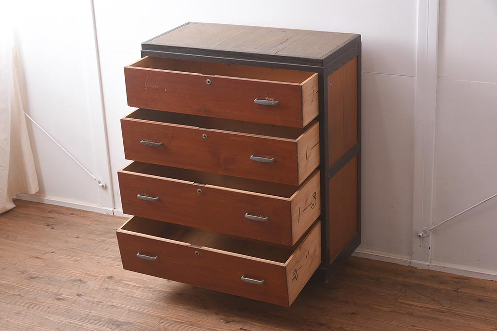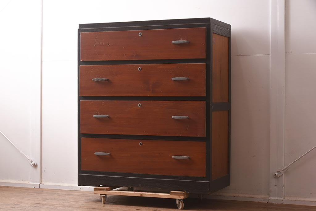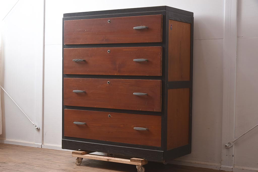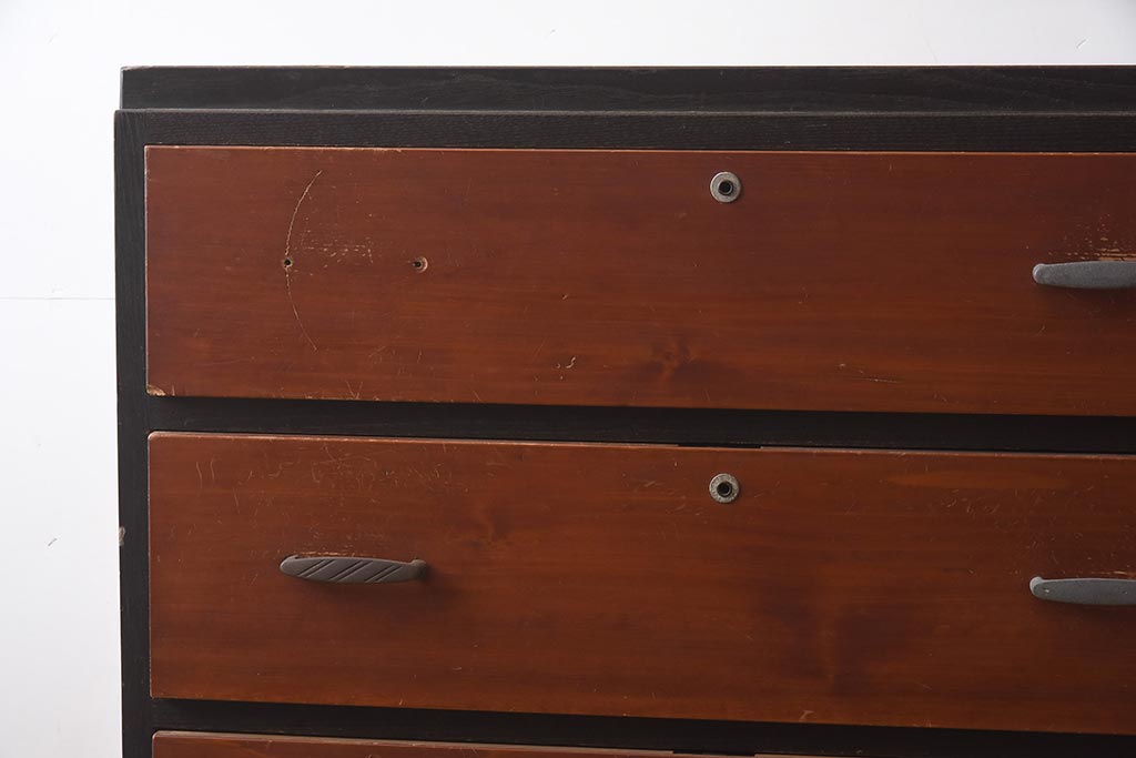 和箪笥> 衣装箪笥 > レトロ家具 すっきりとしたツートーンのチェスト(タンス、箪笥、引き出し)(R-042460)