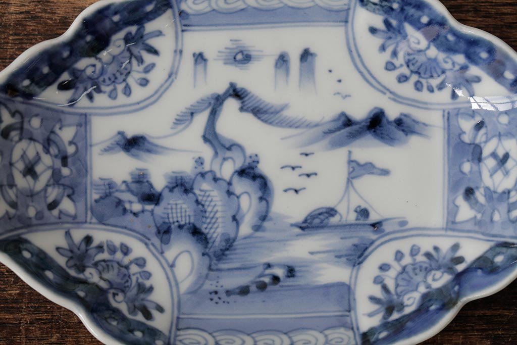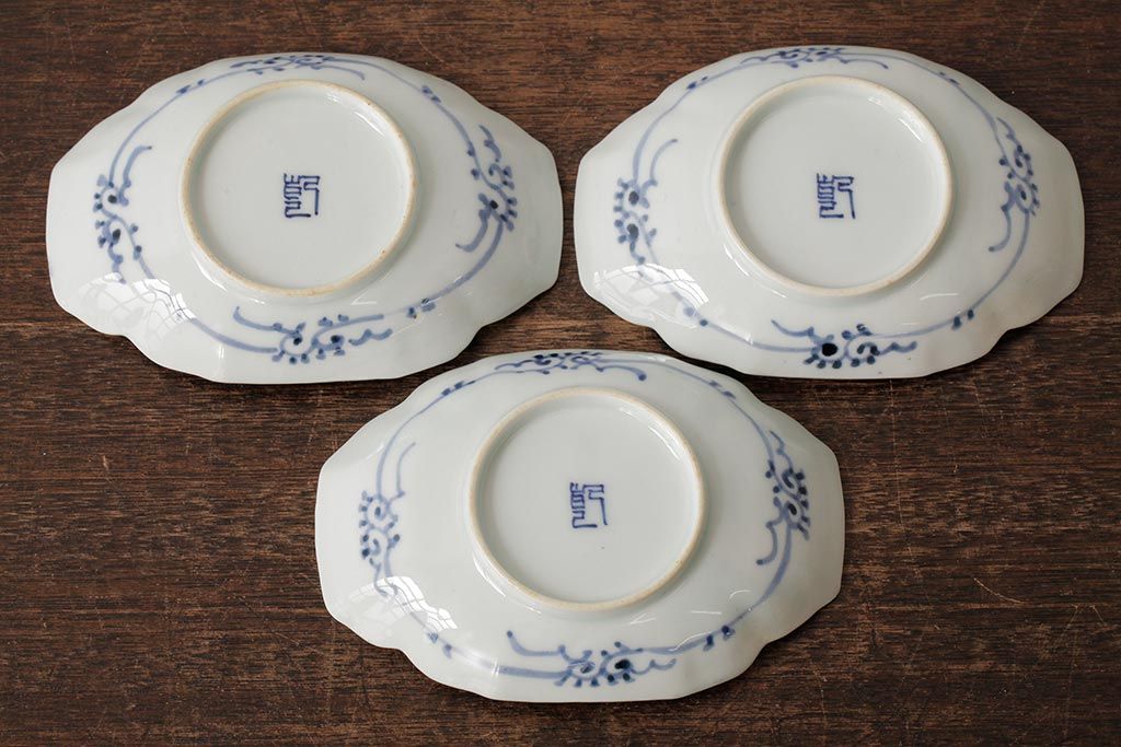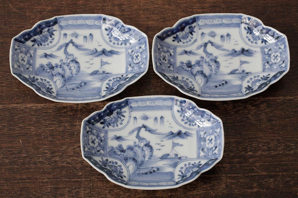 ラフジュ工房> 骨董・美術品 > アンティーク雑貨 古民具・骨董 江戸期 古伊万里 山水図染付変形皿3枚セット(和食器)(R-042469)